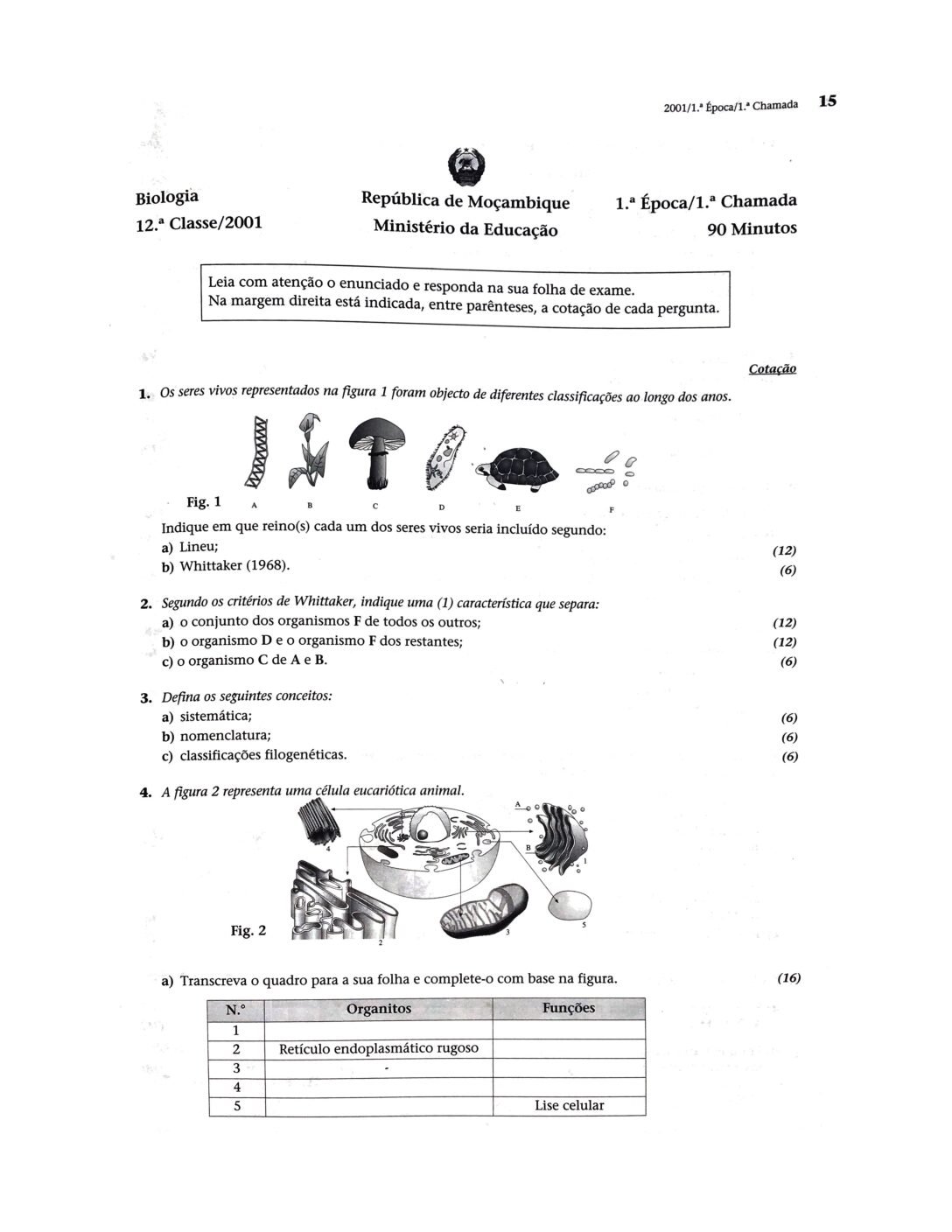 Biologia 2001 – 1ª Chamada da 12ª classe (Enunciado do Exame em PDF) - Baixar este documento, de forma simples, segura e grátis,...