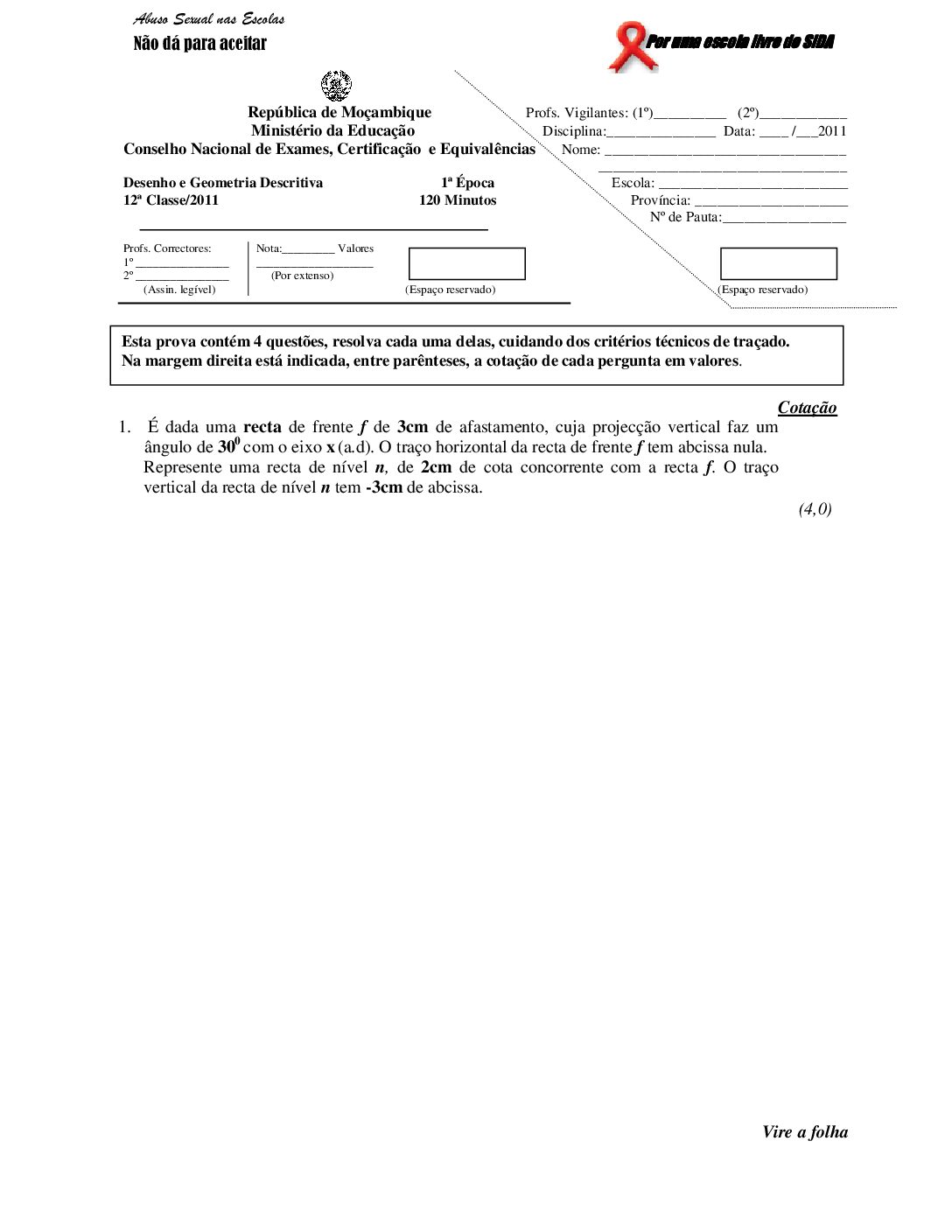 Desenho 2011 – 1ª Chamada da 12ª classe (Enunciado do Exame em PDF) - Baixar este documento, de forma simples, segura e grátis,...