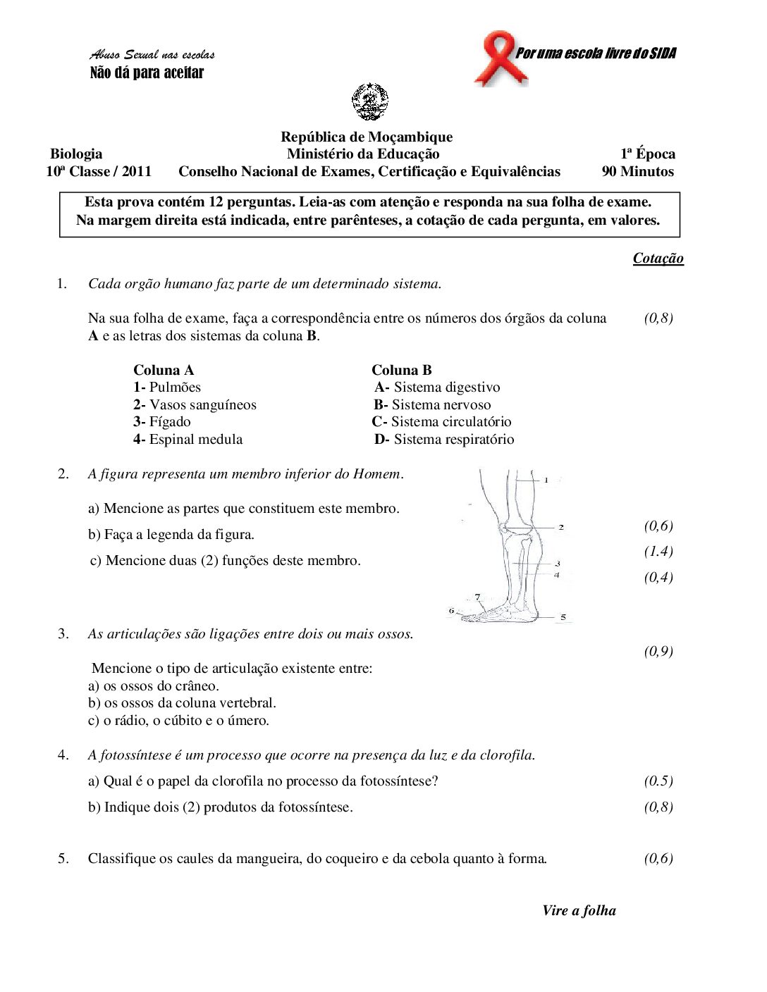 Biologia 2011 – 2ª Chamada da 10ª classe (Enunciado do Exame em PDF) - Baixar este documento, de forma simples, segura e grátis,...