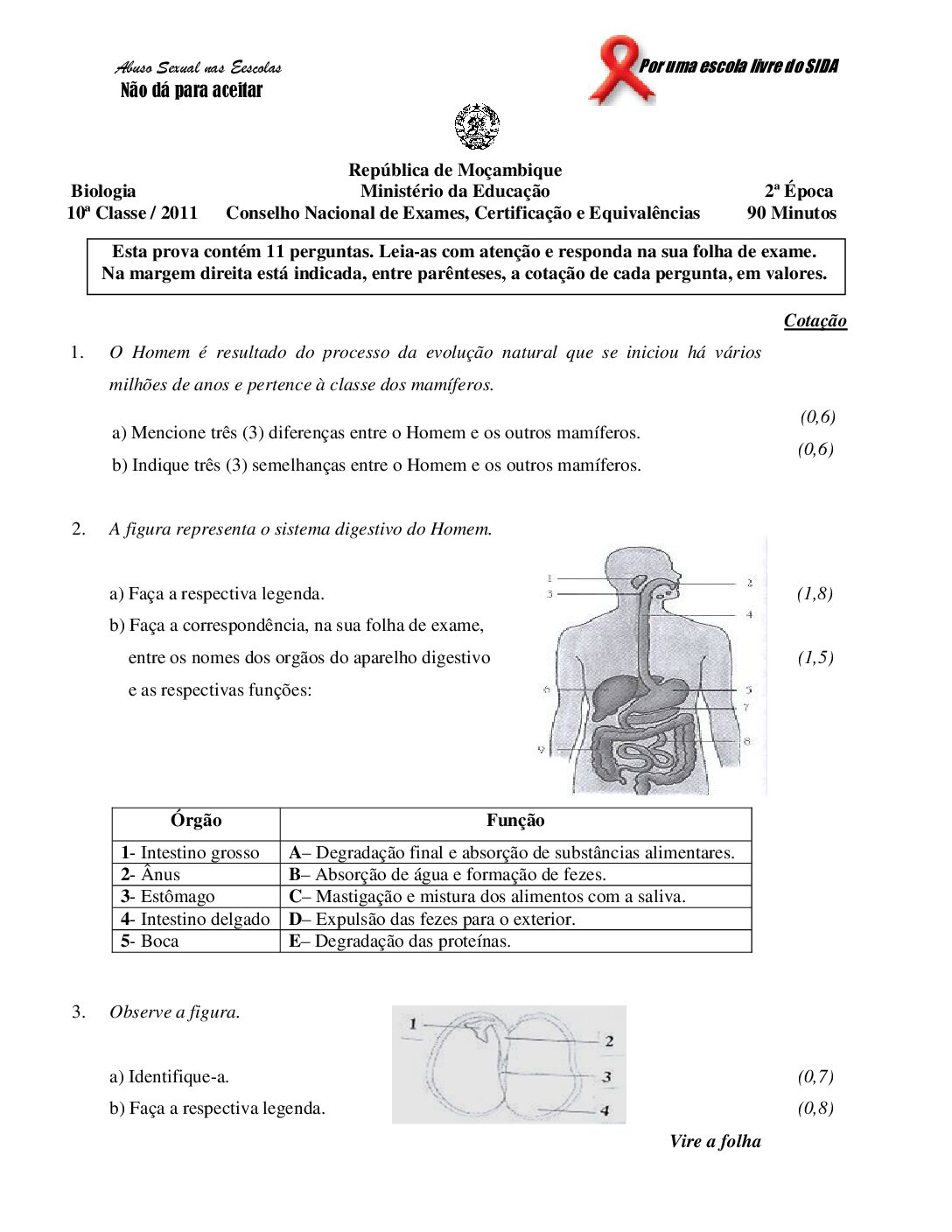 Biologia 2011 – 2ª Chamada da 10ª classe (Enunciado do Exame em PDF)