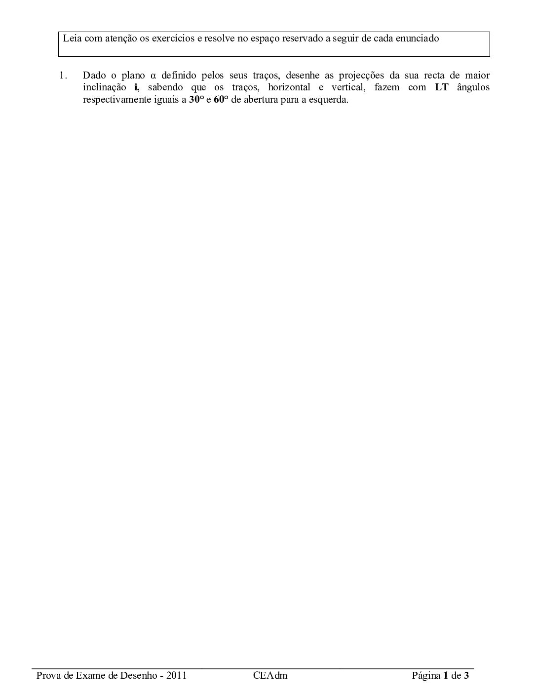Desenho I – 2011 da UEM (Enunciado do Exame em PDF) - Baixar este documento em PDF para uso no seu ambiente académico...