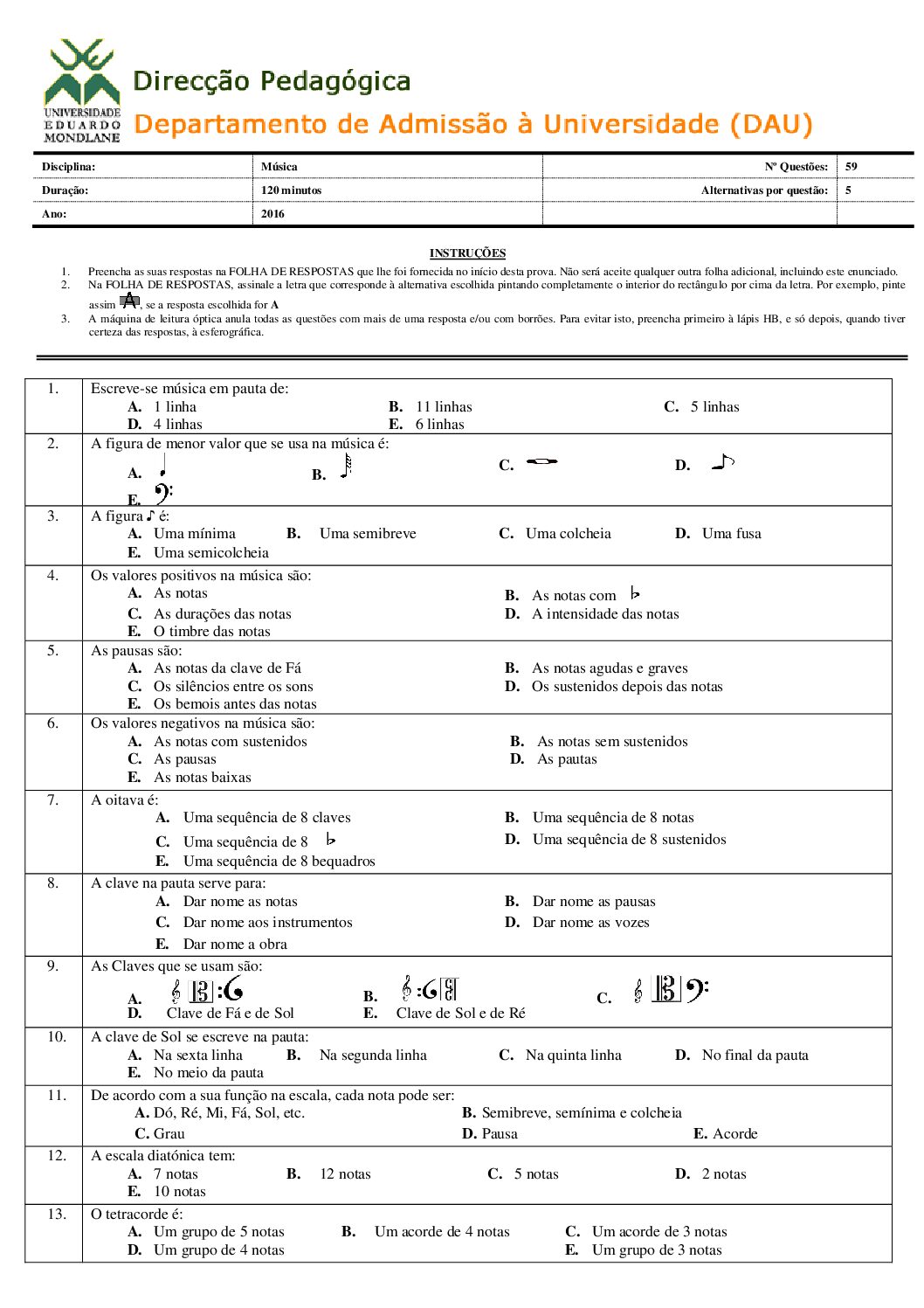 Música – 2013 da UEM (Enunciado do Exame Em PDF) - Baixar este documento em PDF para uso no seu ambiente académico...