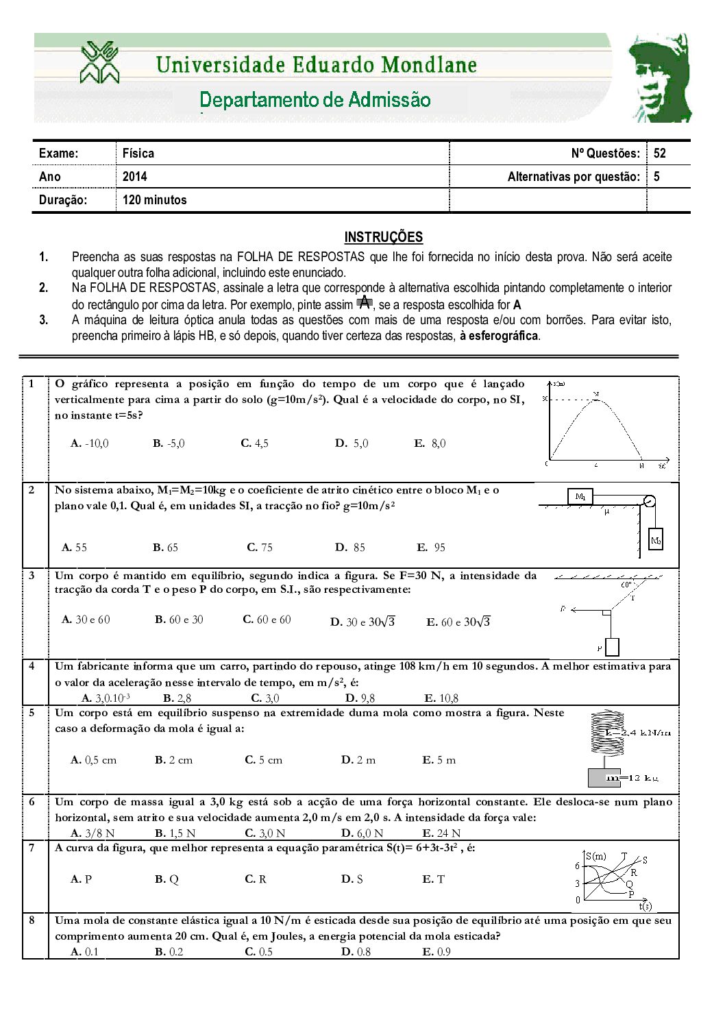 Física – 2014 da UEM (Enunciado do Exame Em PDF)