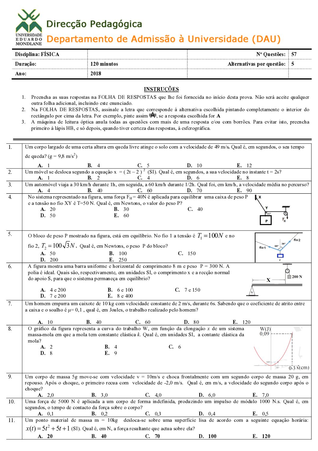 Física – 2018 da UEM (Enunciado do Exame em PDF)