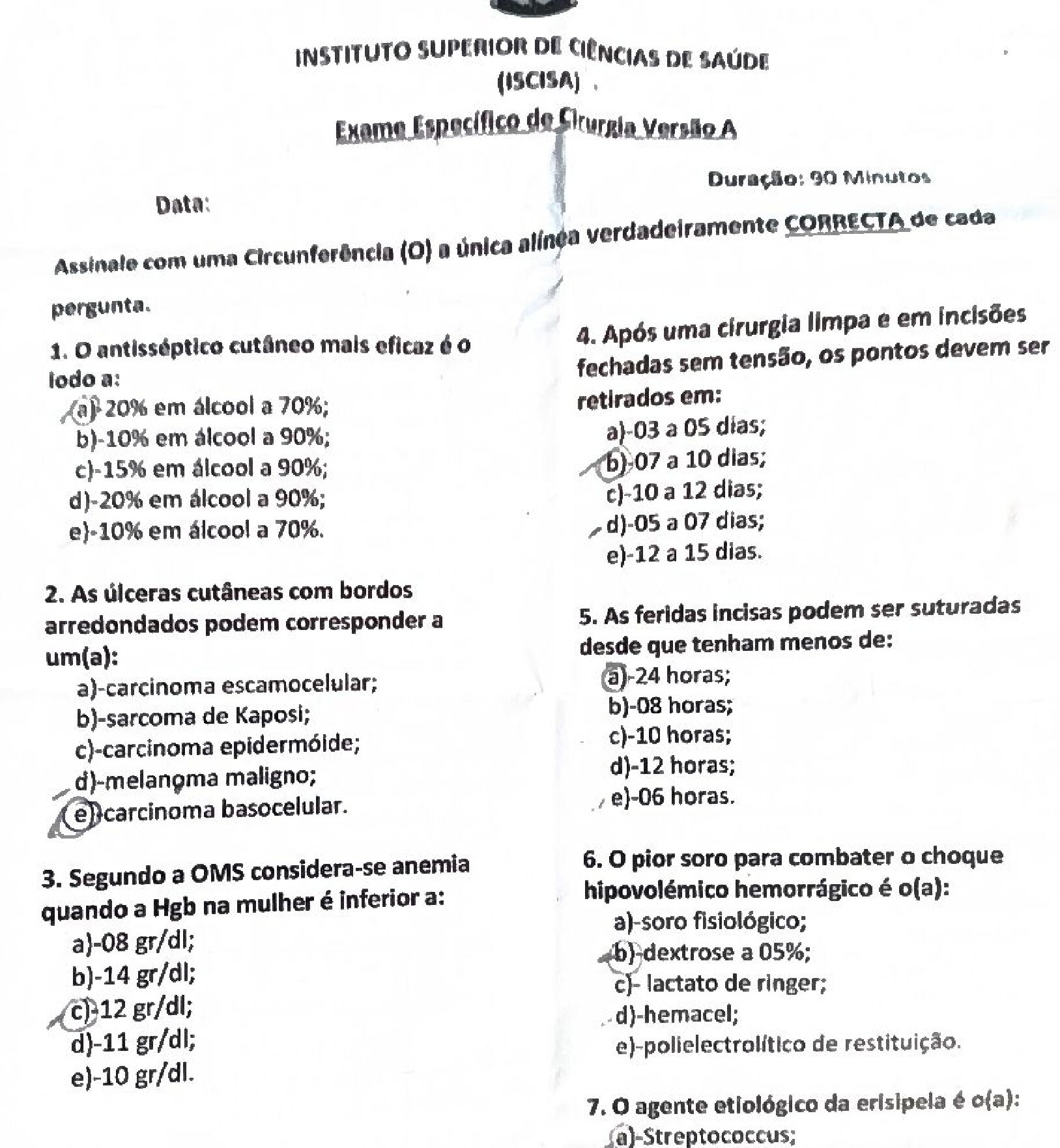Cirurgia – 2025 do ISCISA (Enunciado do Exame de Admissão – Saúde – em PDF) - Baixar este documento (Exame anterior - Moçambique)...
