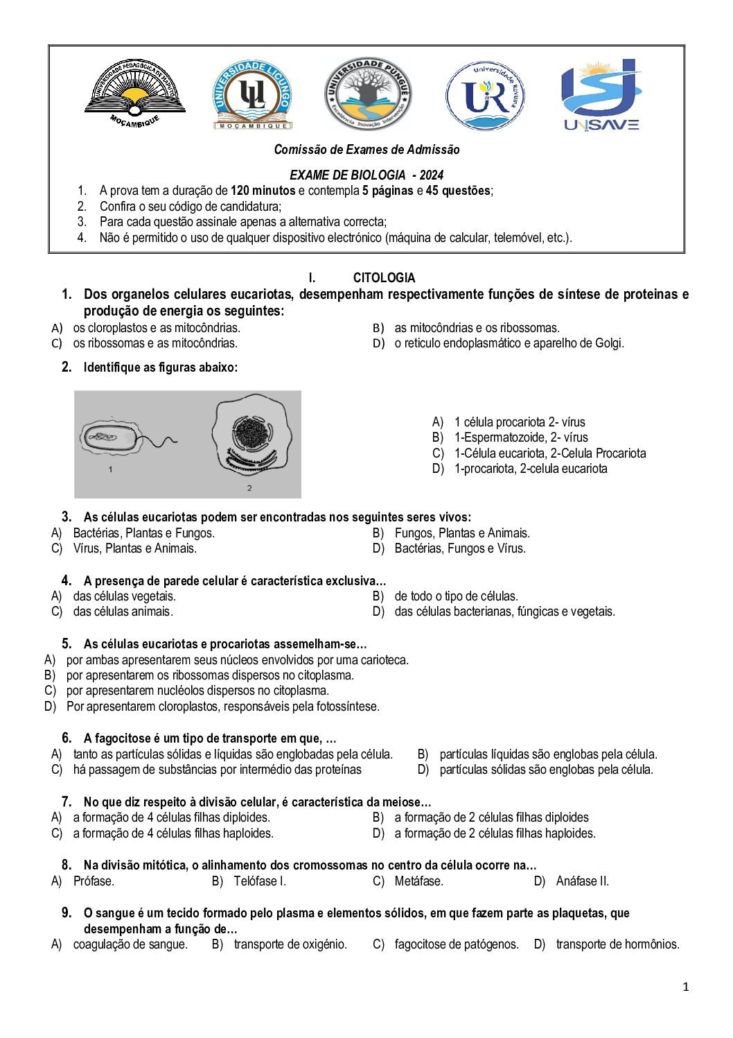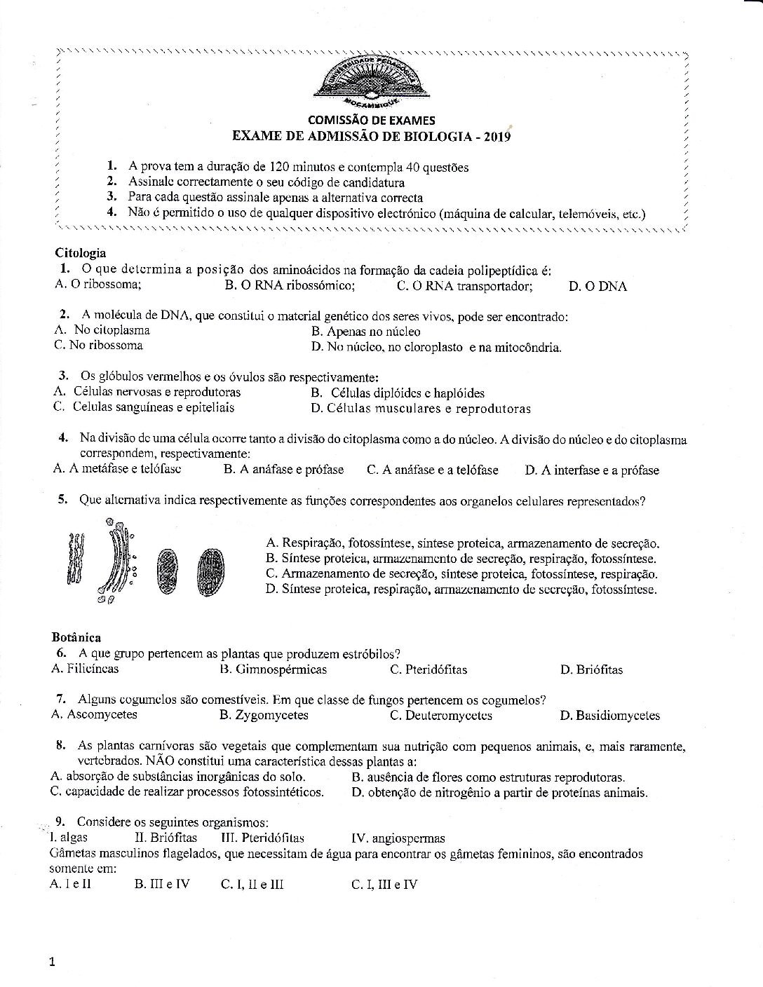 Biologia – 2016 da UP (Enunciado do Exame de Admissão em PDF)