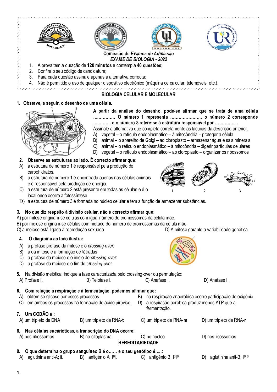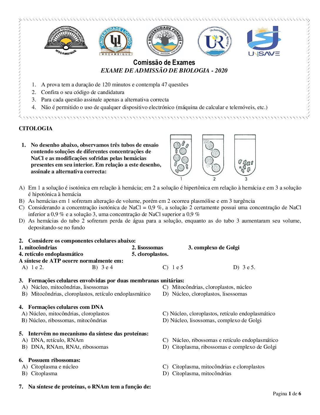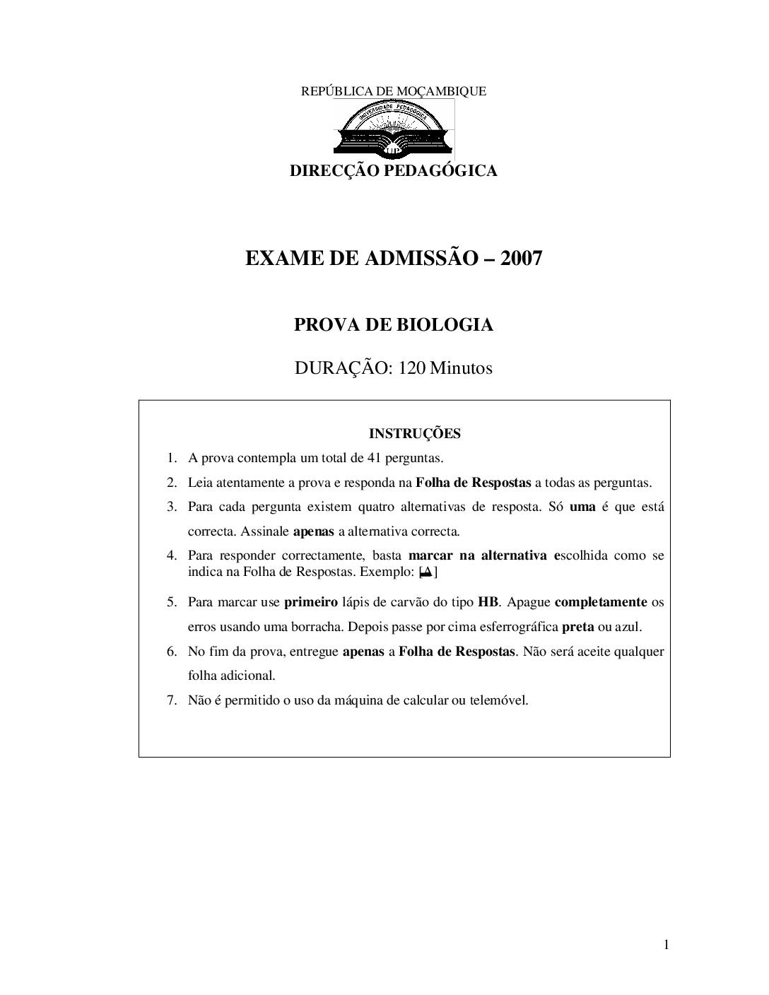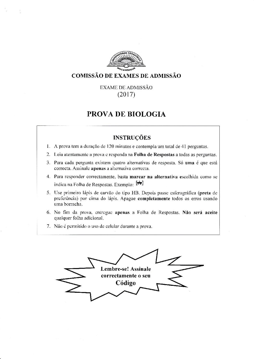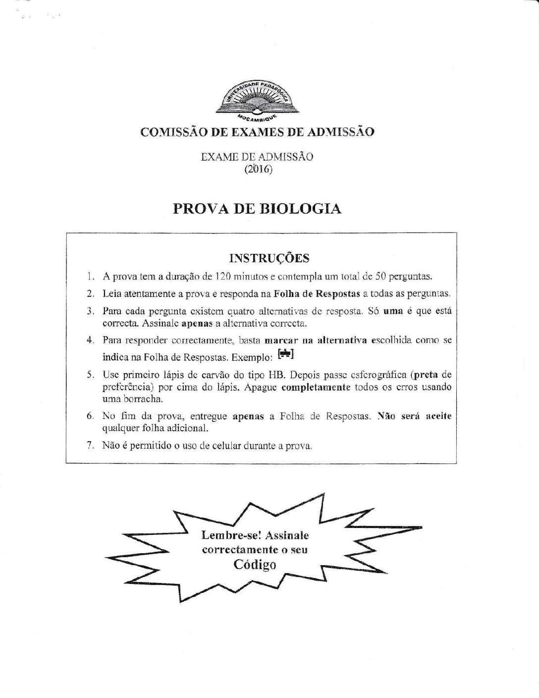 Biologia – 2016 da UP (Enunciado do Exame de Admissão em PDF) - Baixar este documento, de forma simples, segura e grátis, em...