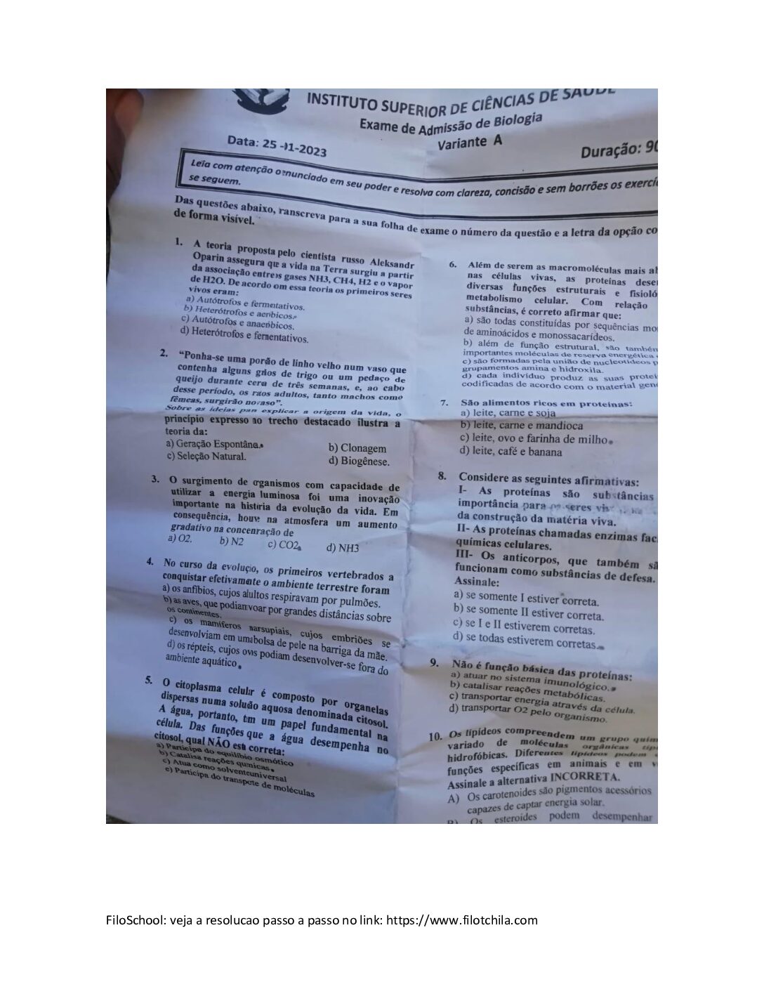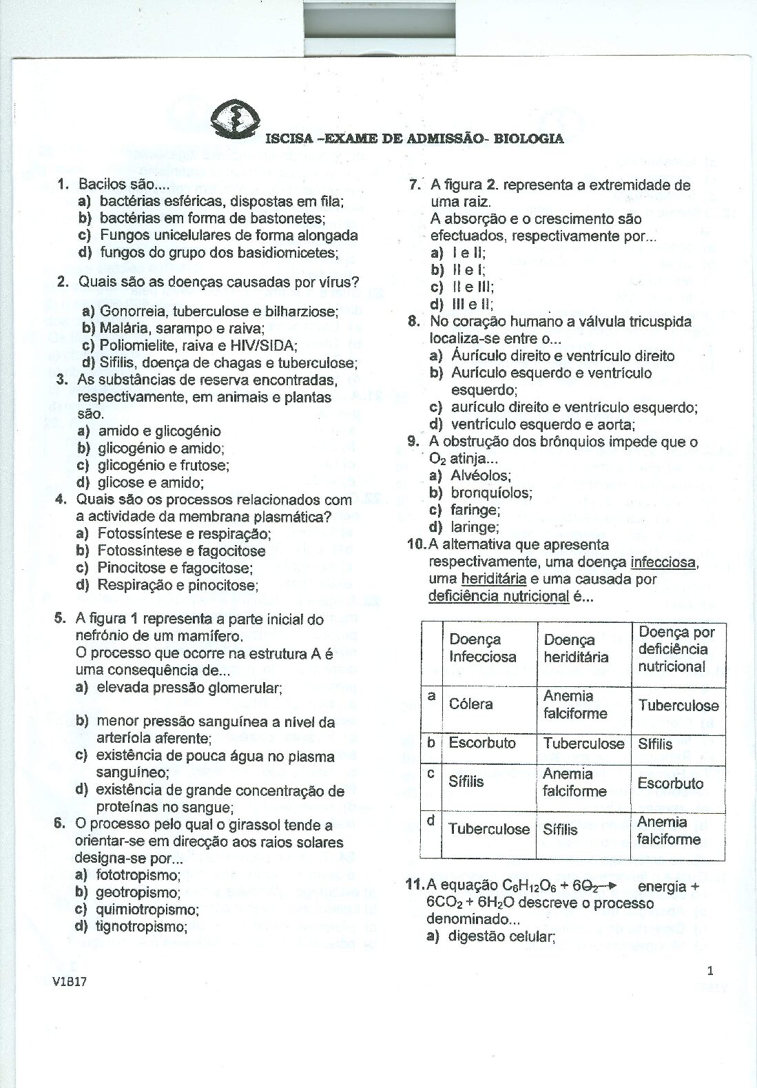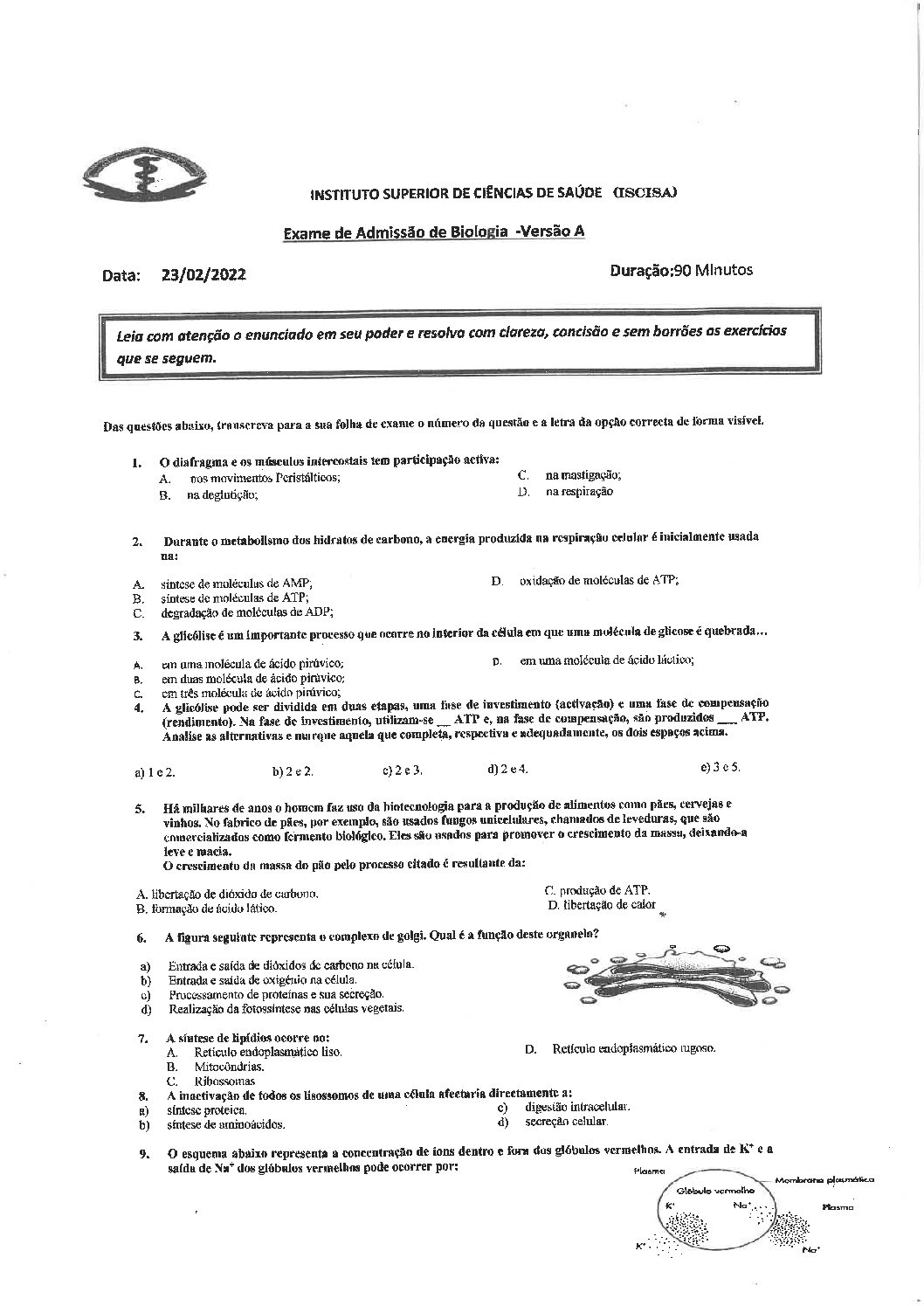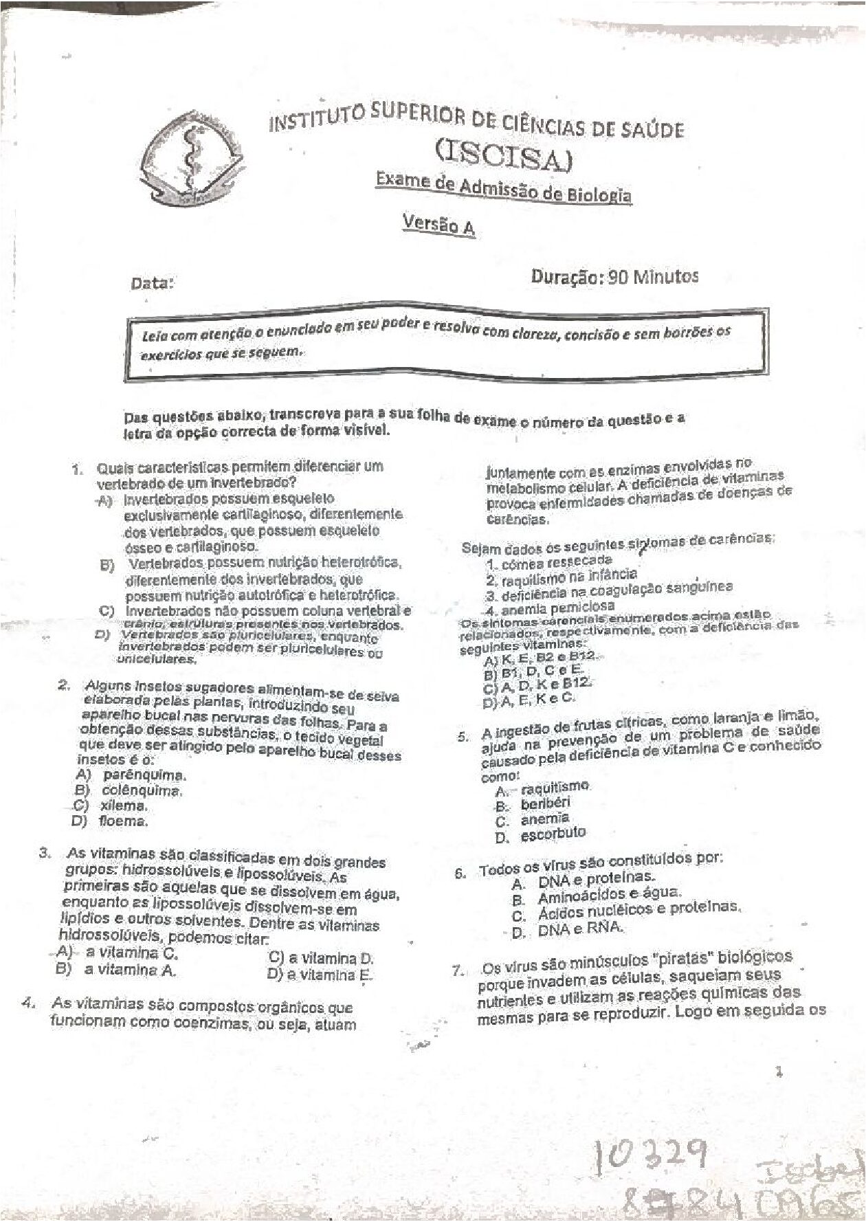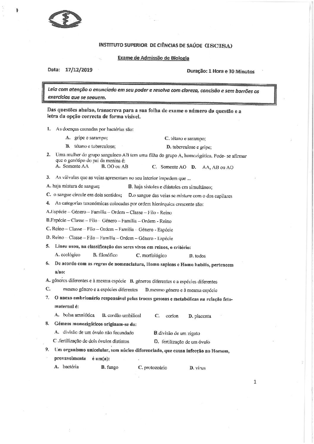 Biologia – 2021 do ISCISA (Enunciado do Exame de Admissão – Saúde – em PDF) - Baixar este documento (Exame anterior - Moçambique)...