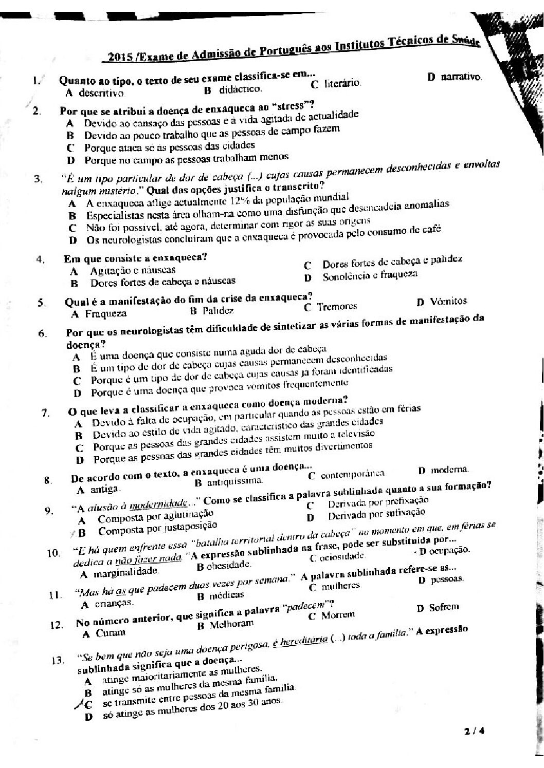 Português 2015 ICS (Enunciado do exame ) (Livro em PDF)