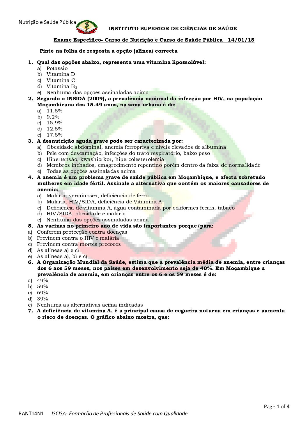 Nutrição – 2015 do ISCISA (Enunciado do Exame de Admissão – Saúde – em PDF) - Baixar este documento (Exame anterior - Moçambique)...