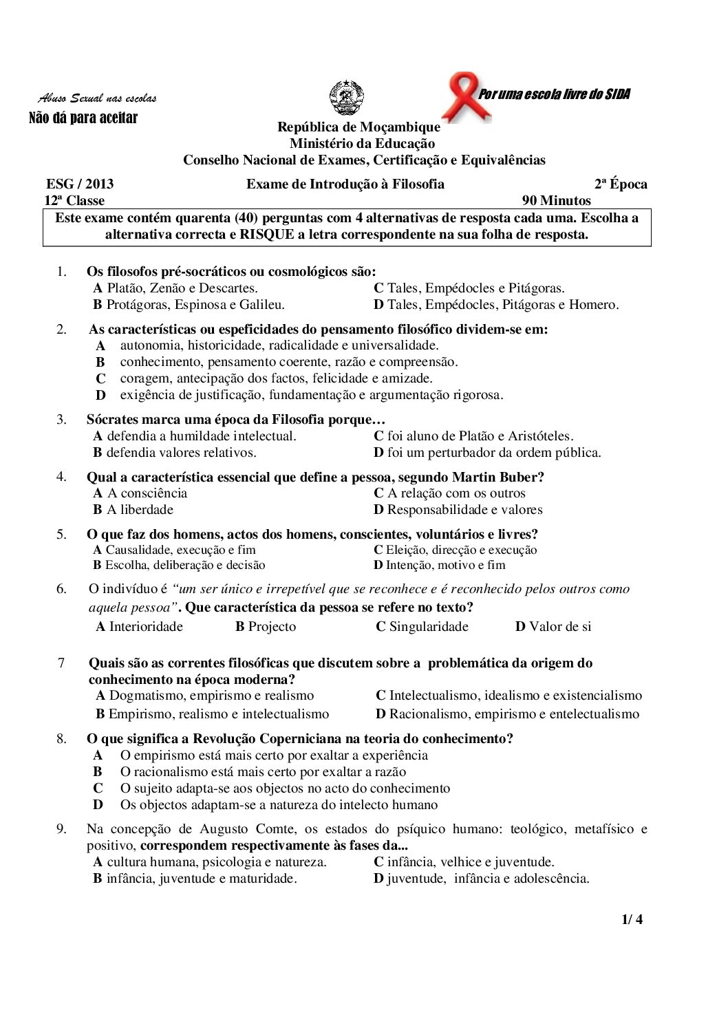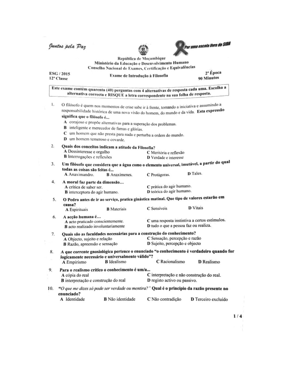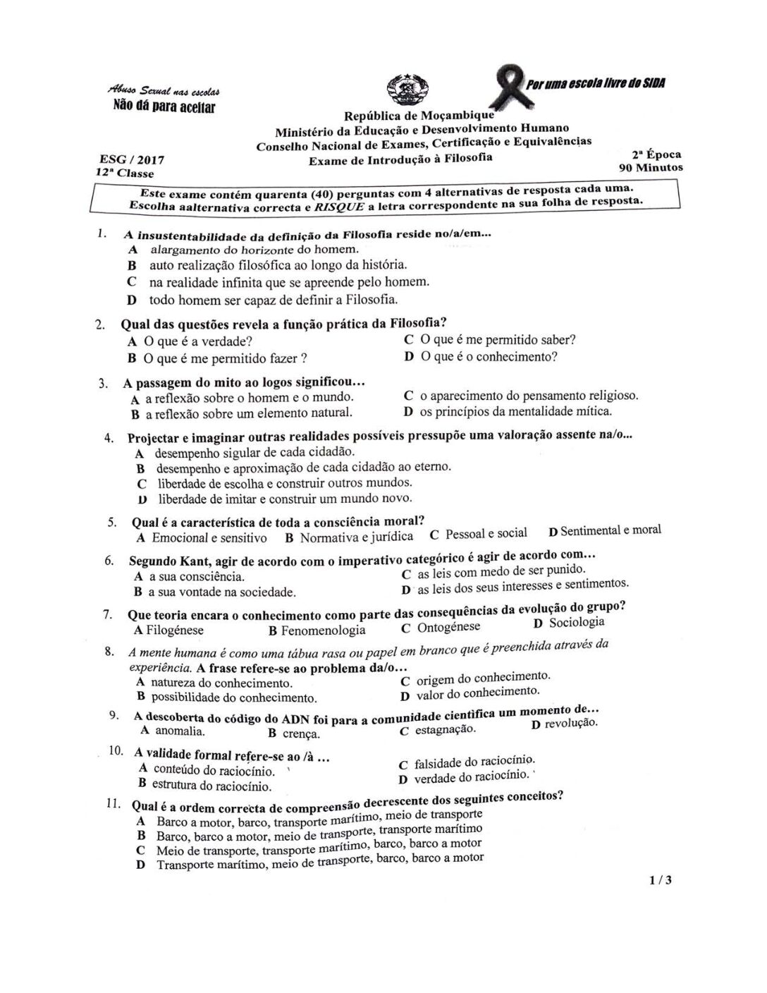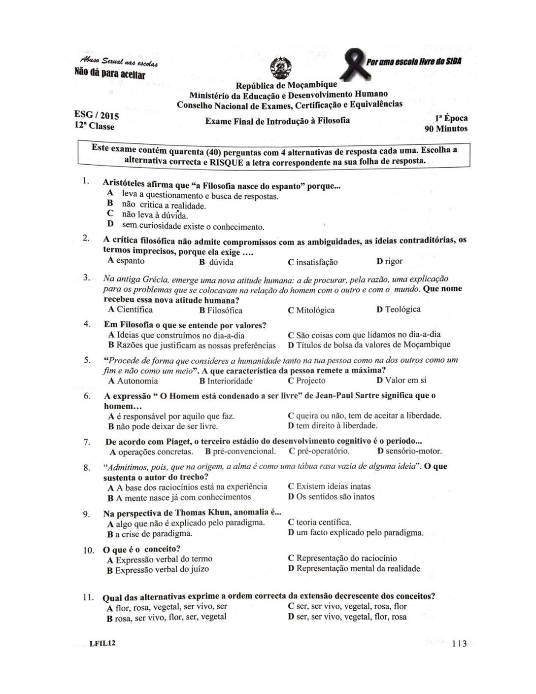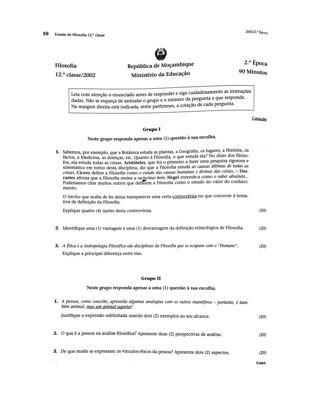 Filosofia 2002 – 2ª Chamada da 12ª classe (Enunciado do Exame em PDF)
