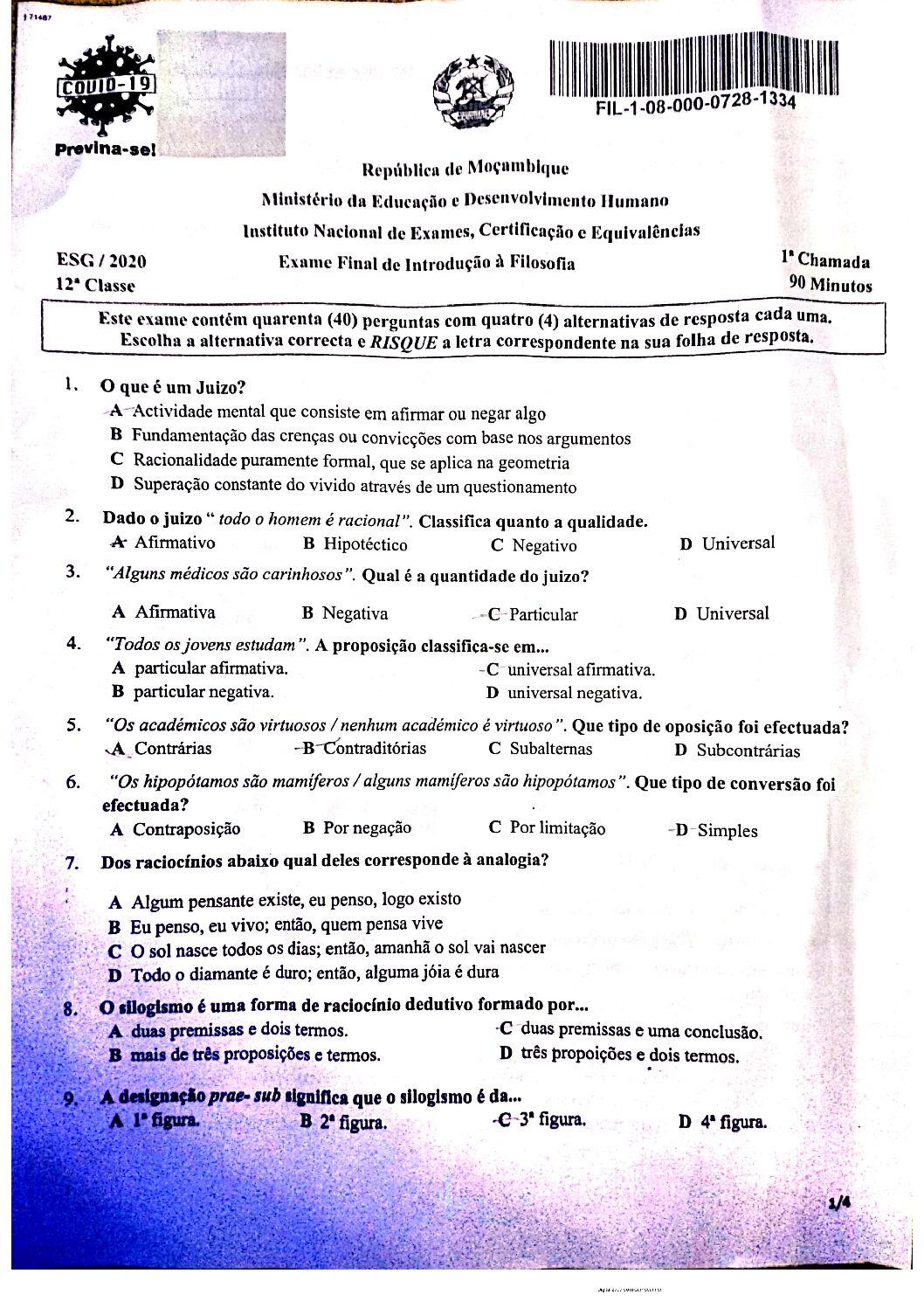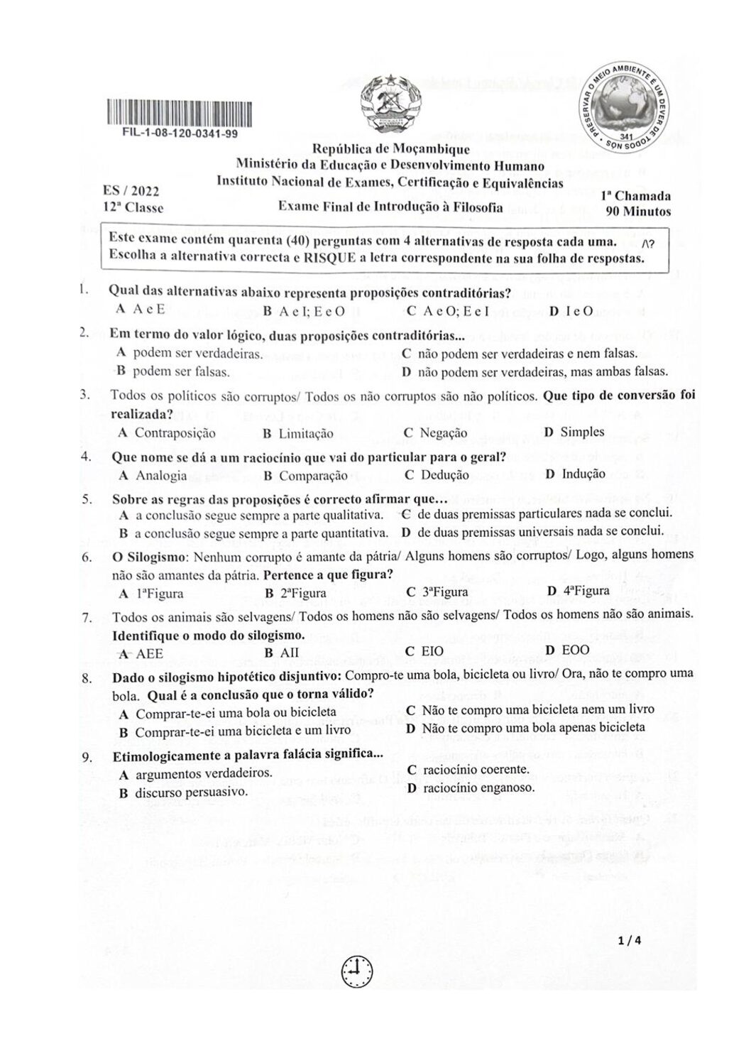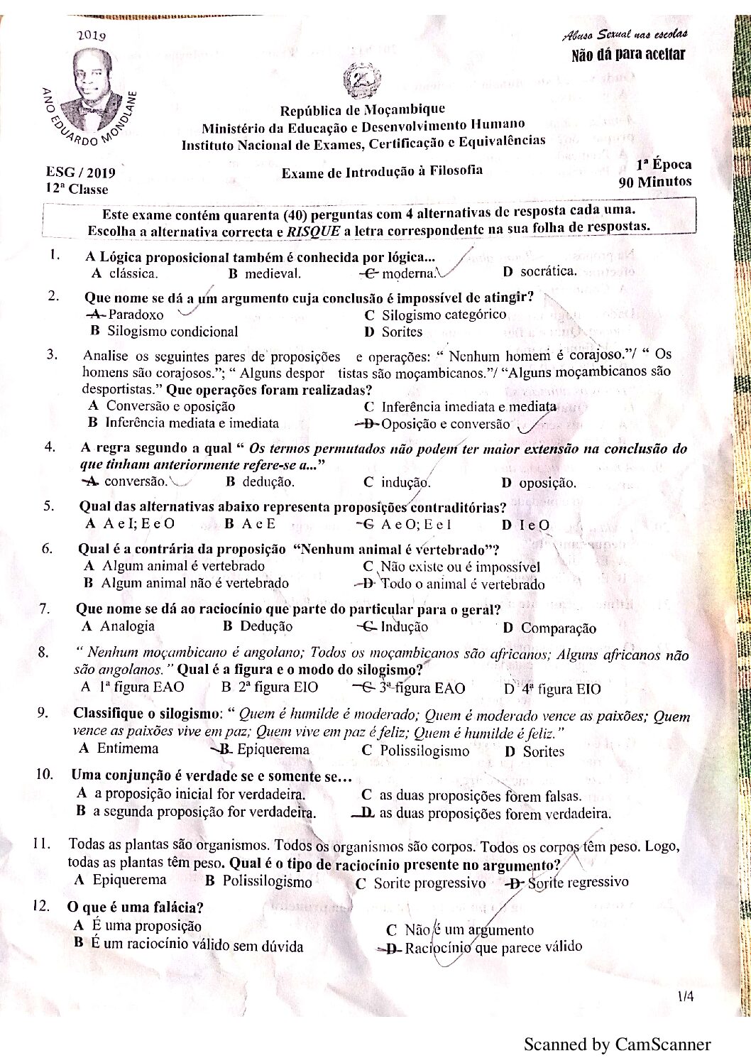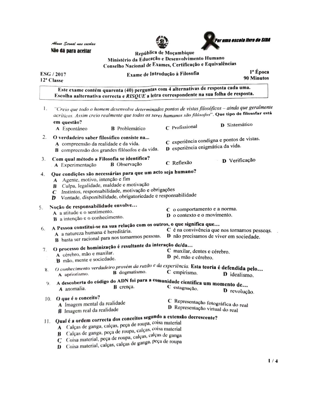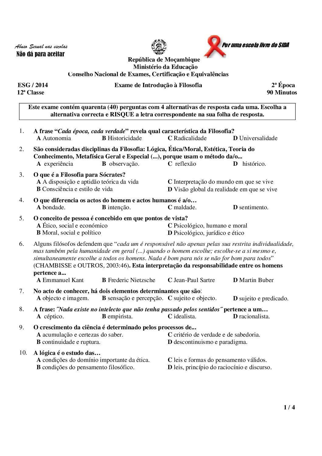 Filosofia 2002 – 2ª Chamada da 12ª classe (Enunciado do Exame em PDF)