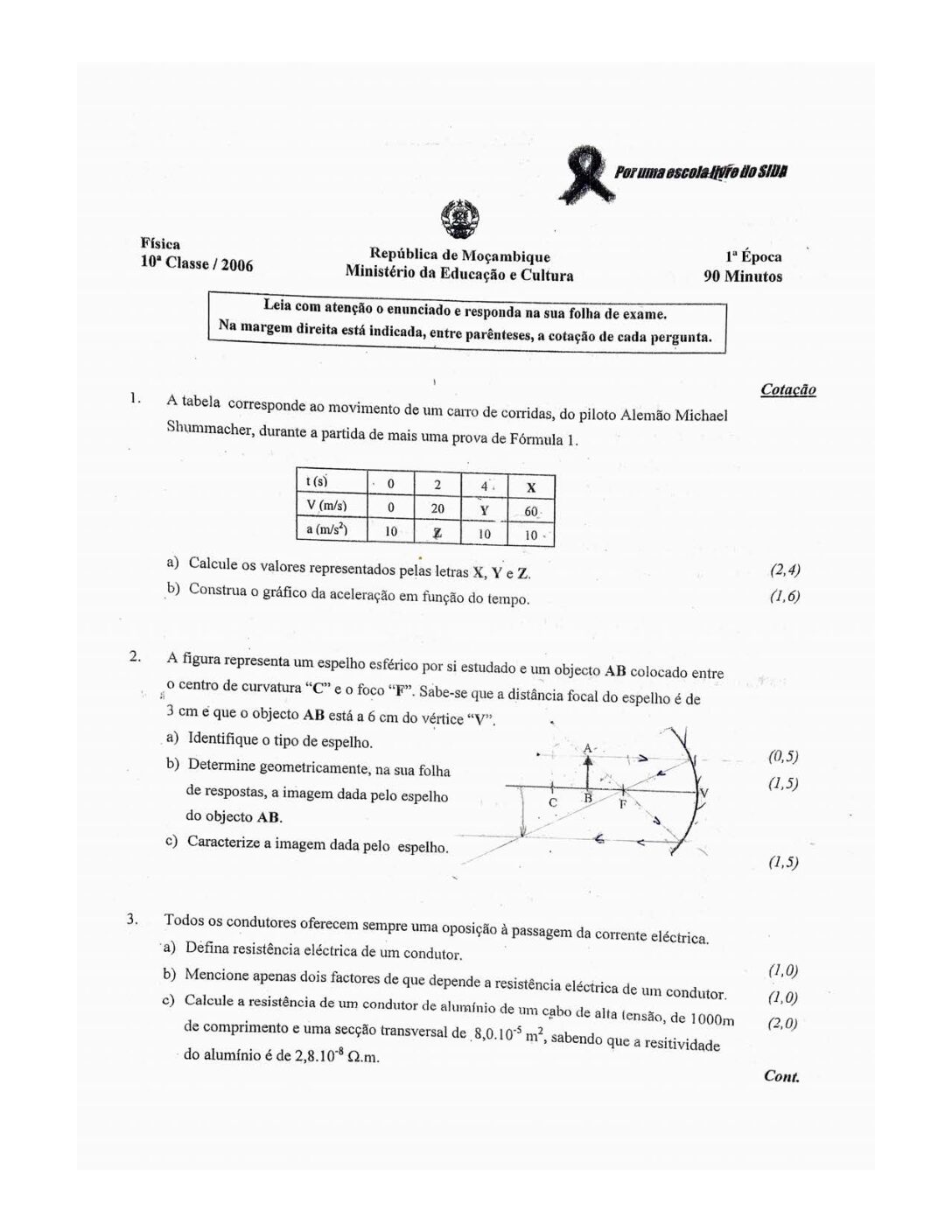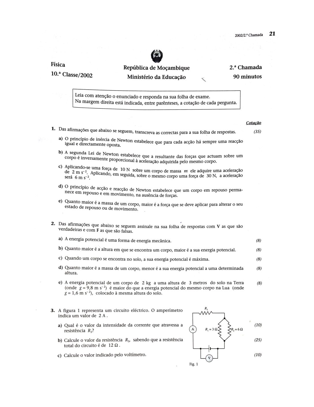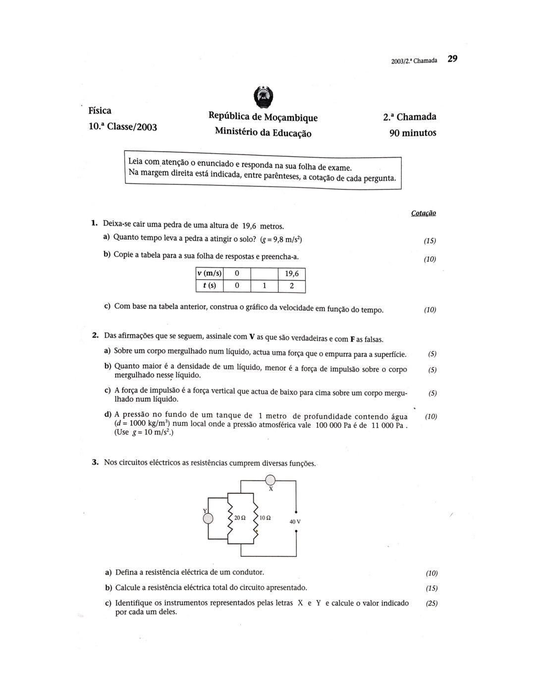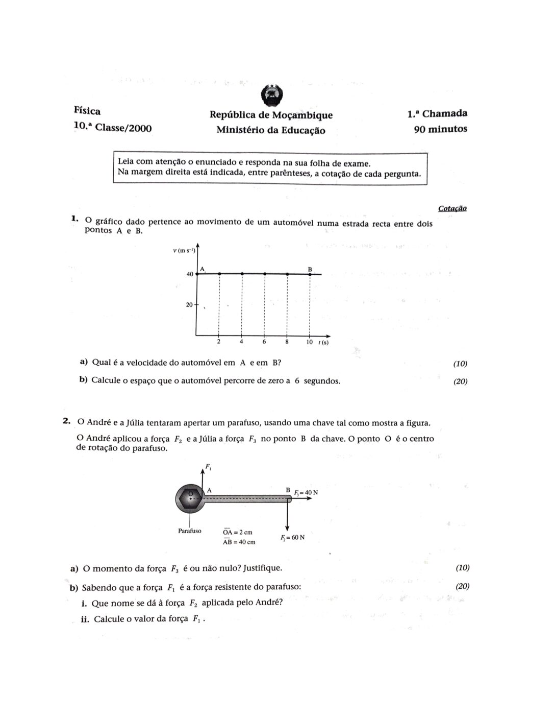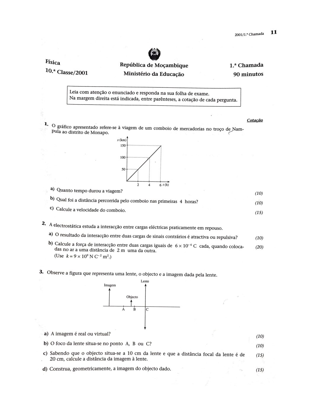 Física 2011 – 2ª Chamada da 10ª classe (Enunciado do Exame em PDF)