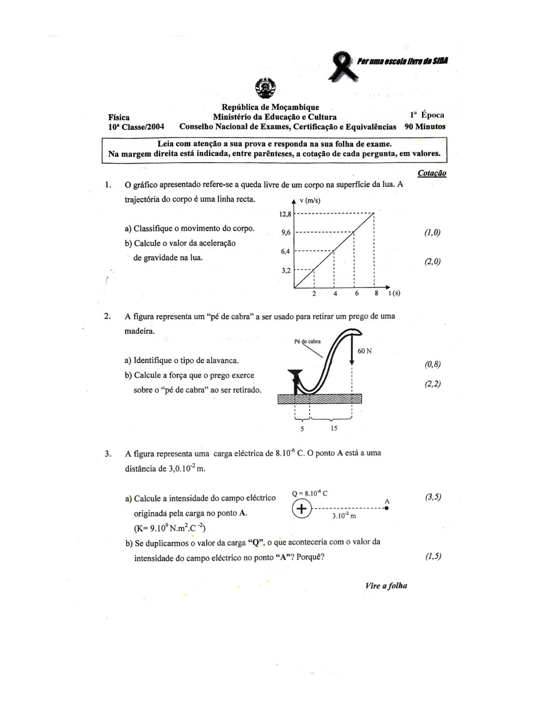 Física 2011 – 2ª Chamada da 10ª classe (Enunciado do Exame em PDF) - Baixar este documento, de forma simples, segura e grátis,...
