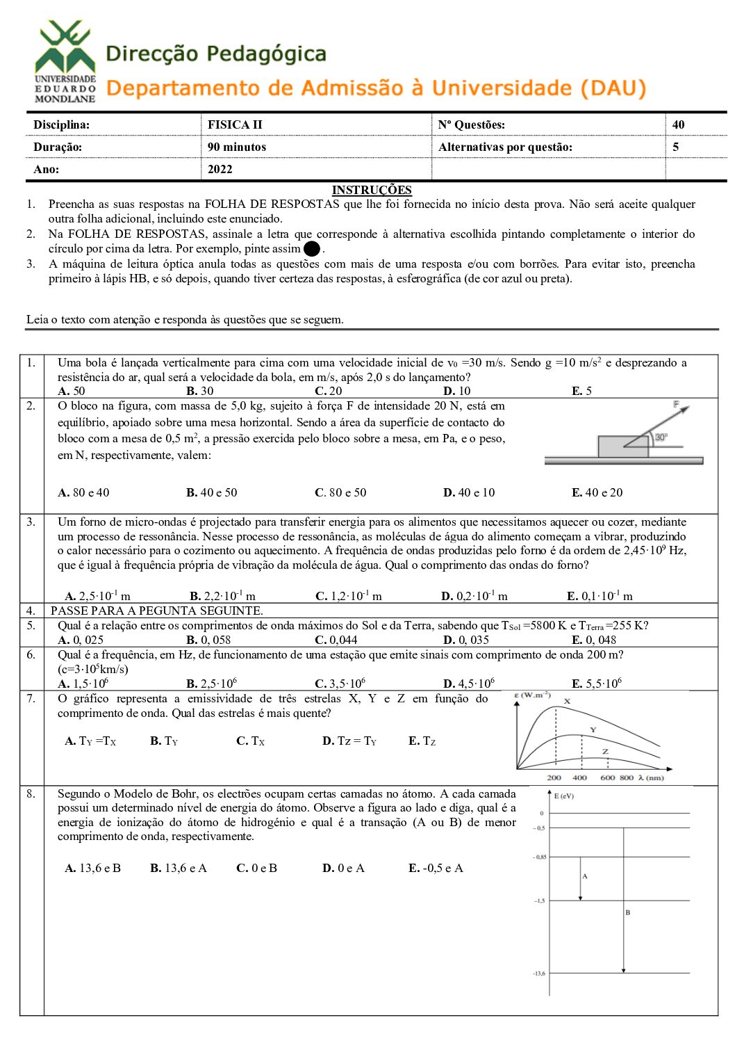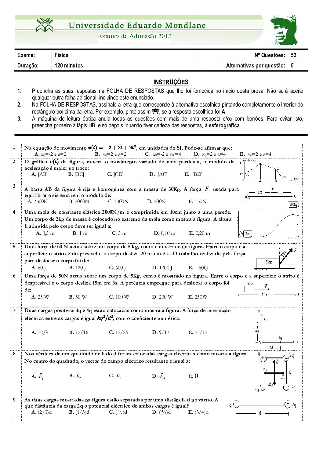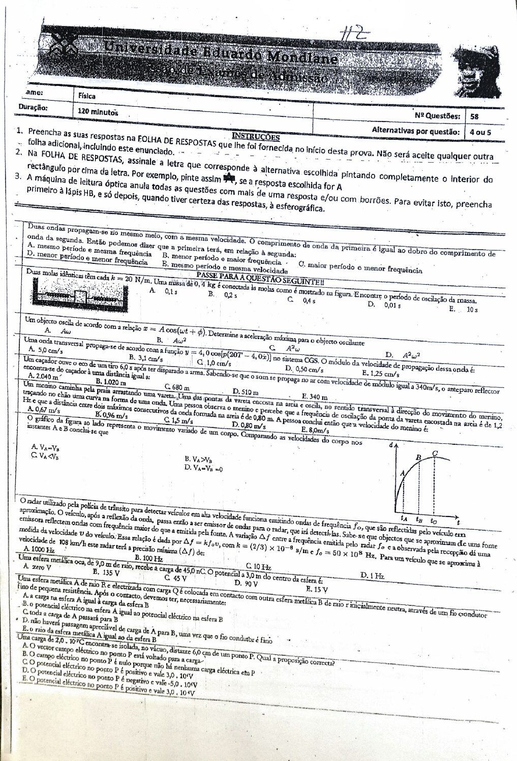 Fisica I – 2025 da UEM (Enunciado do Exame em PDF) - Baixar este documento em PDF para uso no seu ambiente académico...