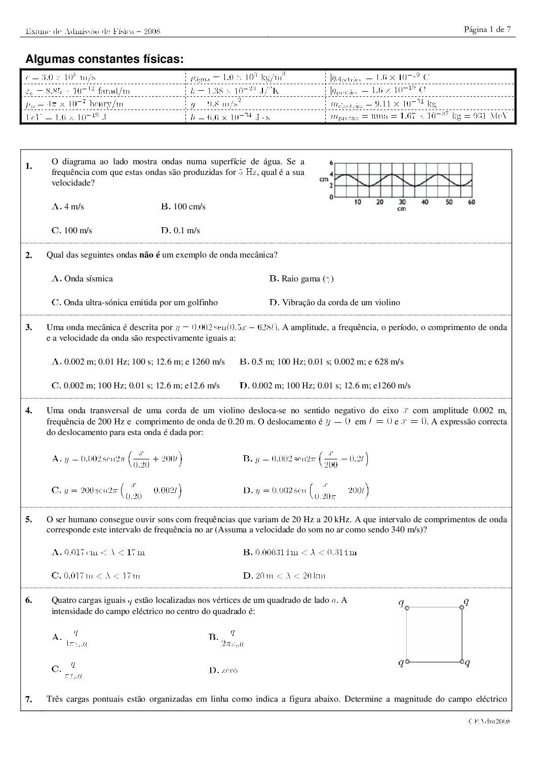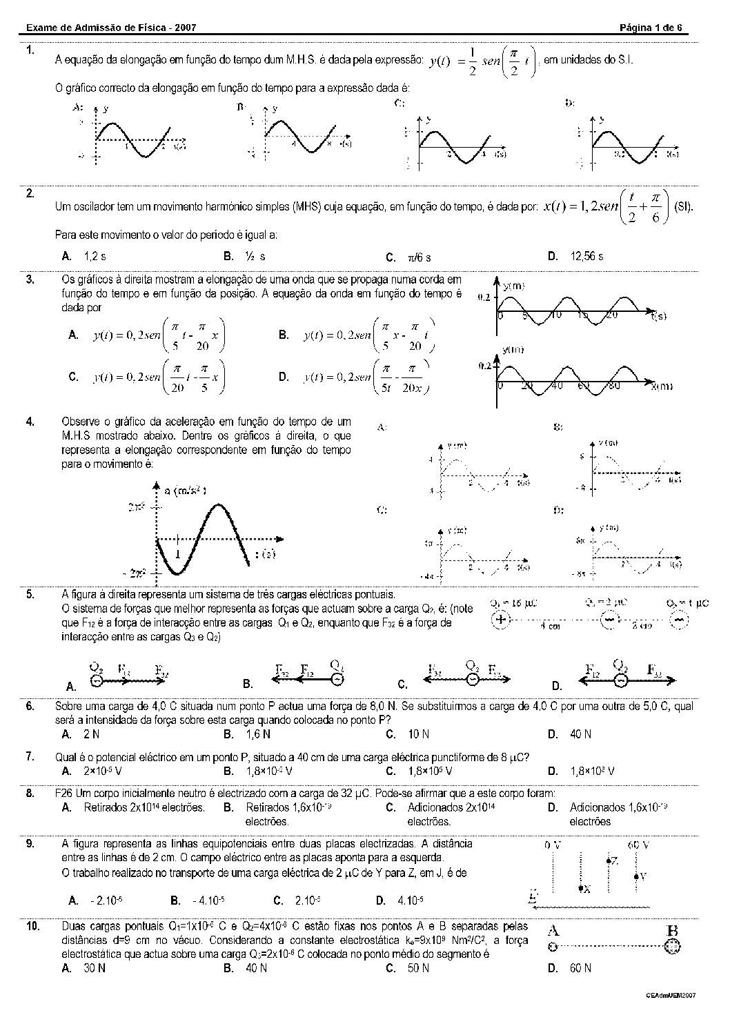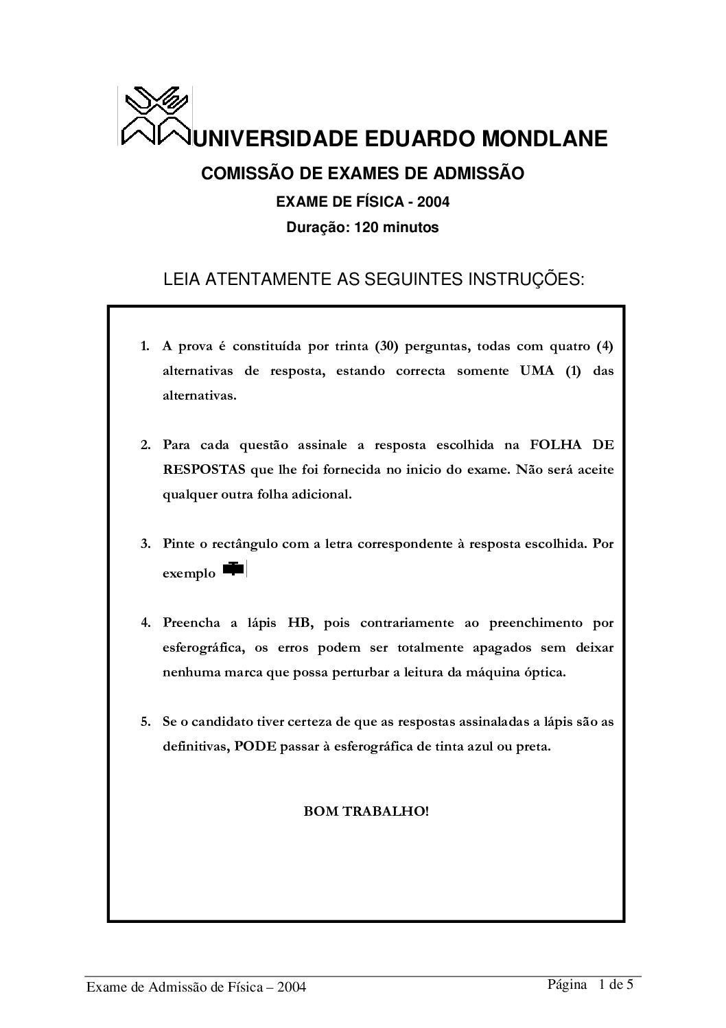 Fisica I – 2025 da UEM (Enunciado do Exame em PDF) - Baixar este documento em PDF para uso no seu ambiente académico...