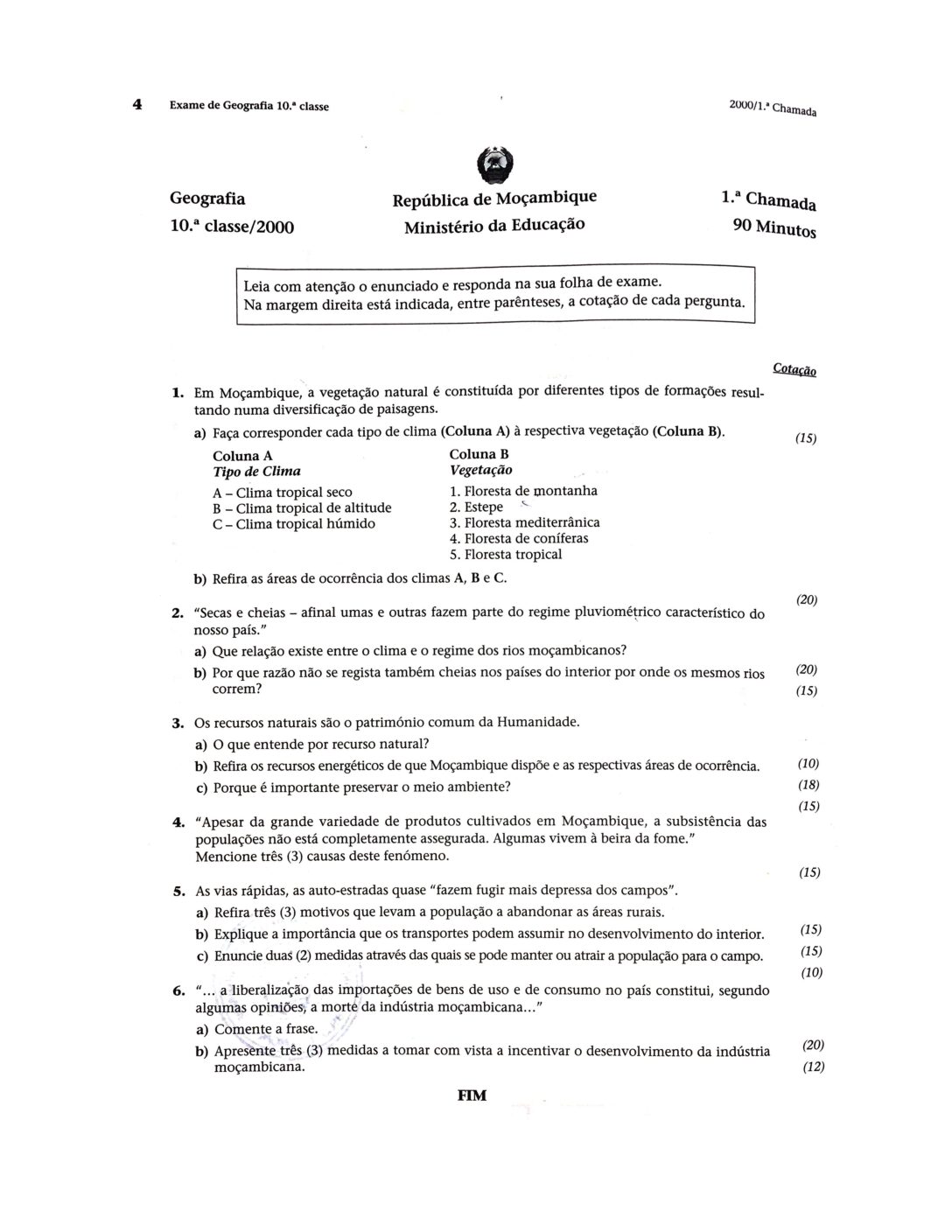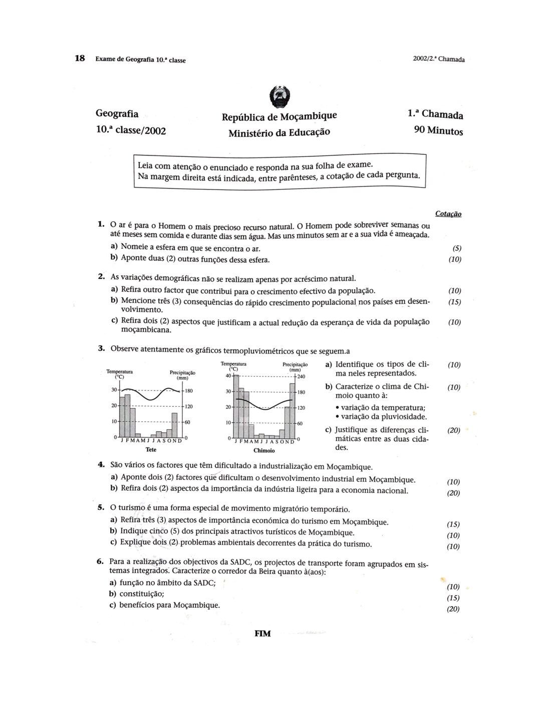 Geografia 2000 – 2ª Chamada da 10ª classe (Enunciado do Exame em PDF)