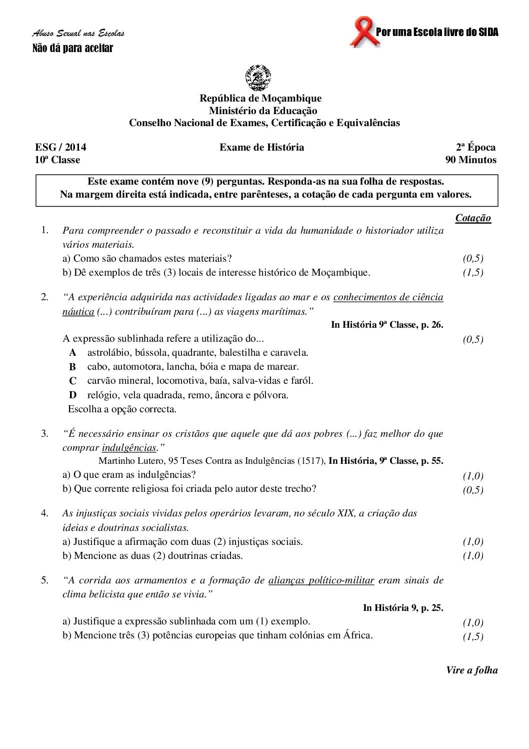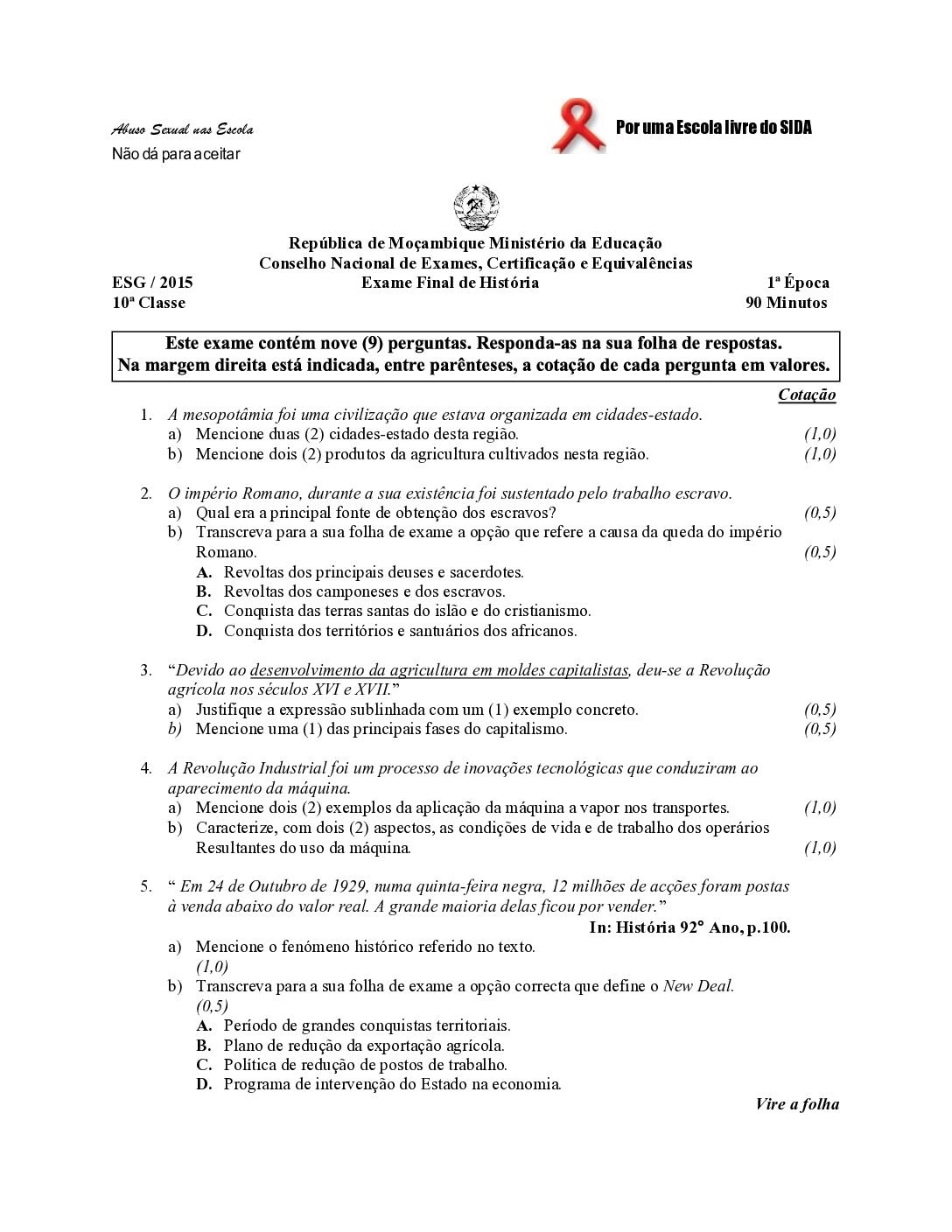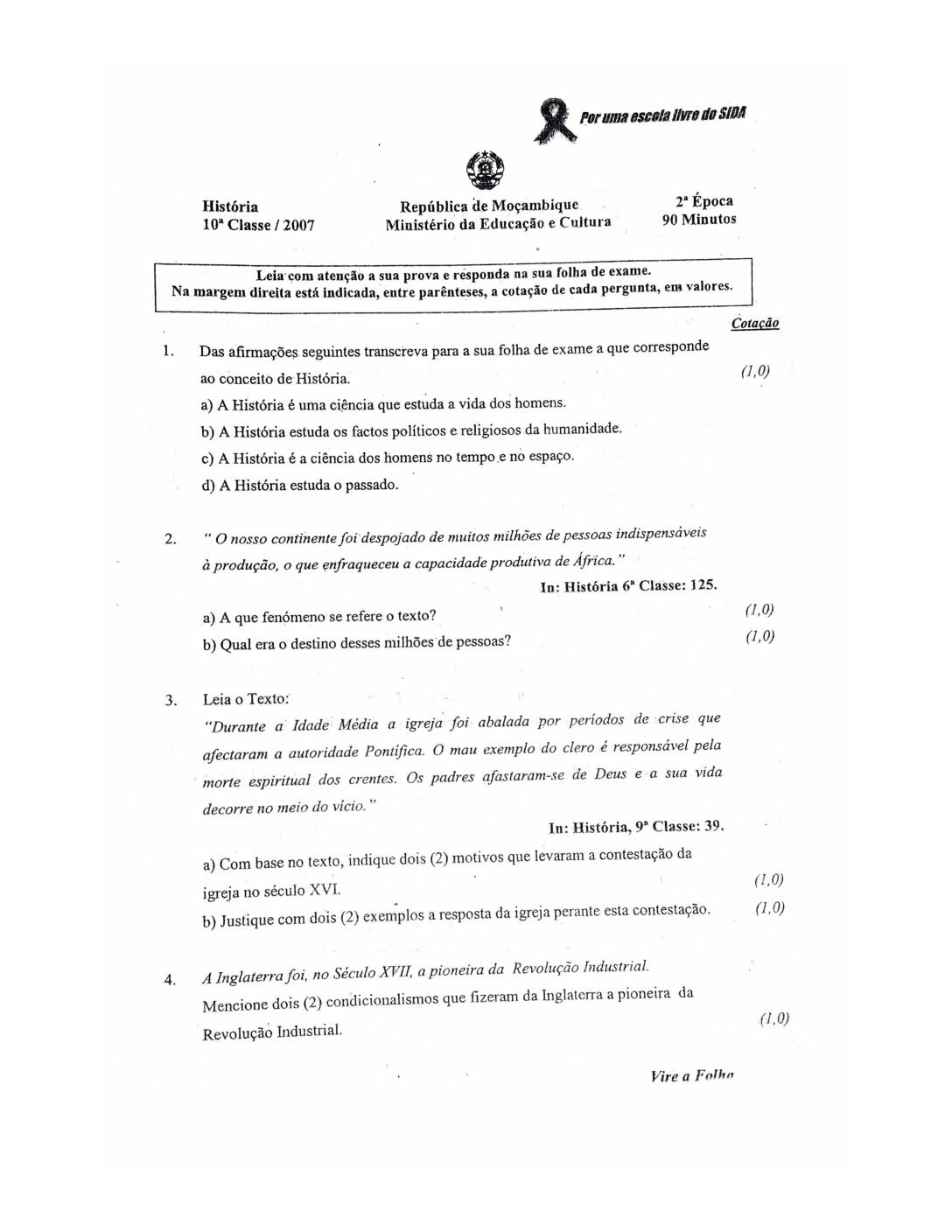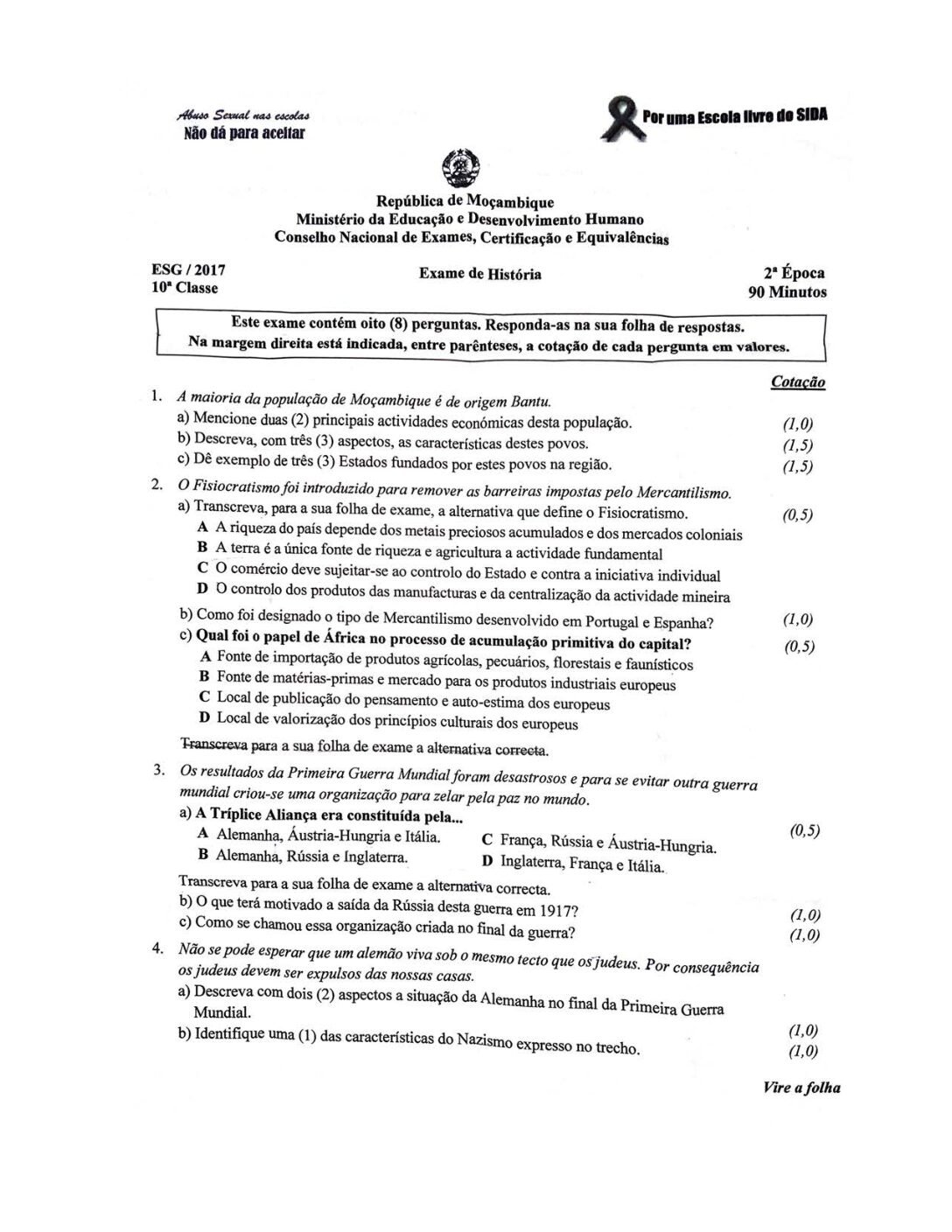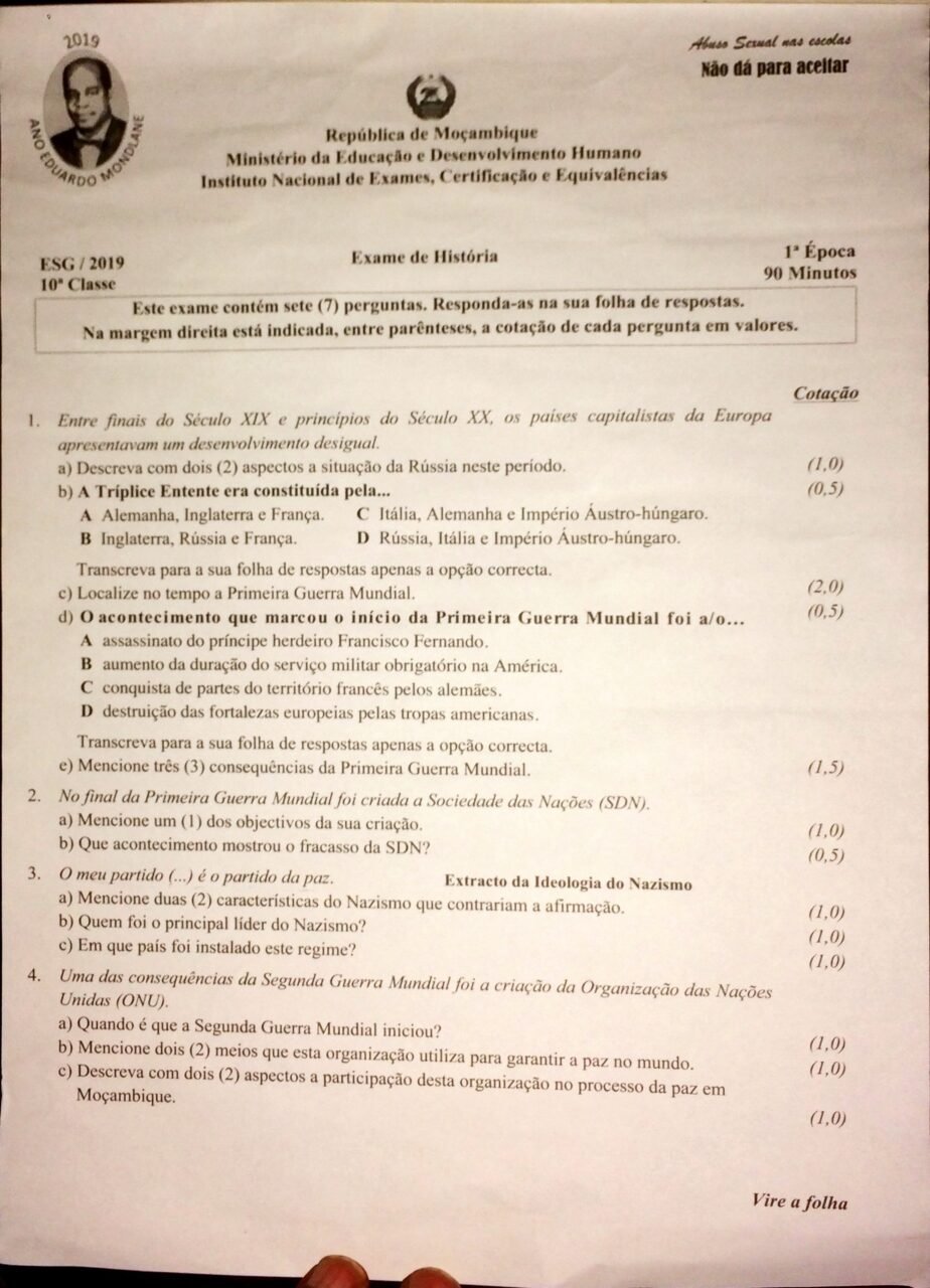História 2017 – 2ª Chamada da 10ª classe (Enunciado do Exame em PDF)