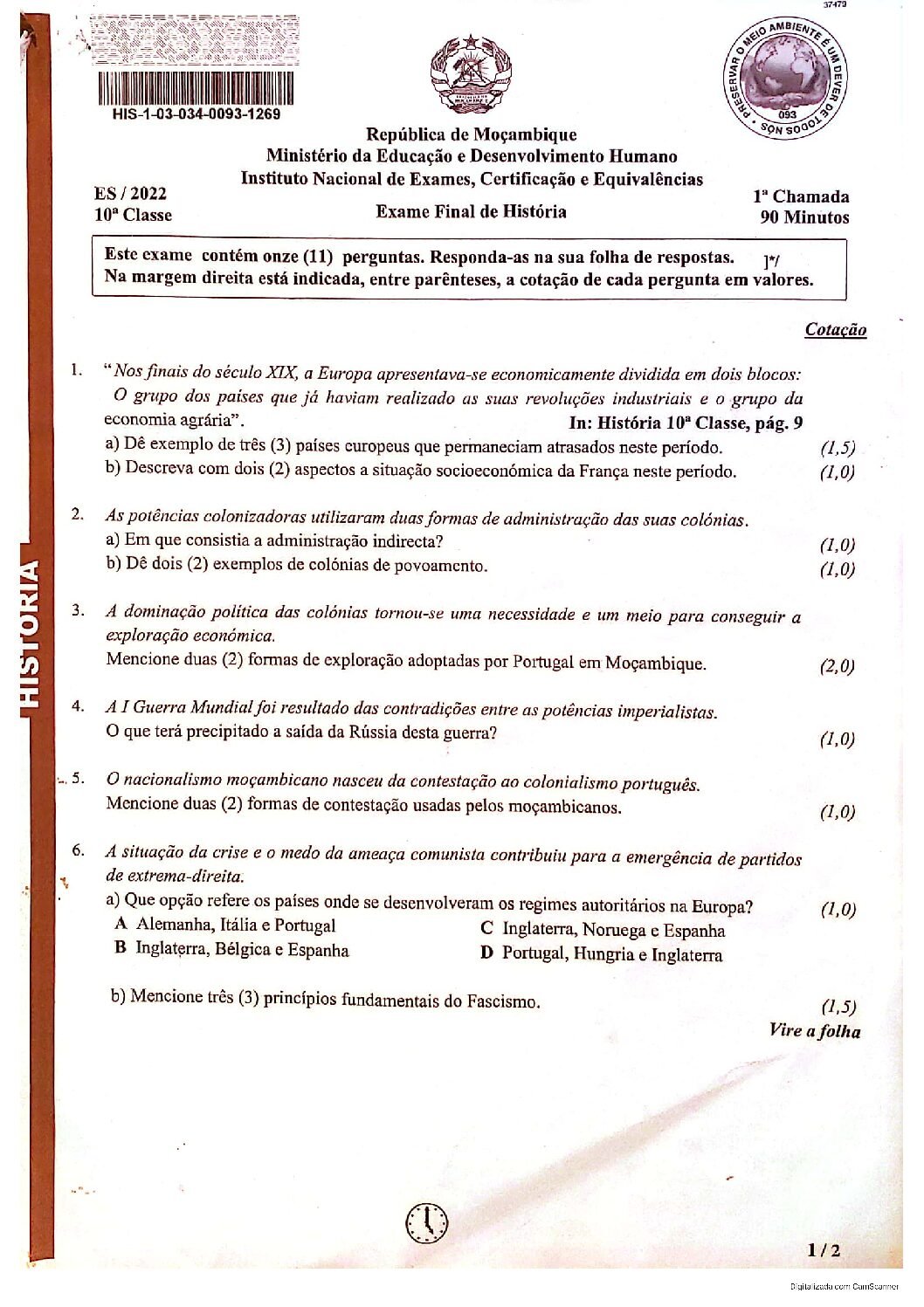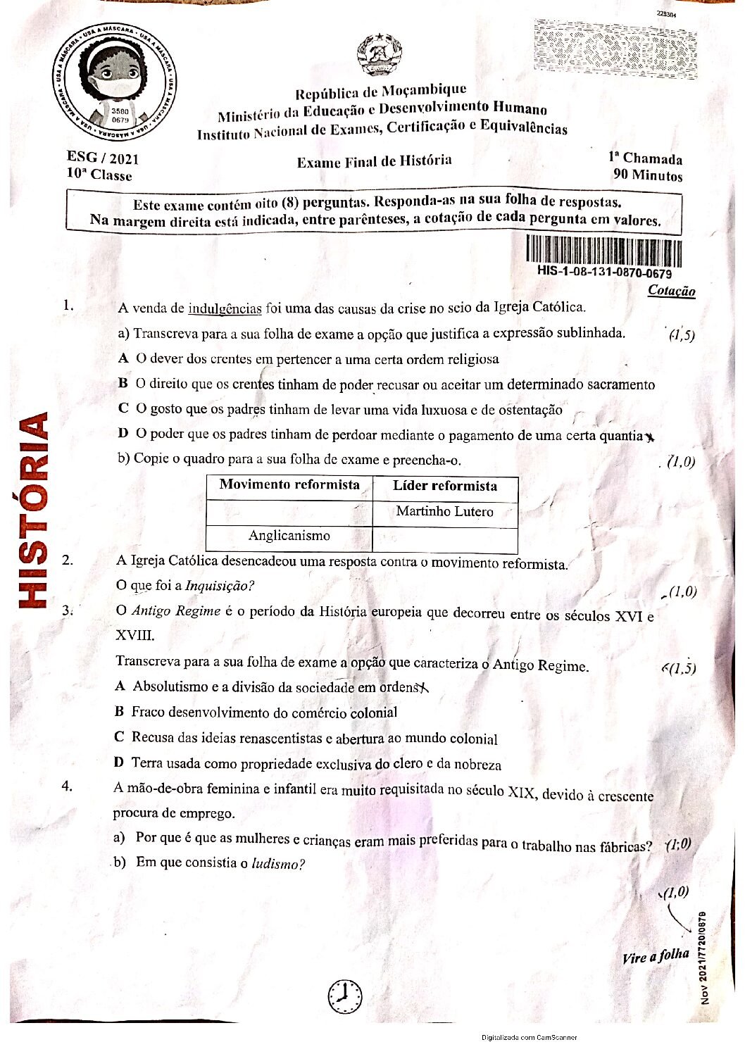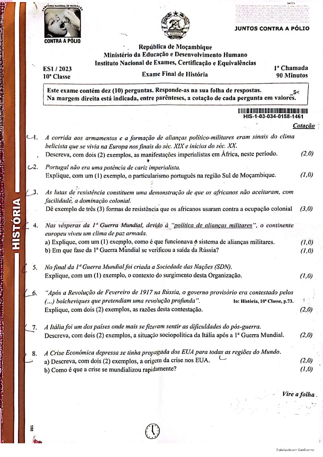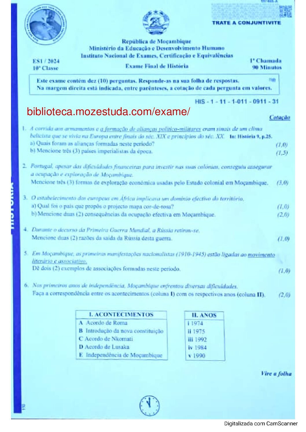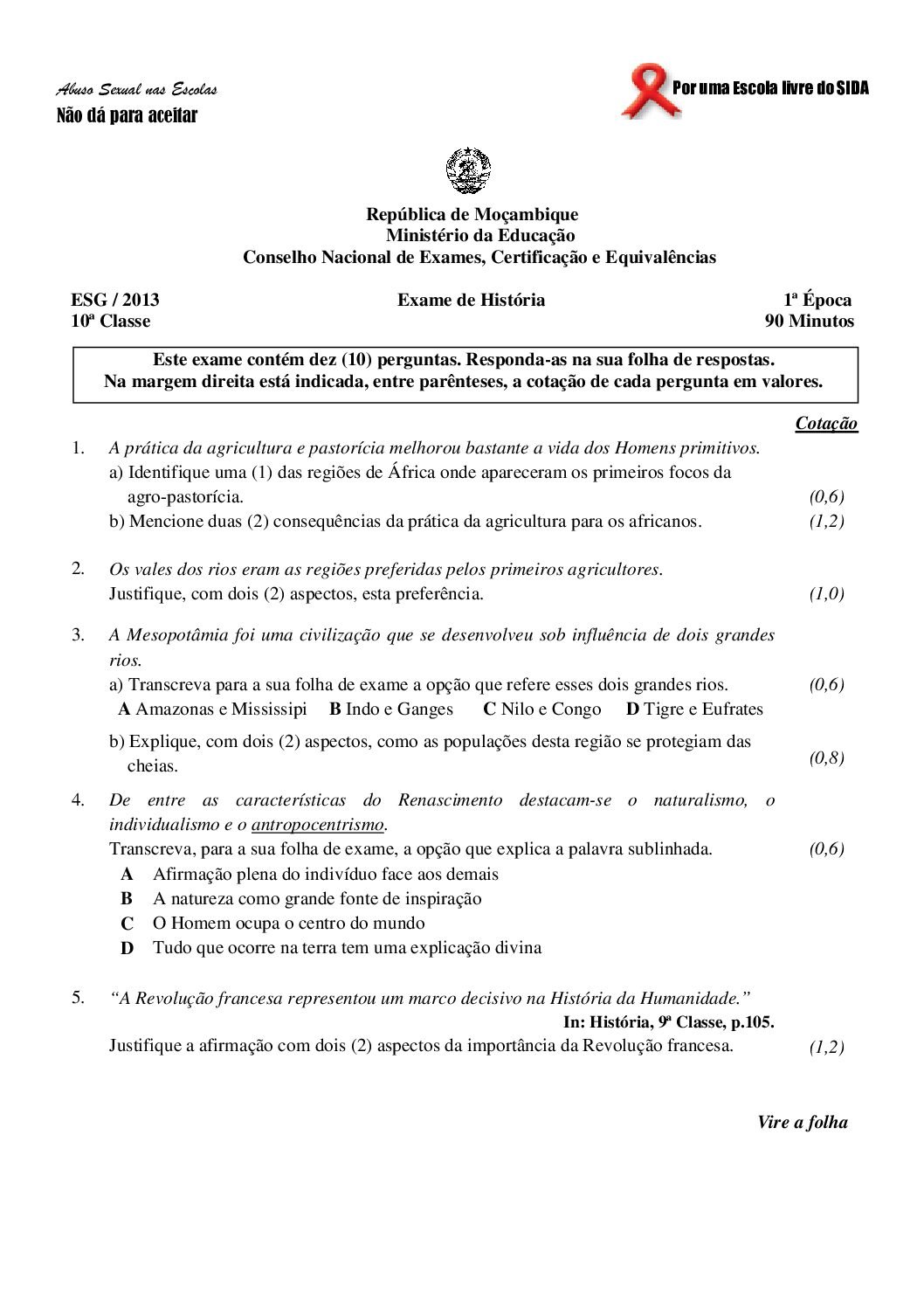 História 2017 – 2ª Chamada da 10ª classe (Enunciado do Exame em PDF)
