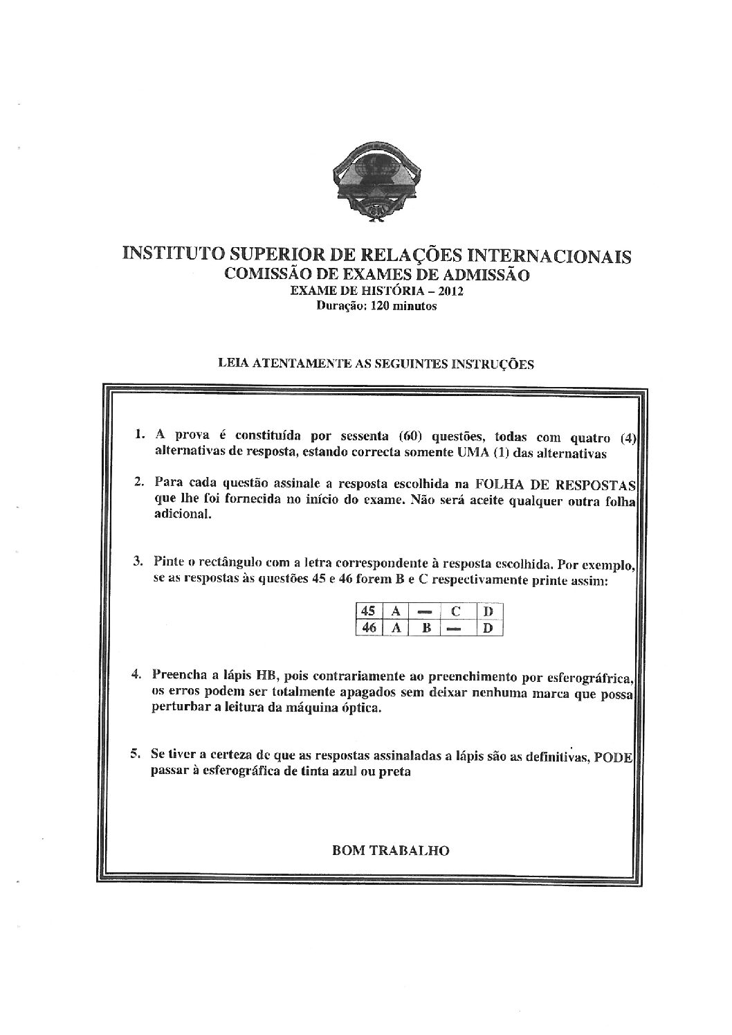 História – 2022 da UJC (Enunciado do Exame de Admissão em PDF)