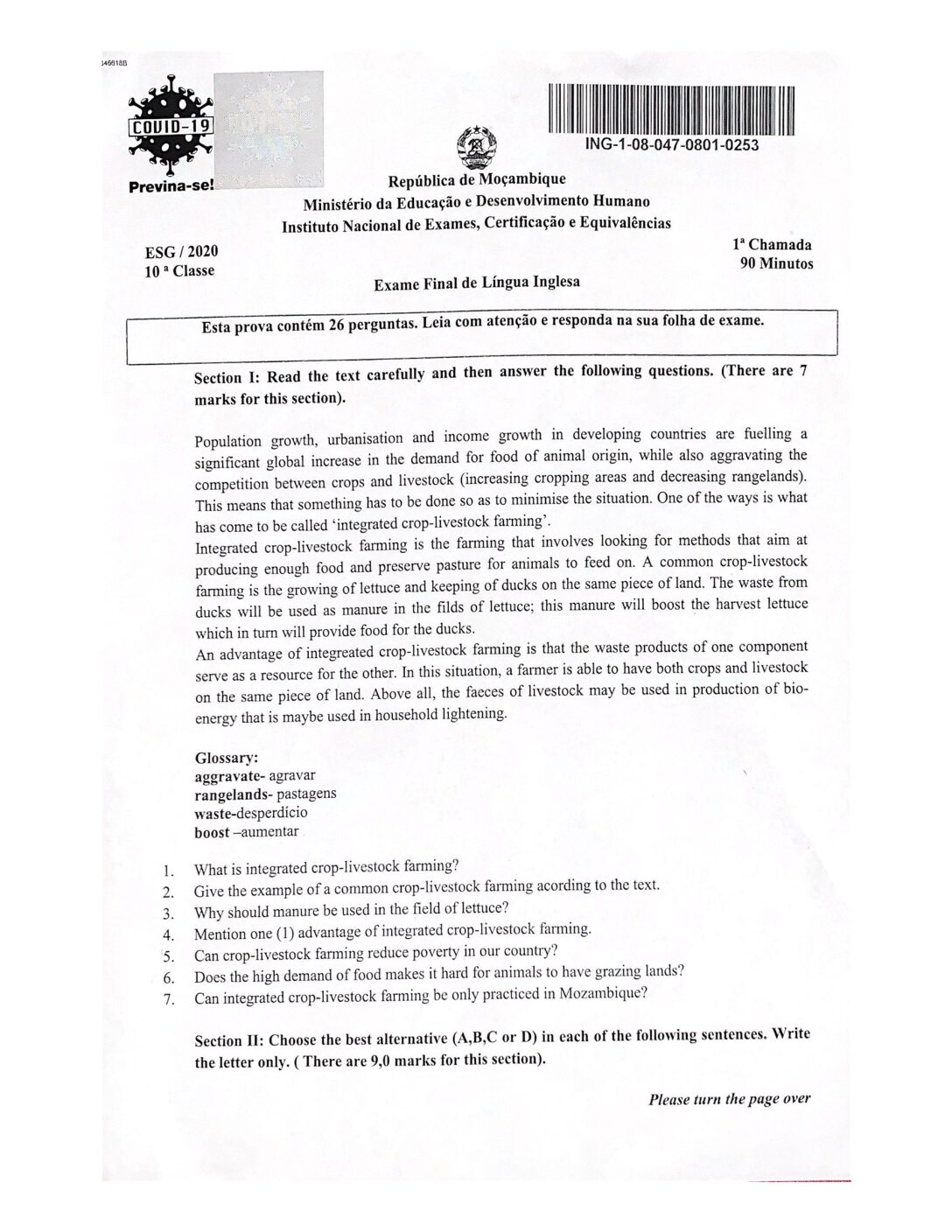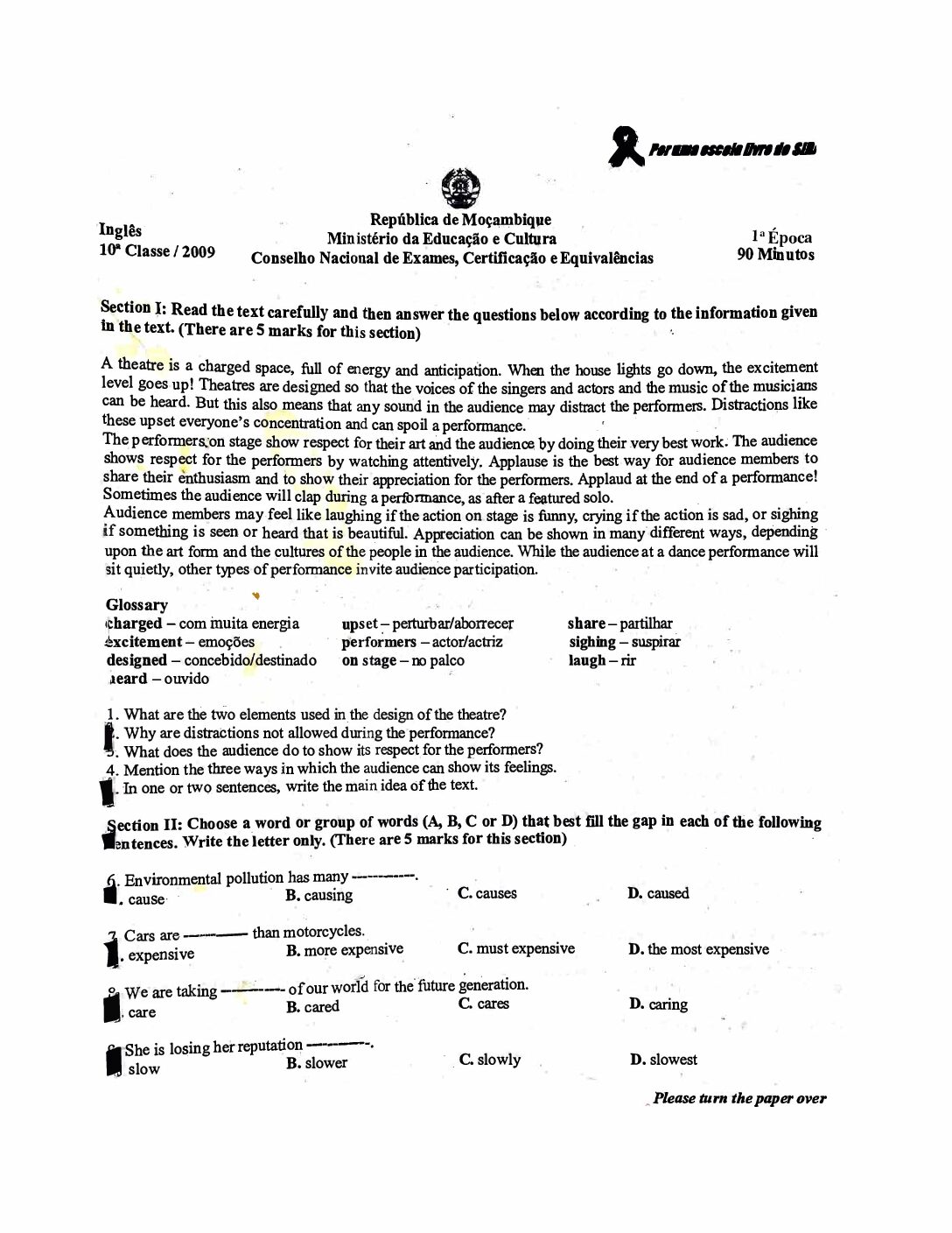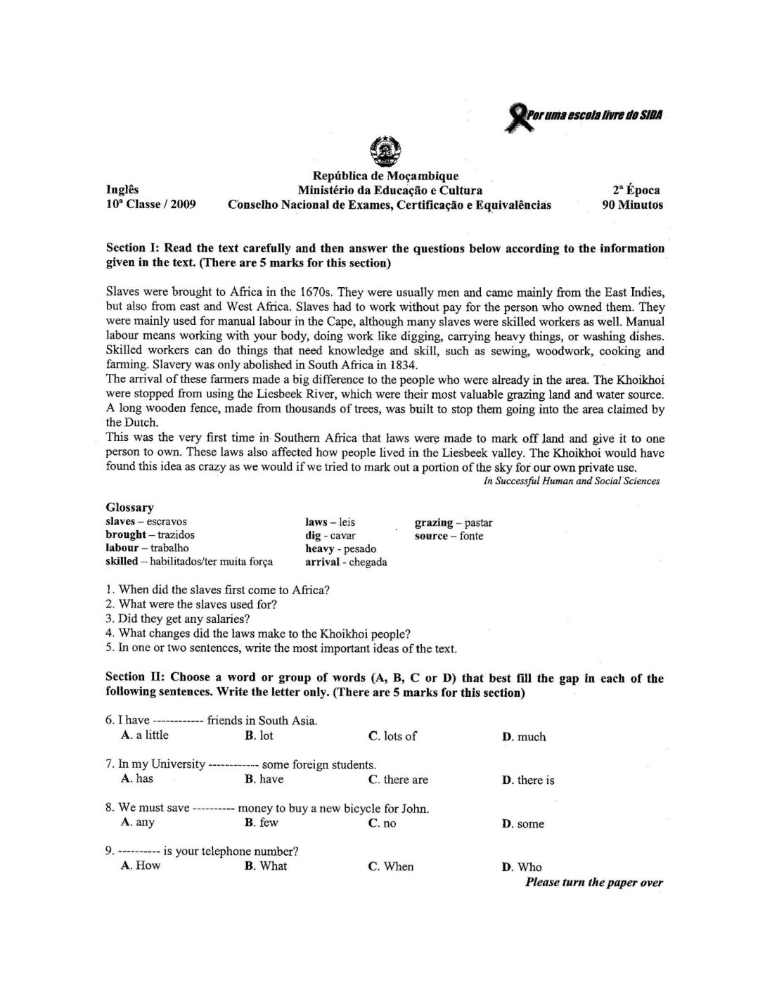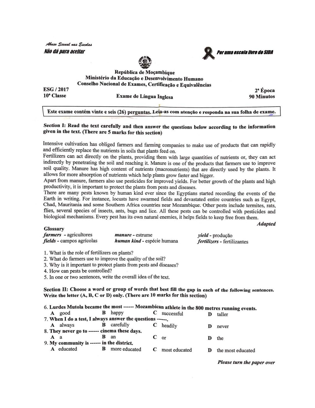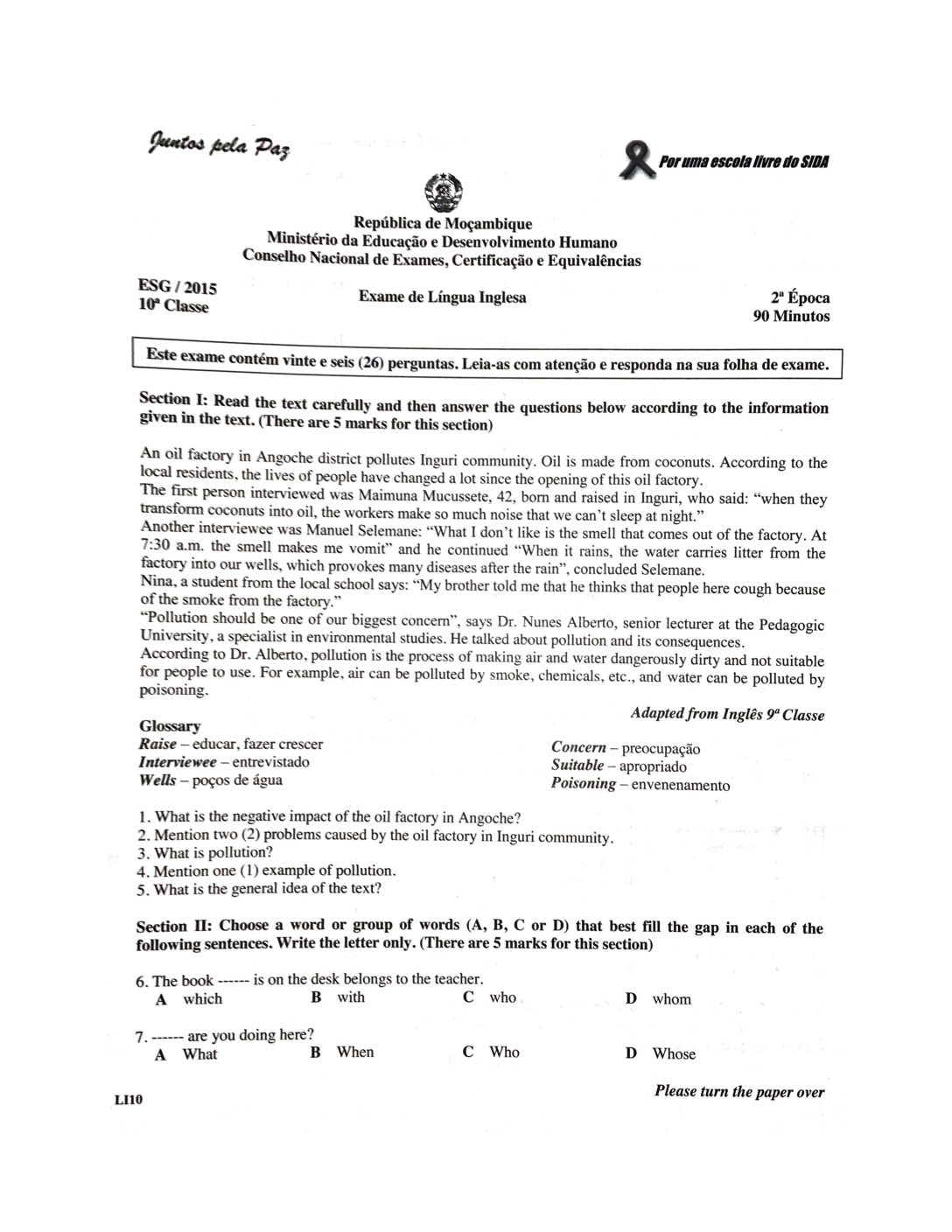 Inglês 2014 – 2ª Chamada da 10ª classe (Enunciado do Exame em PDF)
