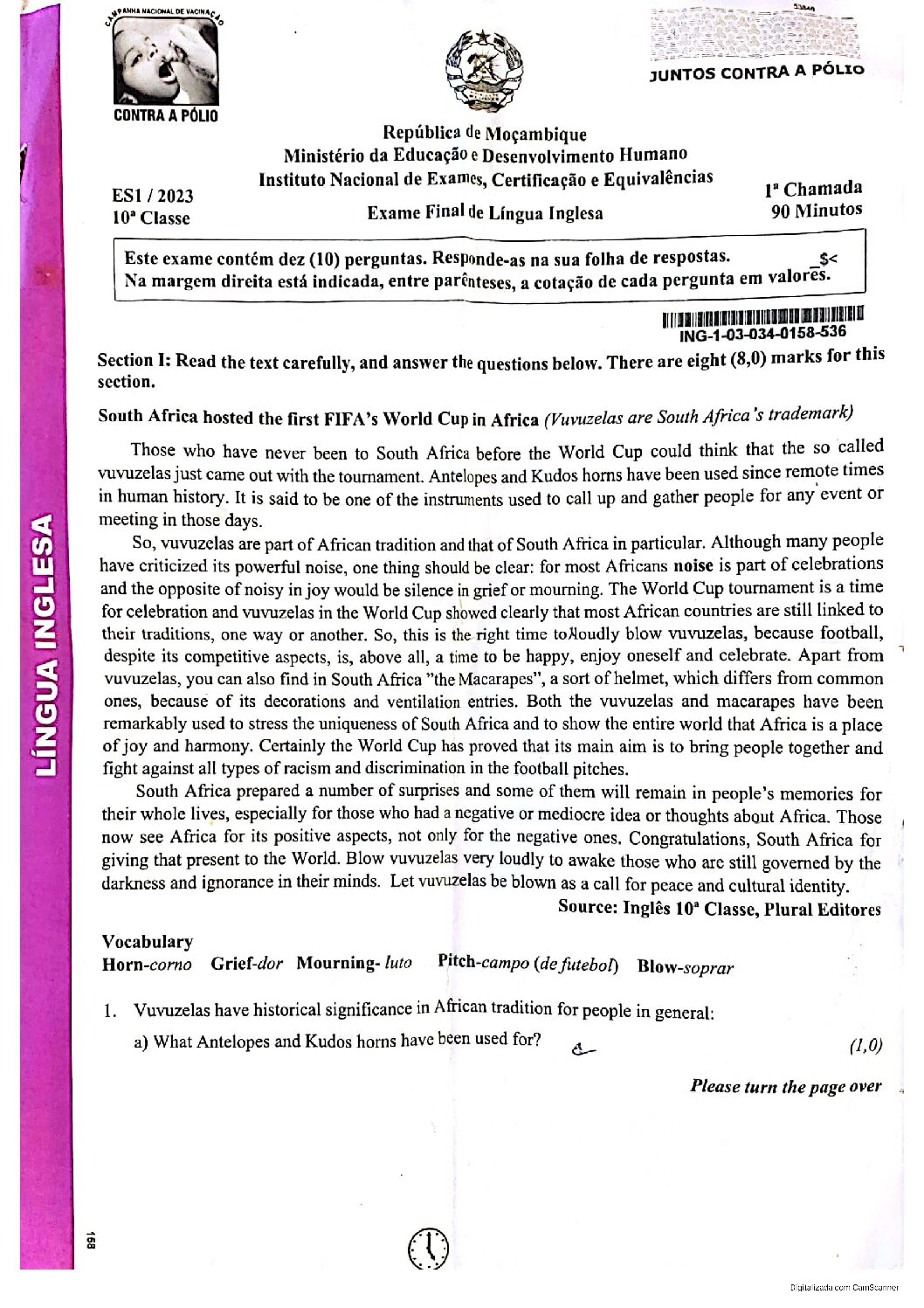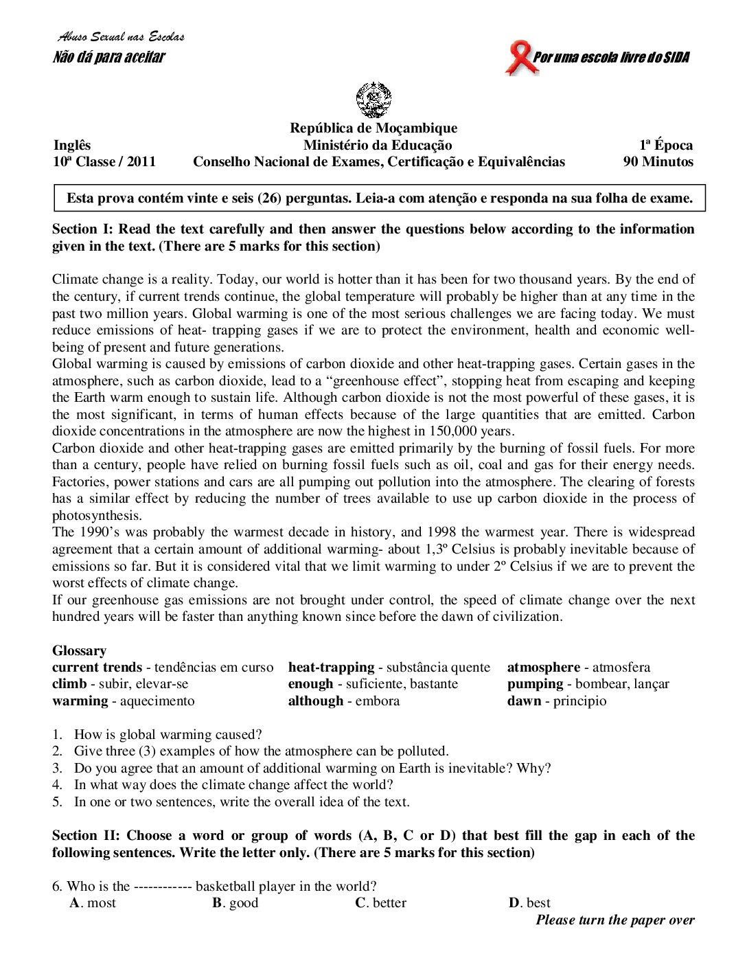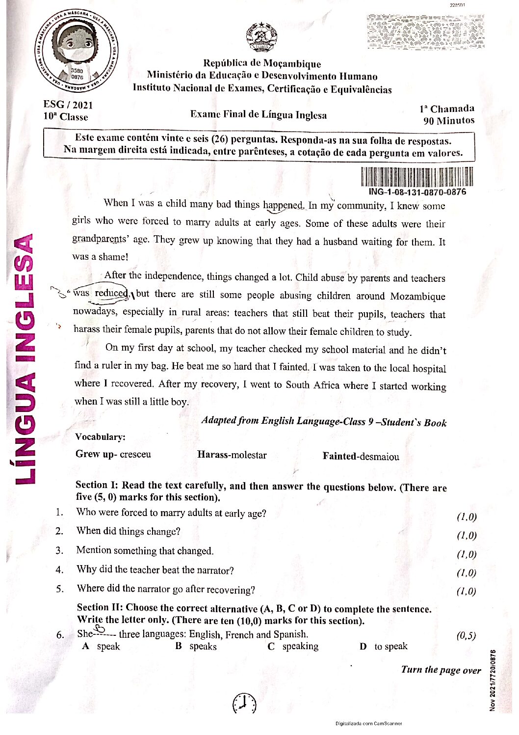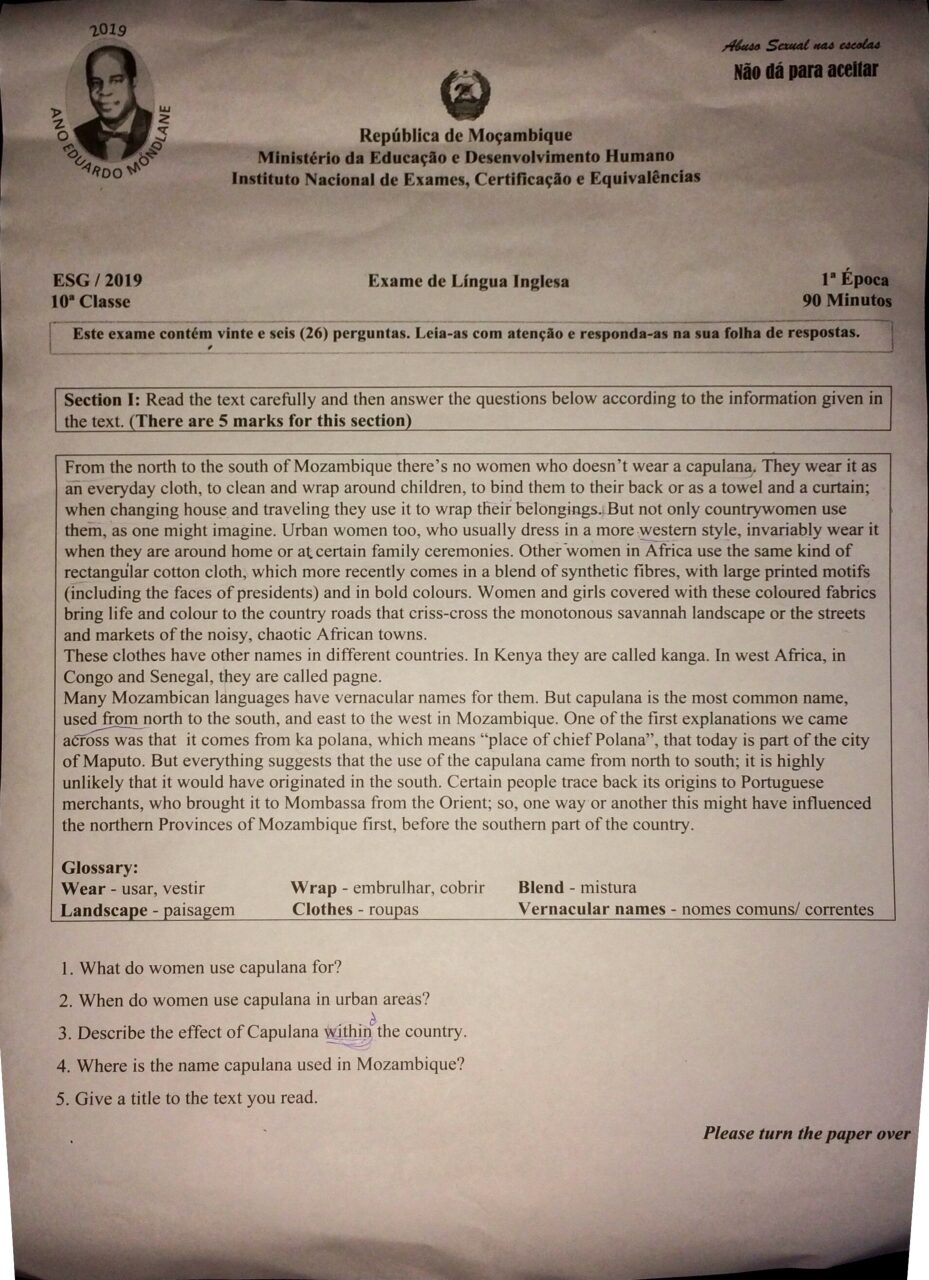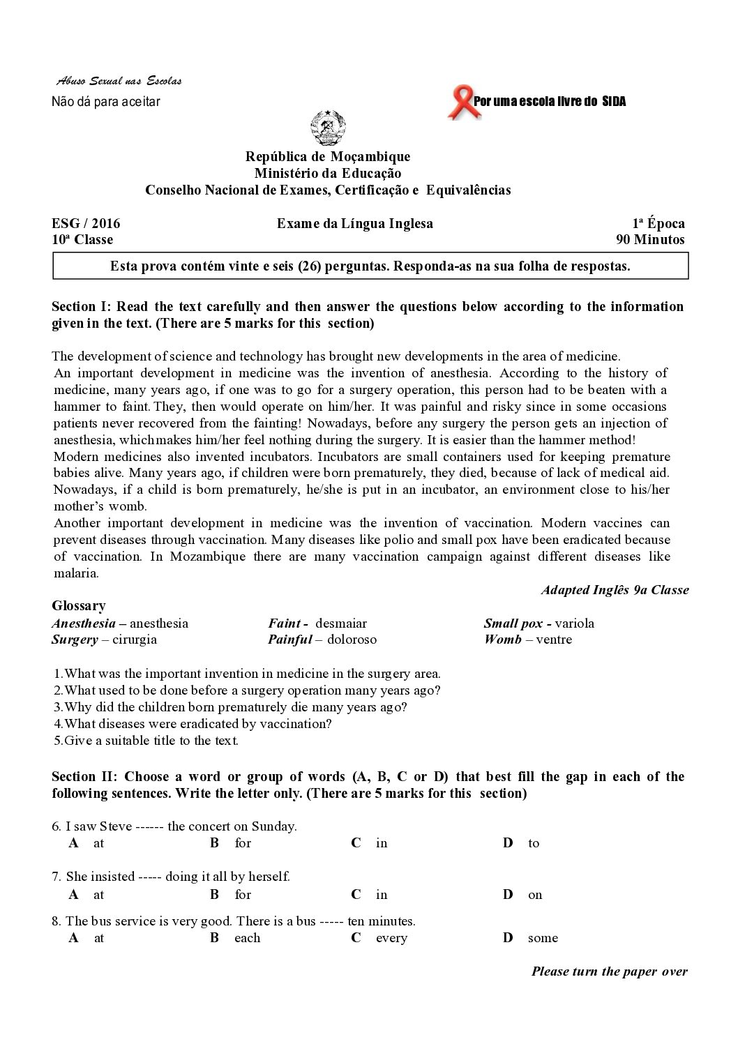 Inglês 2014 – 2ª Chamada da 10ª classe (Enunciado do Exame em PDF)