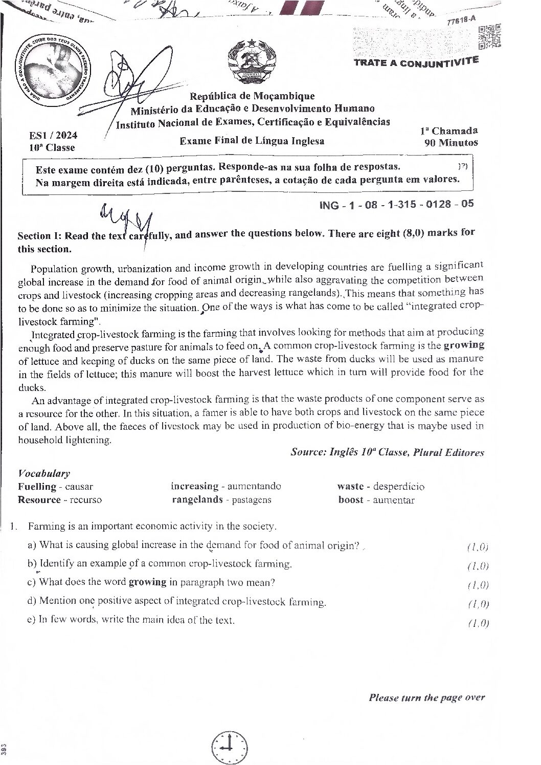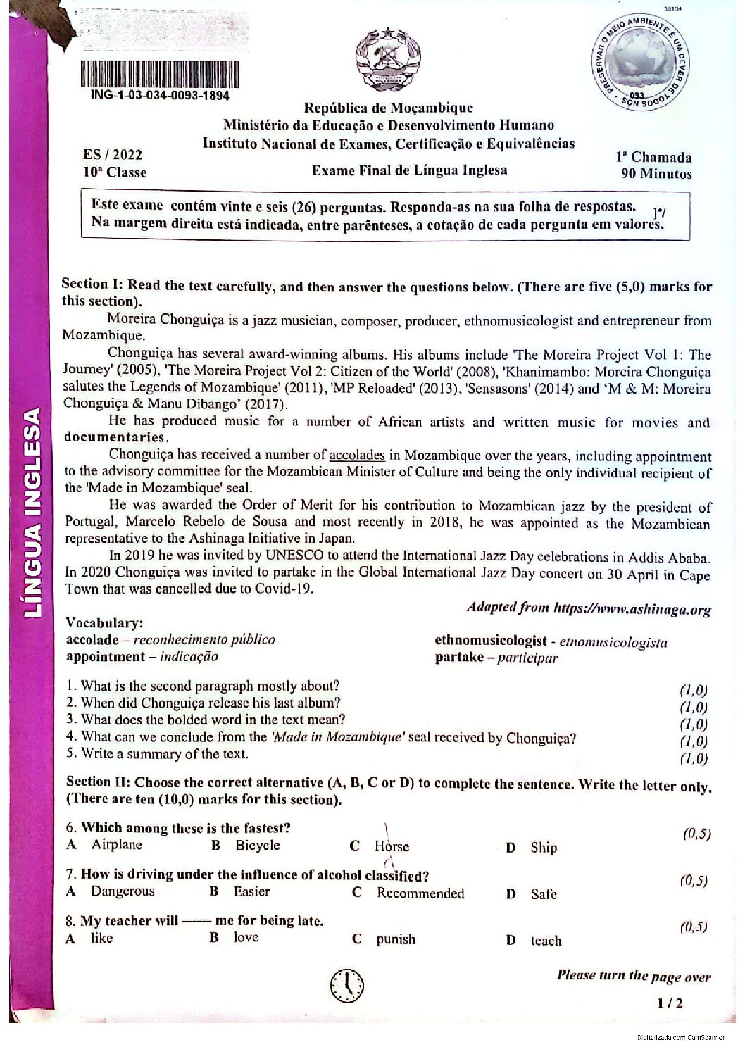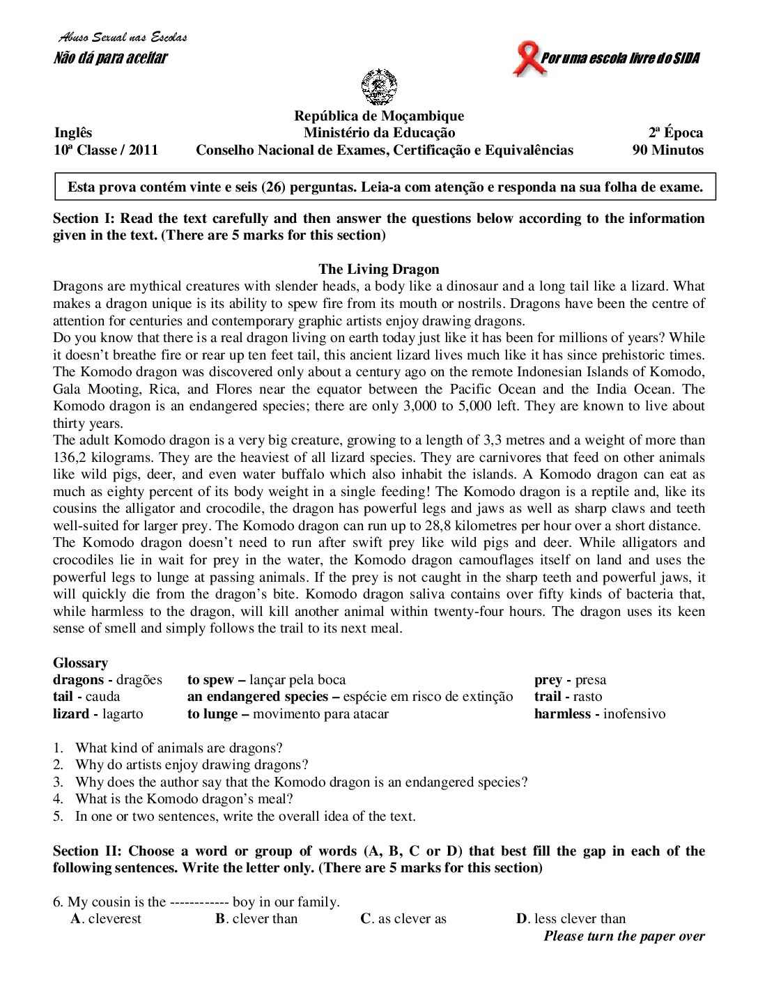 Inglês 2014 – 2ª Chamada da 10ª classe (Enunciado do Exame em PDF) - Baixar este documento, de forma simples, segura e grátis,...