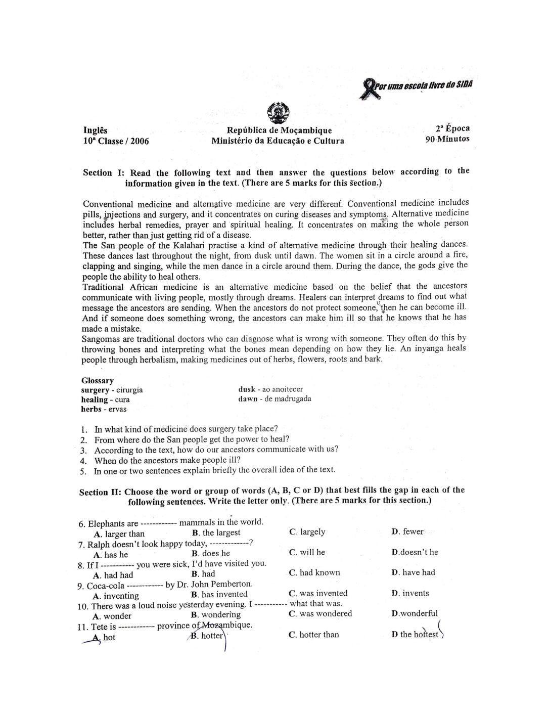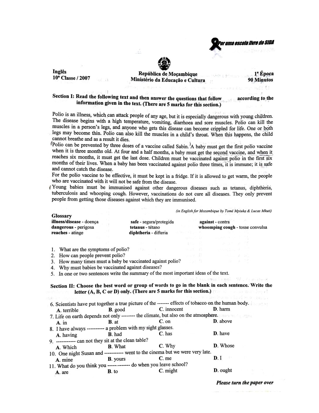 Inglês 2014 – 2ª Chamada da 10ª classe (Enunciado do Exame em PDF)