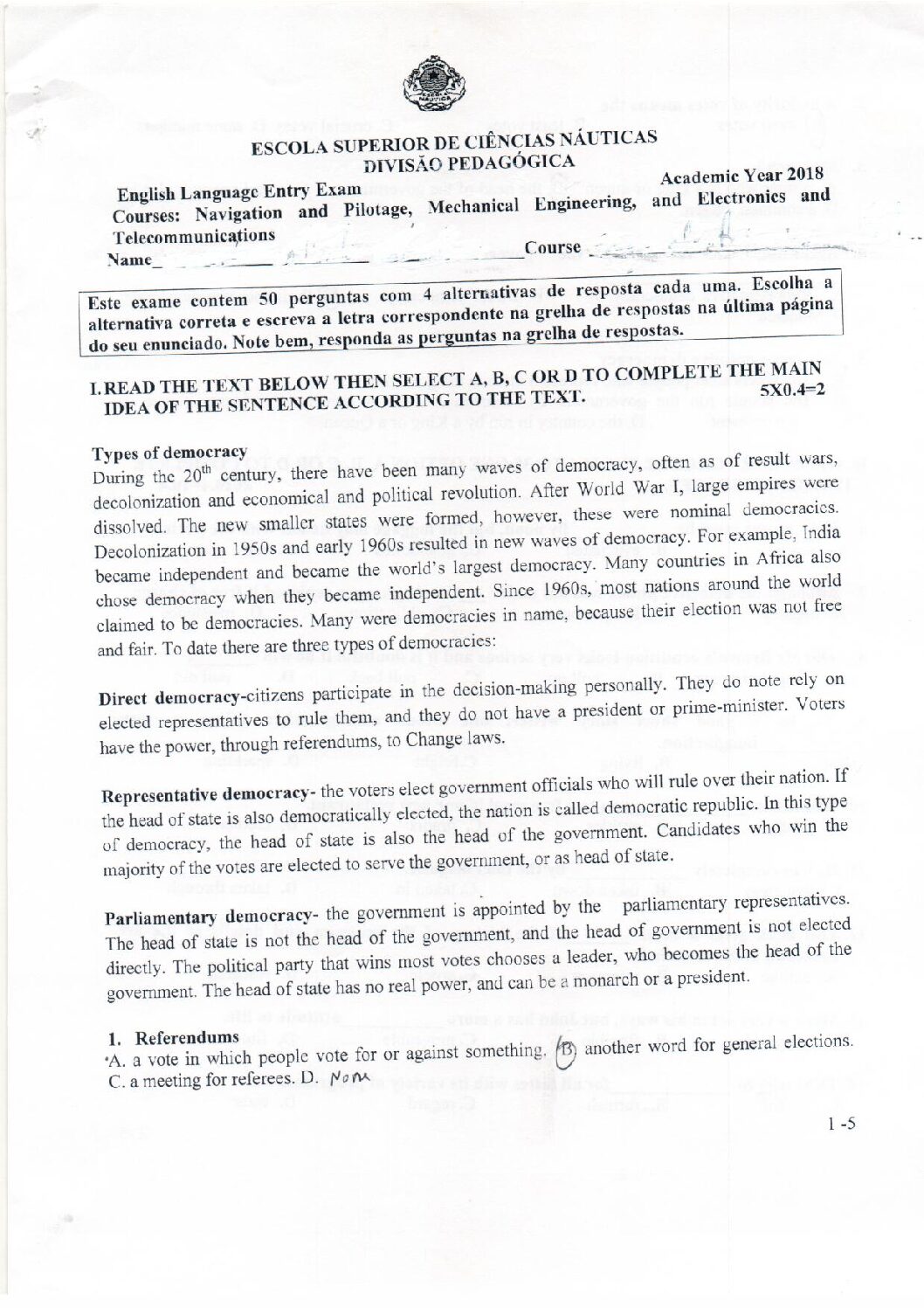 Inglês – 2019 da Escola Náutica (Enunciado do Exame de Admissão em PDF)
