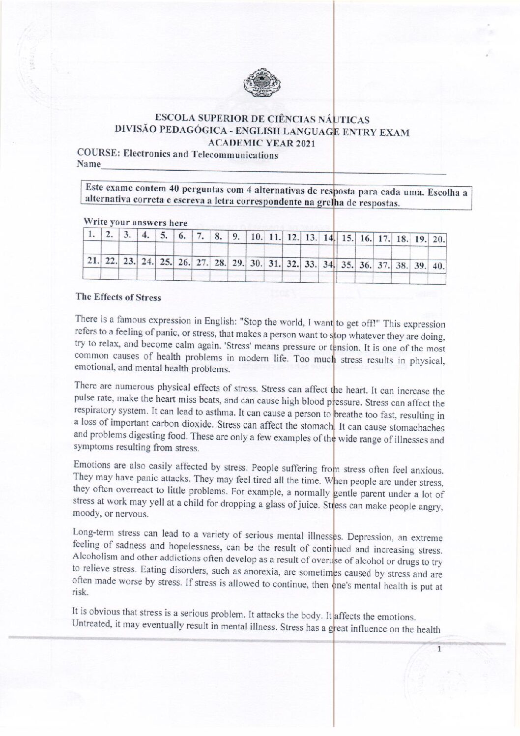 Inglês – 2019 da Escola Náutica (Enunciado do Exame de Admissão em PDF). Baixe grátis em formato PDF para estudo e preparação....