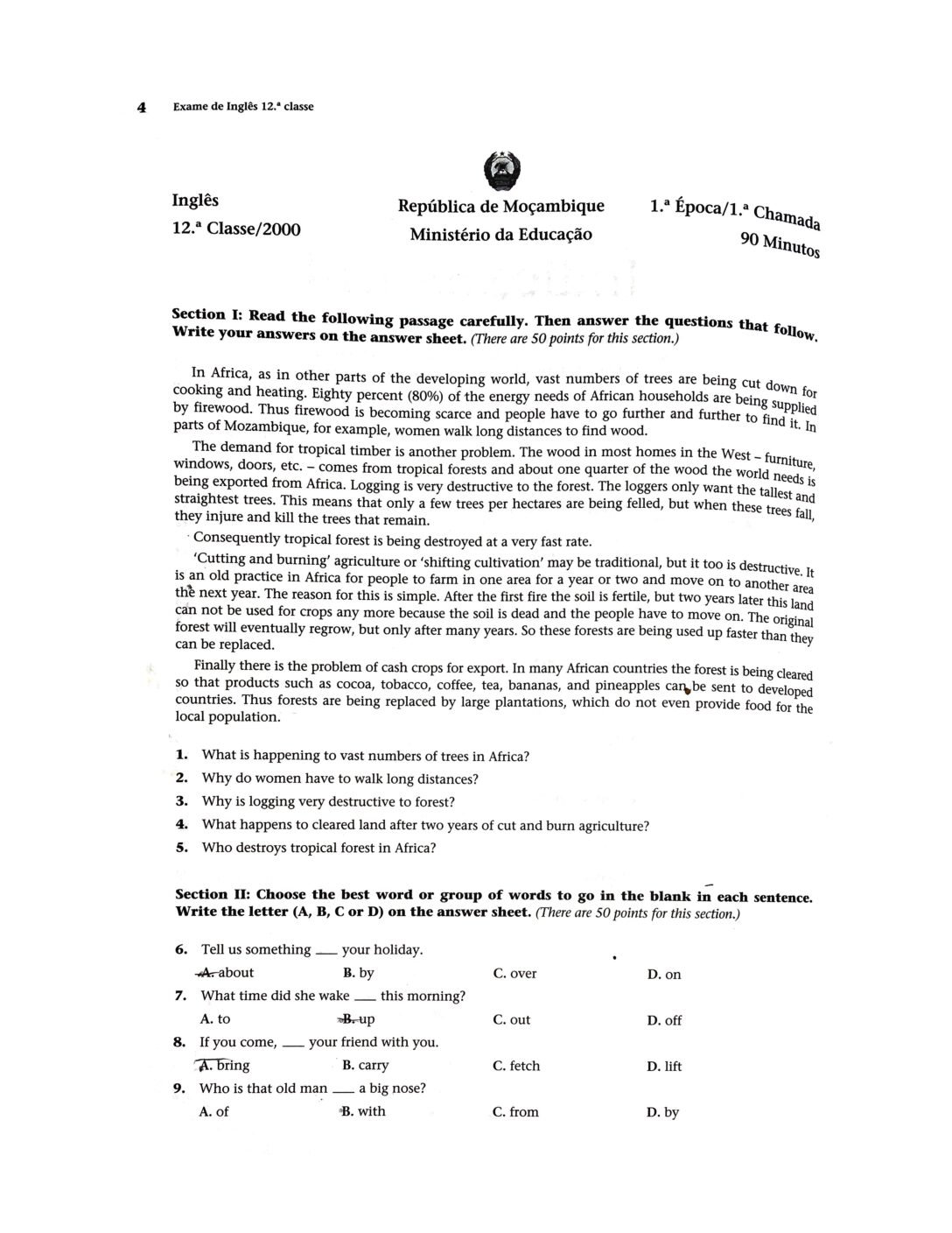 Inglês 2023 – 1ª Chamada da 12ª classe (Enunciado do Exame em PDF)