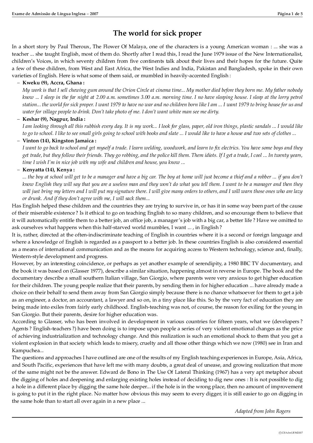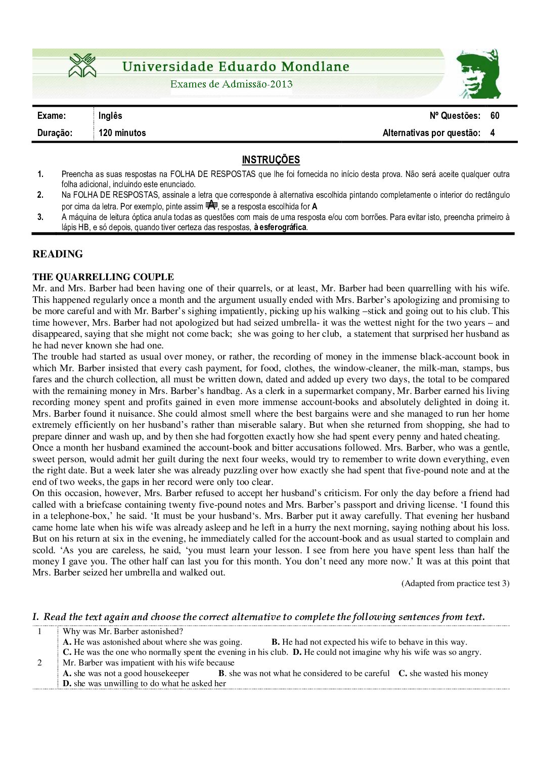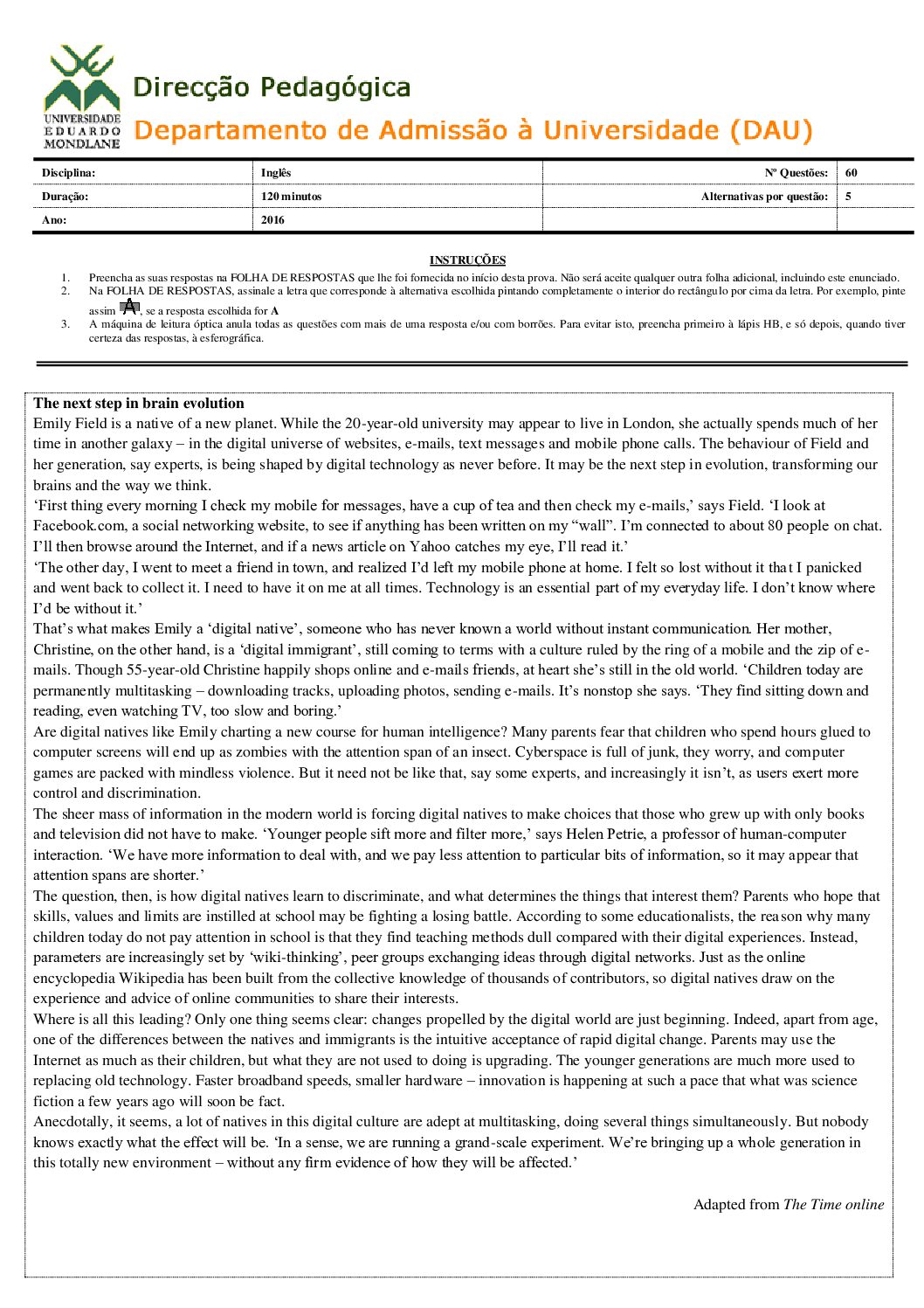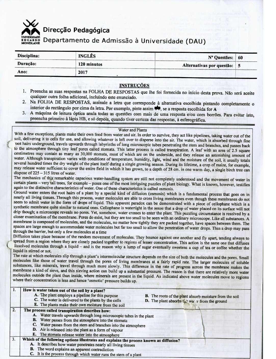 Inglês – 2023 da UEM (Enunciado do Exame em PDF) - Baixar este documento em PDF para uso no seu ambiente académico...