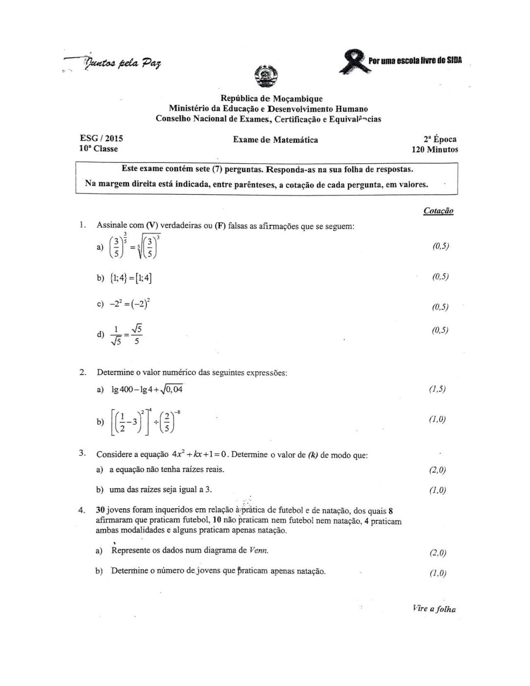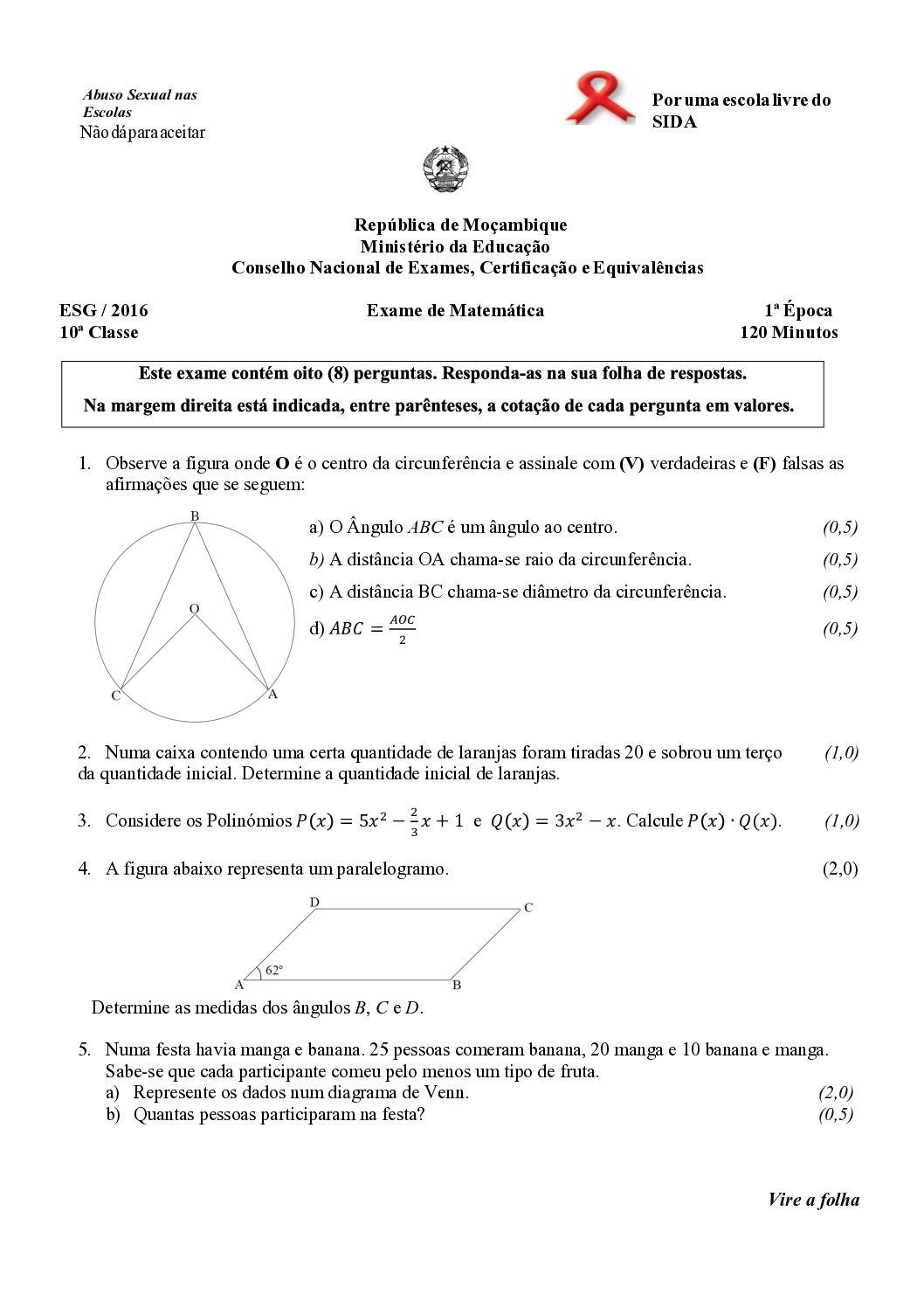 Matemática 10ª classe 2003 – 1ª Época (Enunciado do Exame em PDF) - Baixar este documento em PDF para uso no seu ambiente...