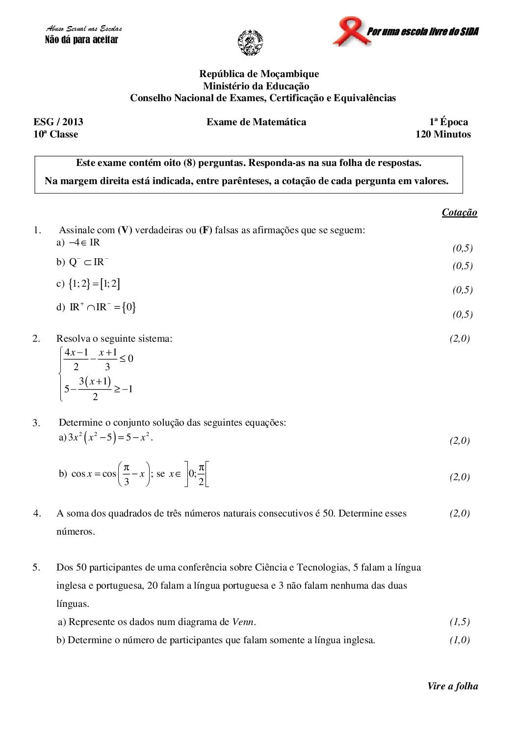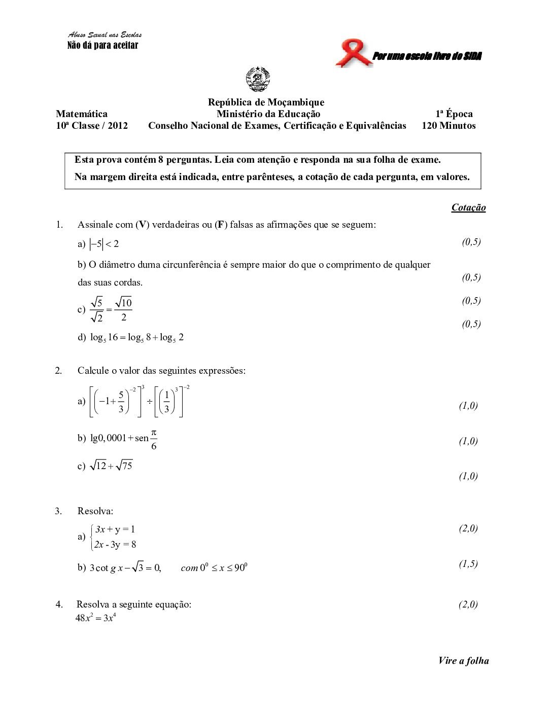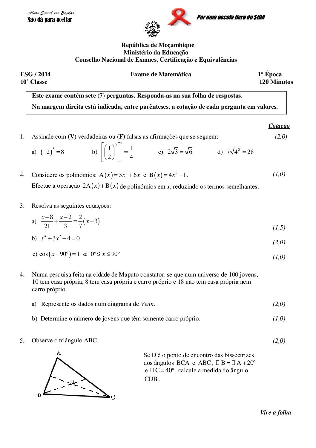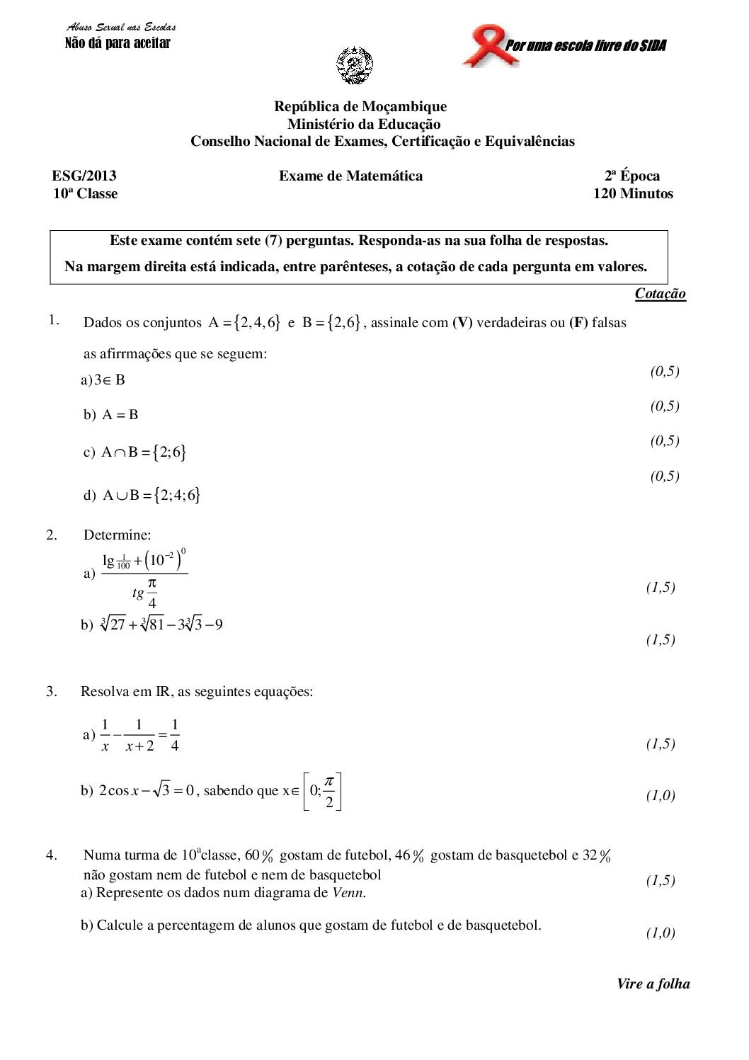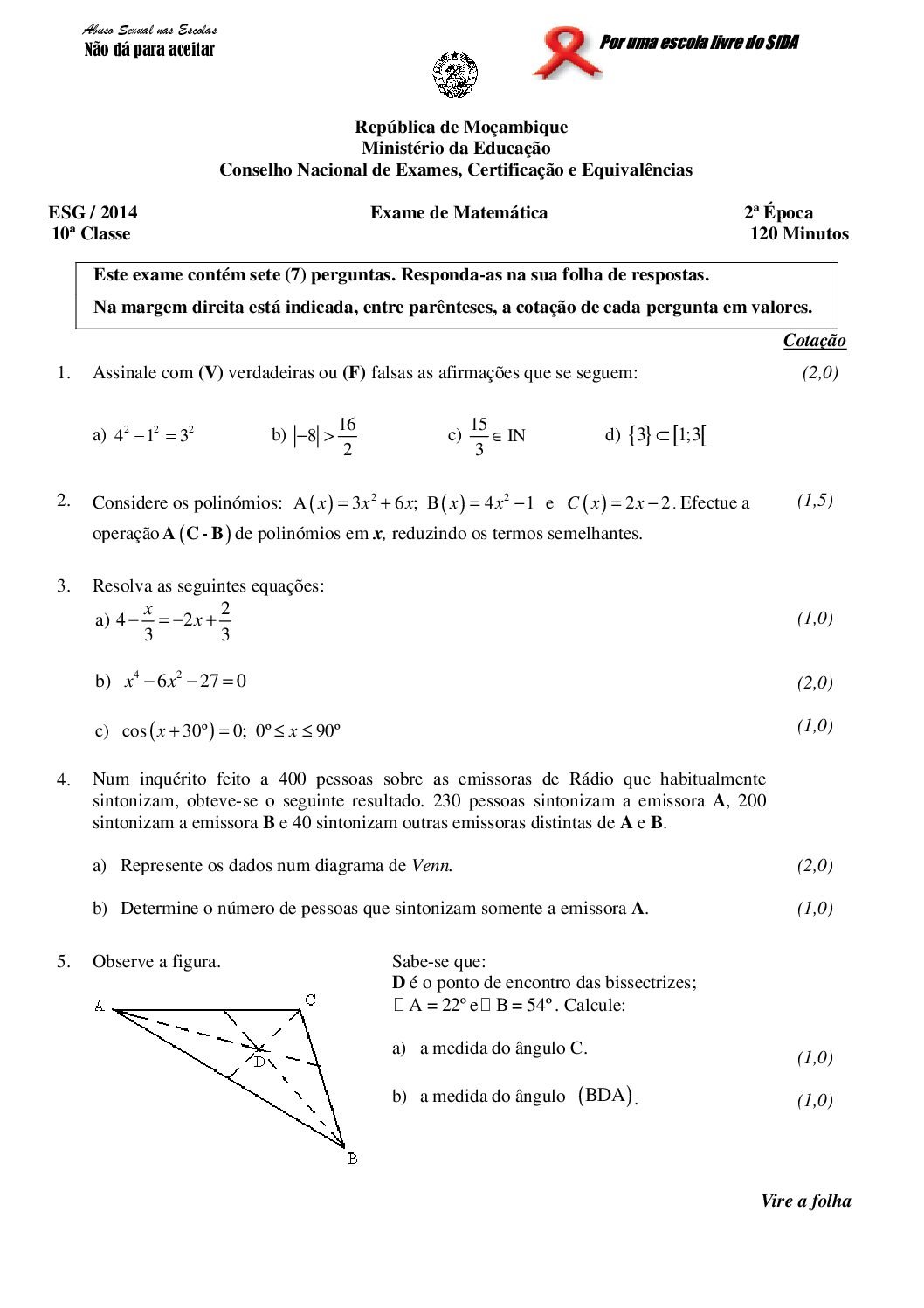 Matemática 2022 – 2ª Chamada da 10ª classe (Enunciado do exame em PDF) - Baixar este documento em PDF para uso no seu...