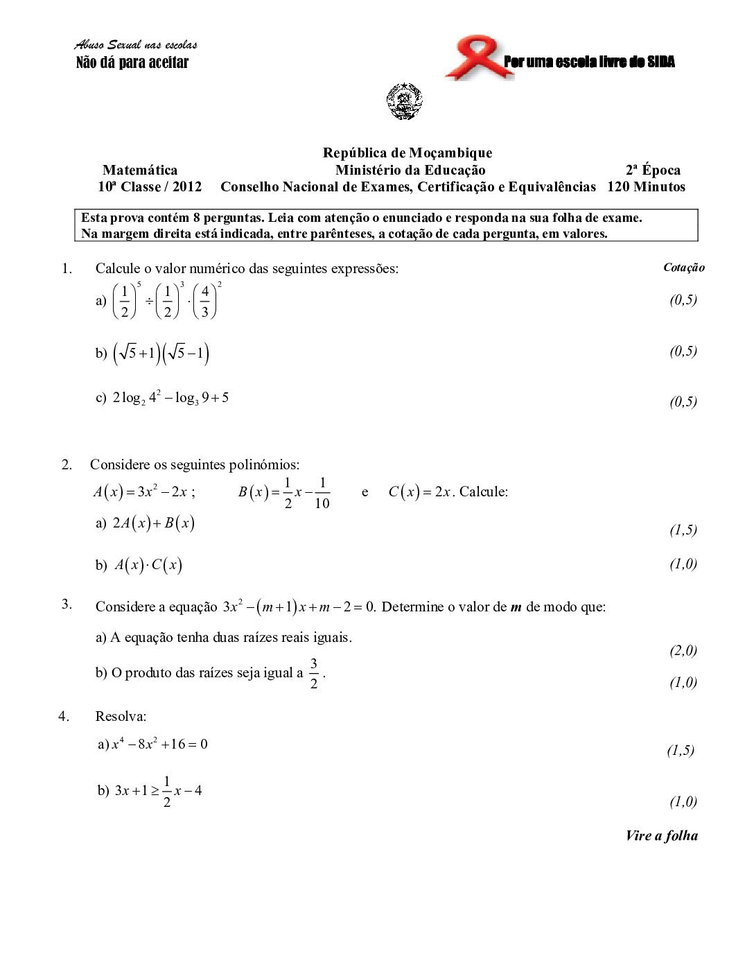 Matemática 2022 – 2ª Chamada da 10ª classe (Enunciado do exame em PDF)
