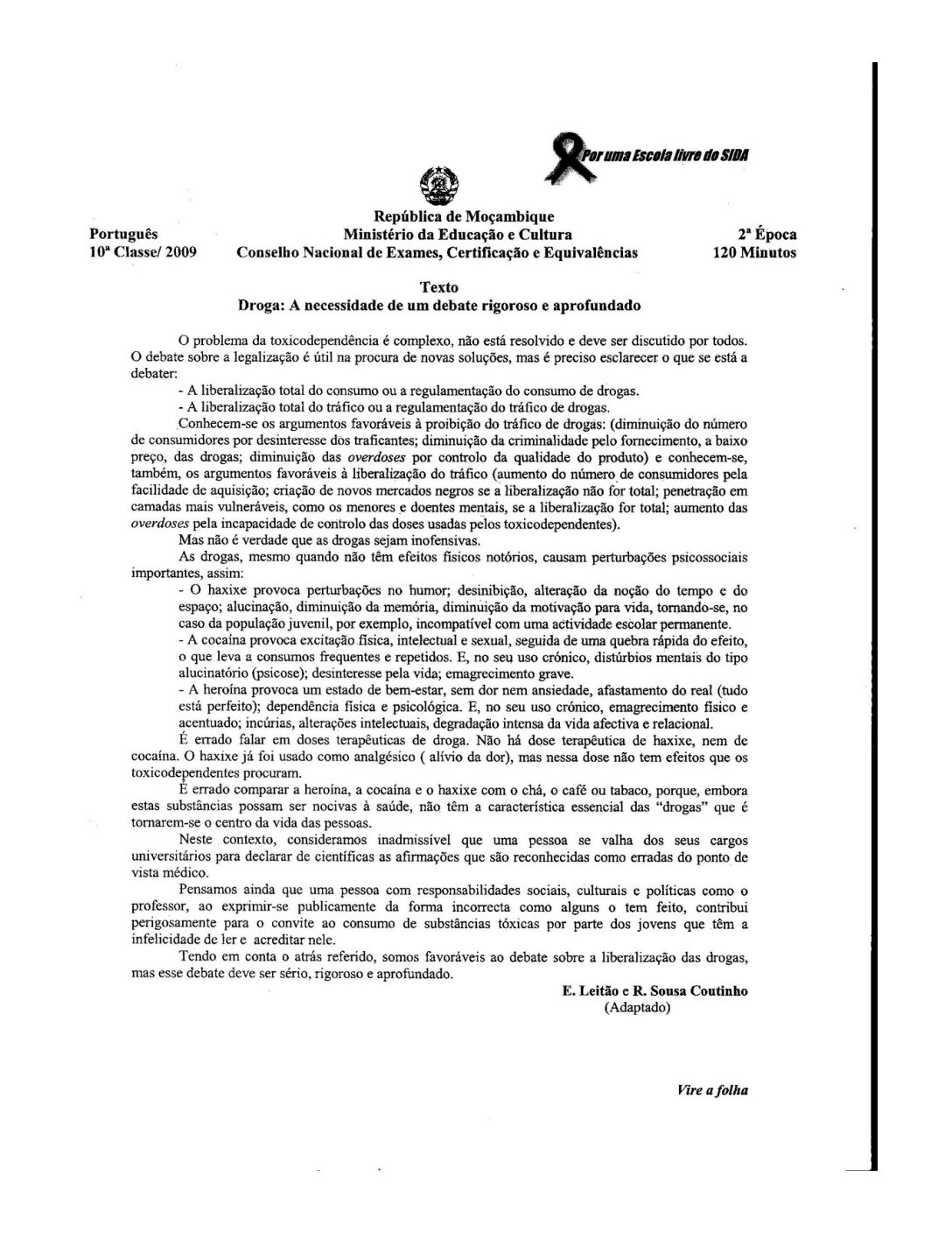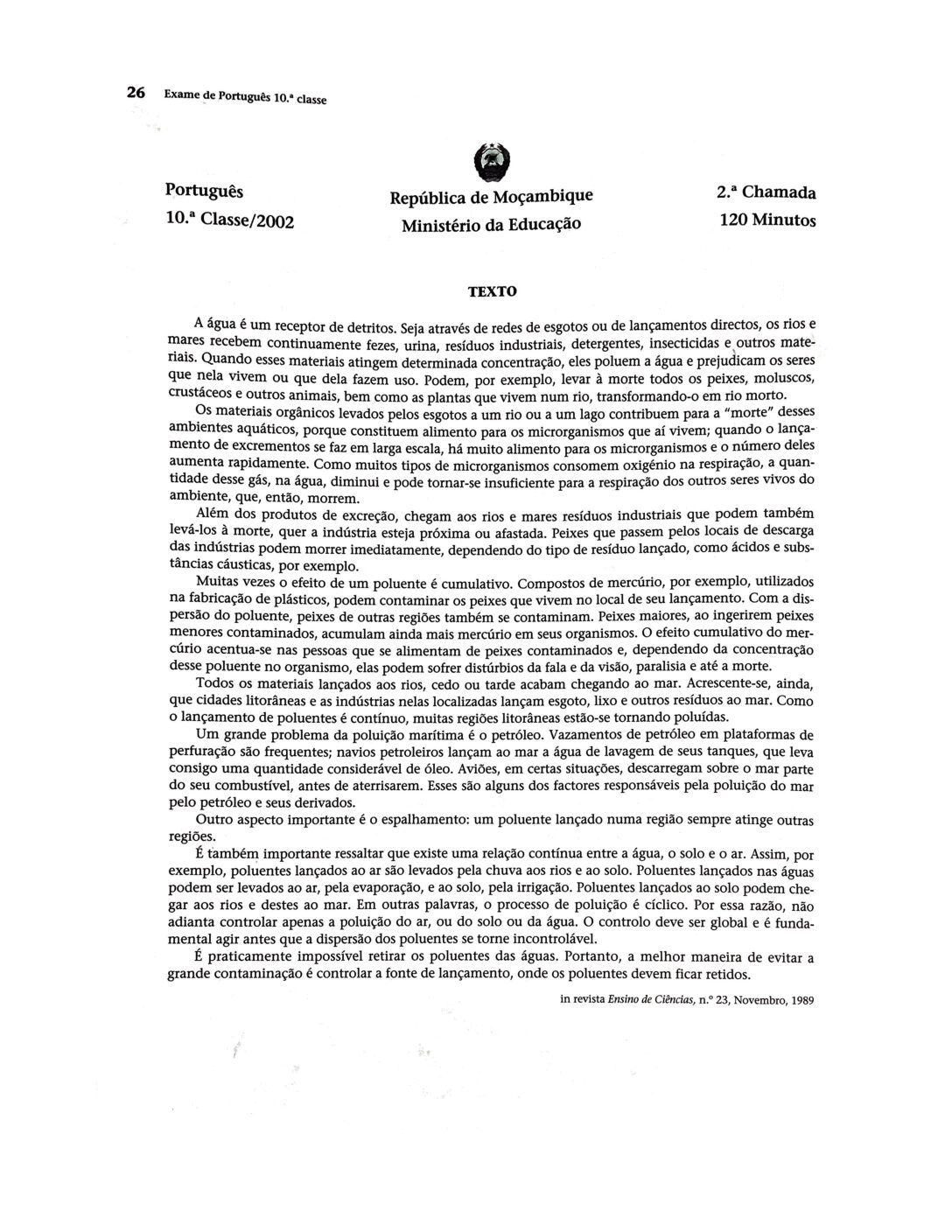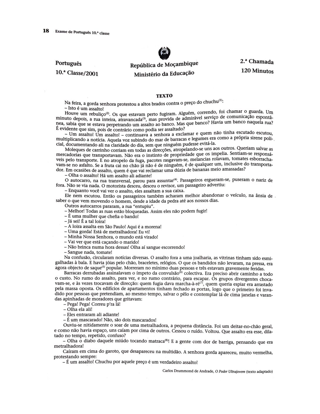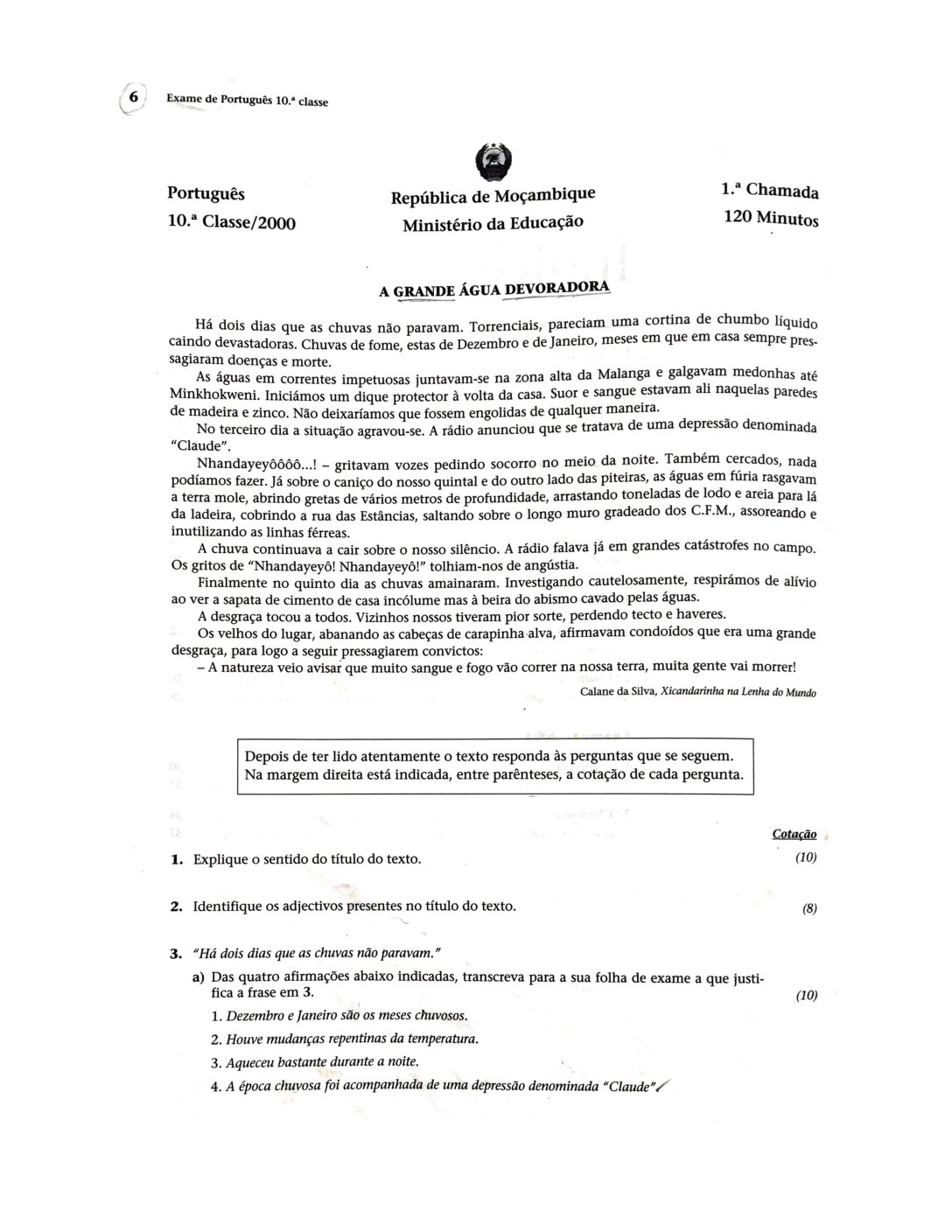 Português 2016 – 1ª Chamada da 10ª classe (Enunciado do Exame em PDF)