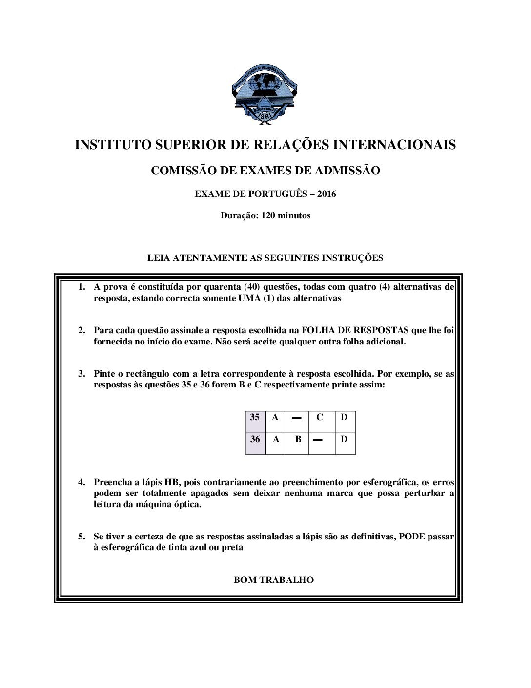 Português – 2016 da UJC (Enunciado do Exame de Admissão em PDF). Baixe grátis em formato PDF para estudo e preparação....
