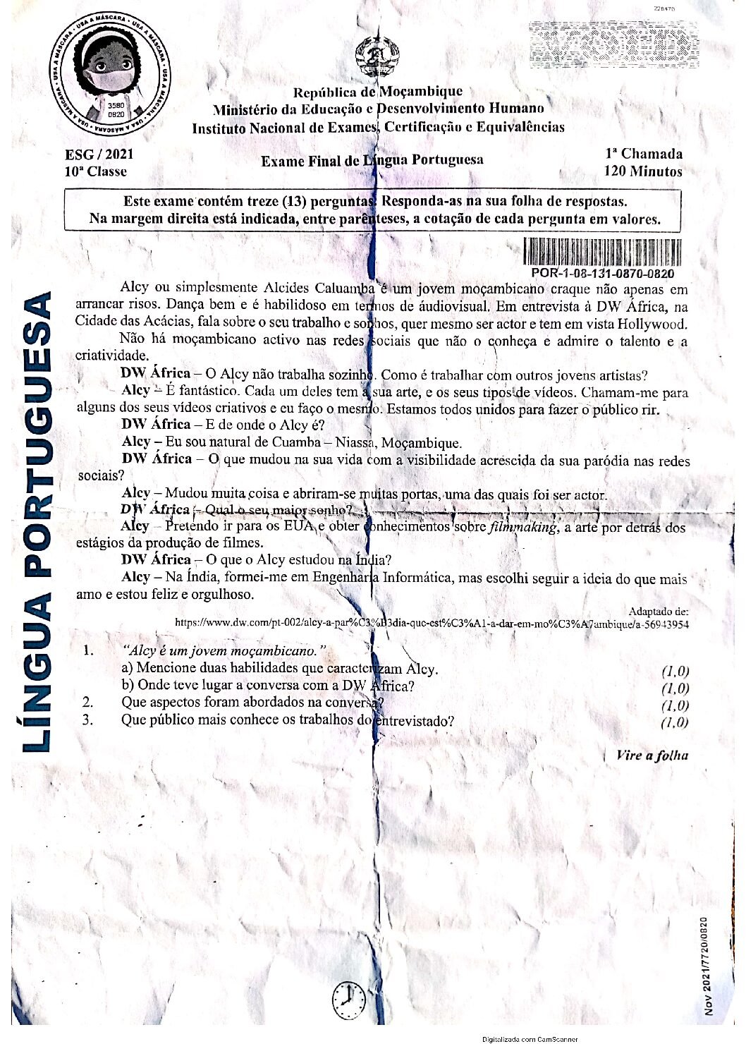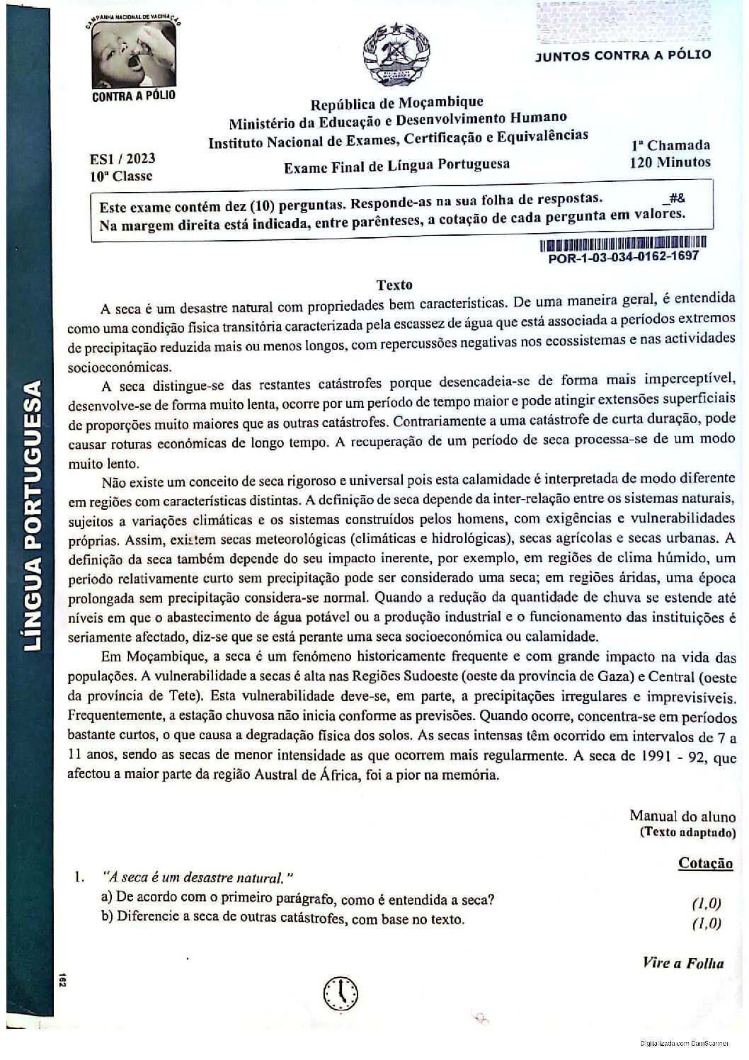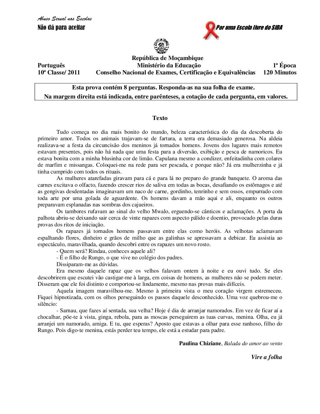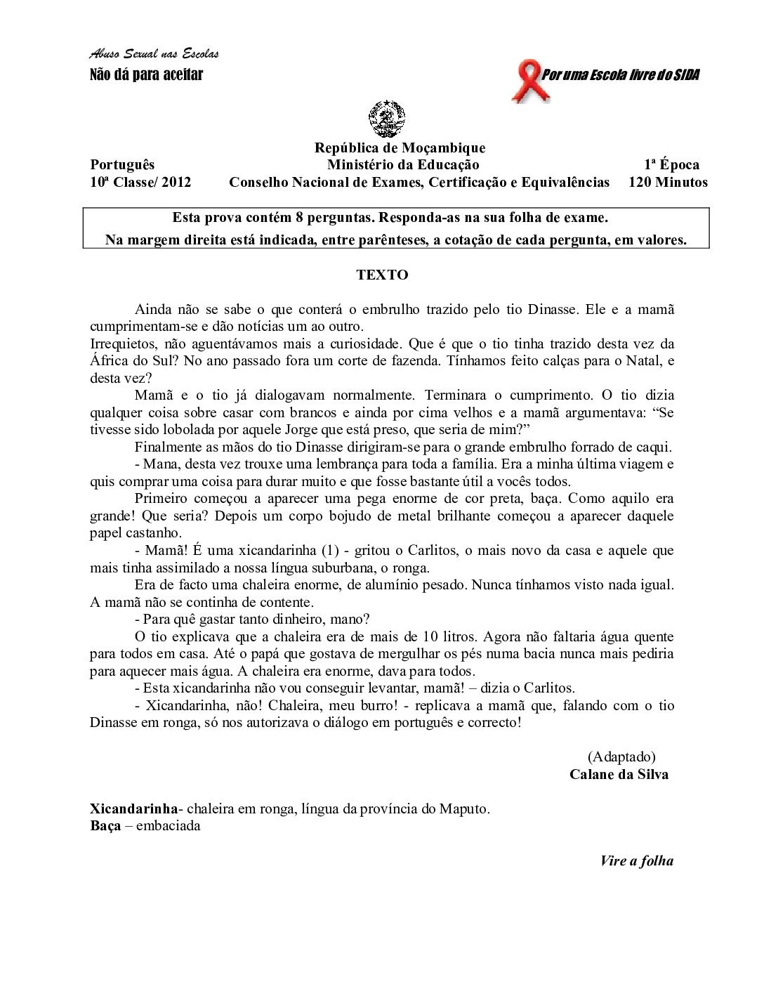 Português 2017 – 2ª Chamada da 10ª classe (Enunciado do Exame em PDF)