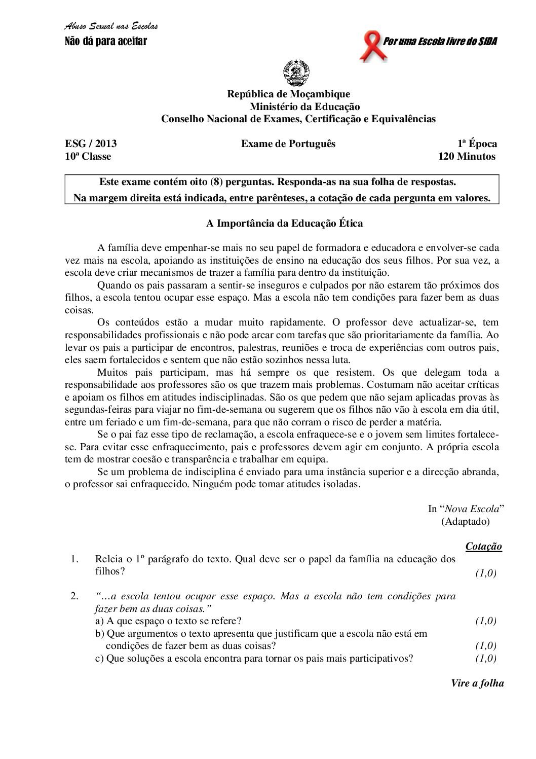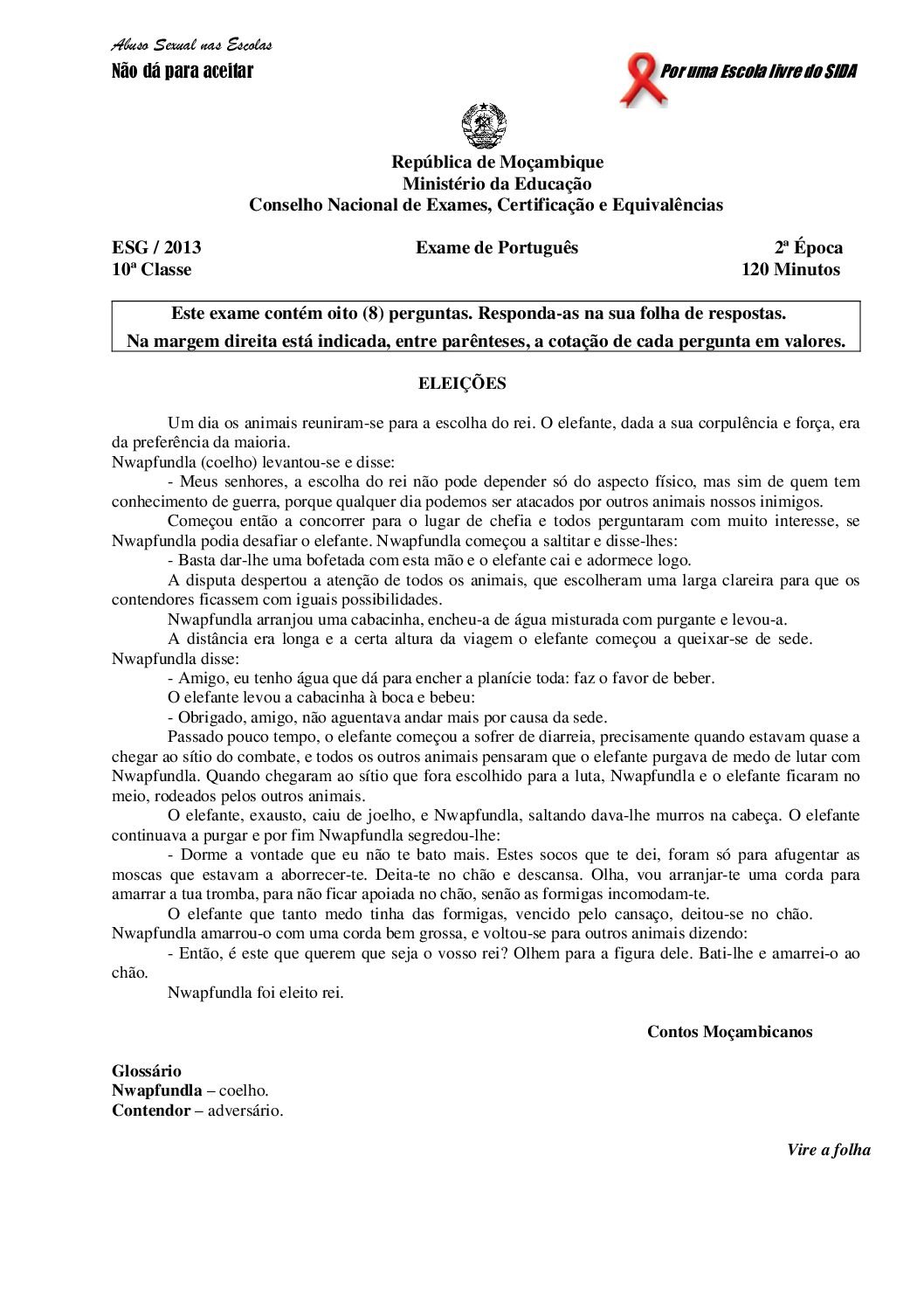 Português 2017 – 2ª Chamada da 10ª classe (Enunciado do Exame em PDF) - Baixar este documento, de forma simples, segura e grátis,...