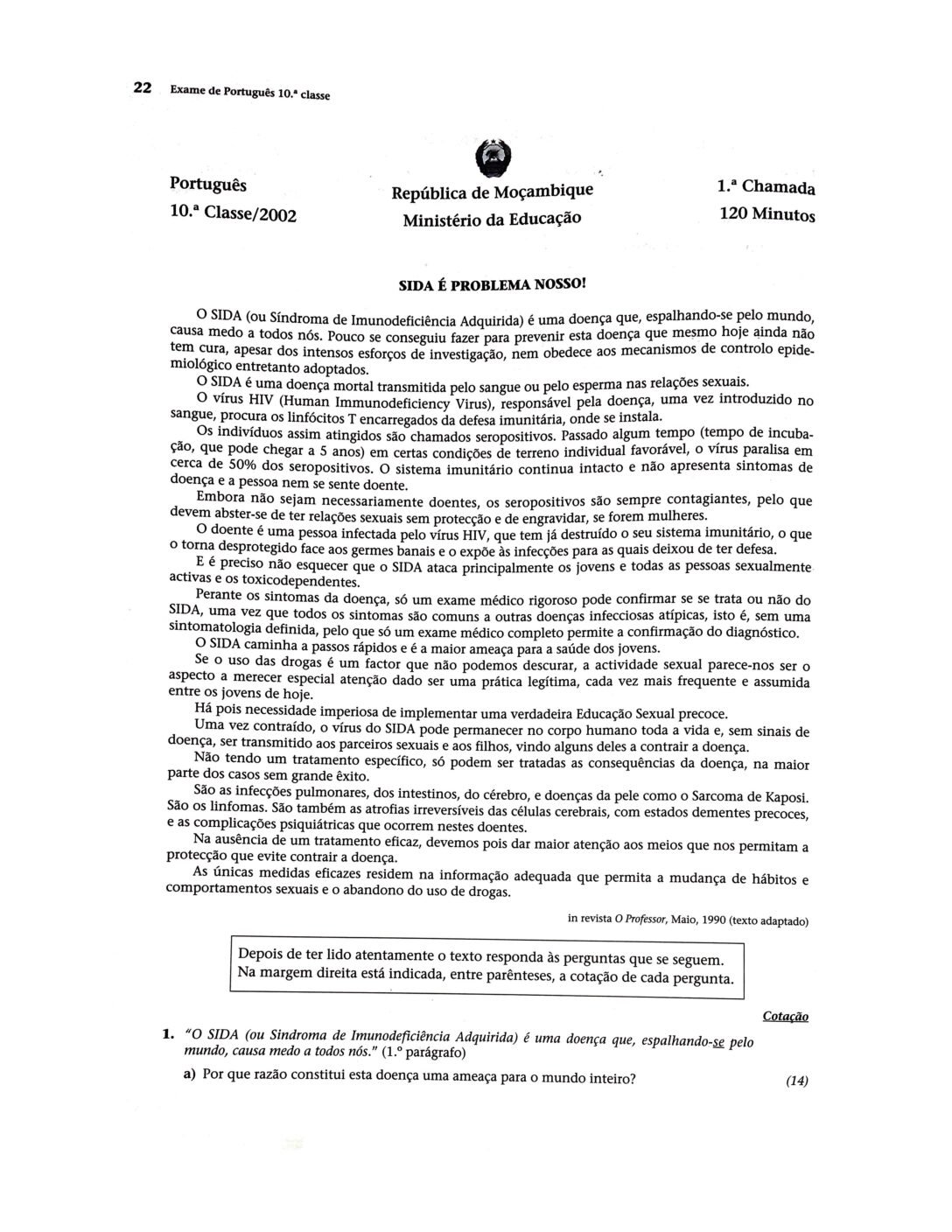 Português 2017 – 2ª Chamada da 10ª classe (Enunciado do Exame em PDF) - Baixar este documento, de forma simples, segura e grátis,...
