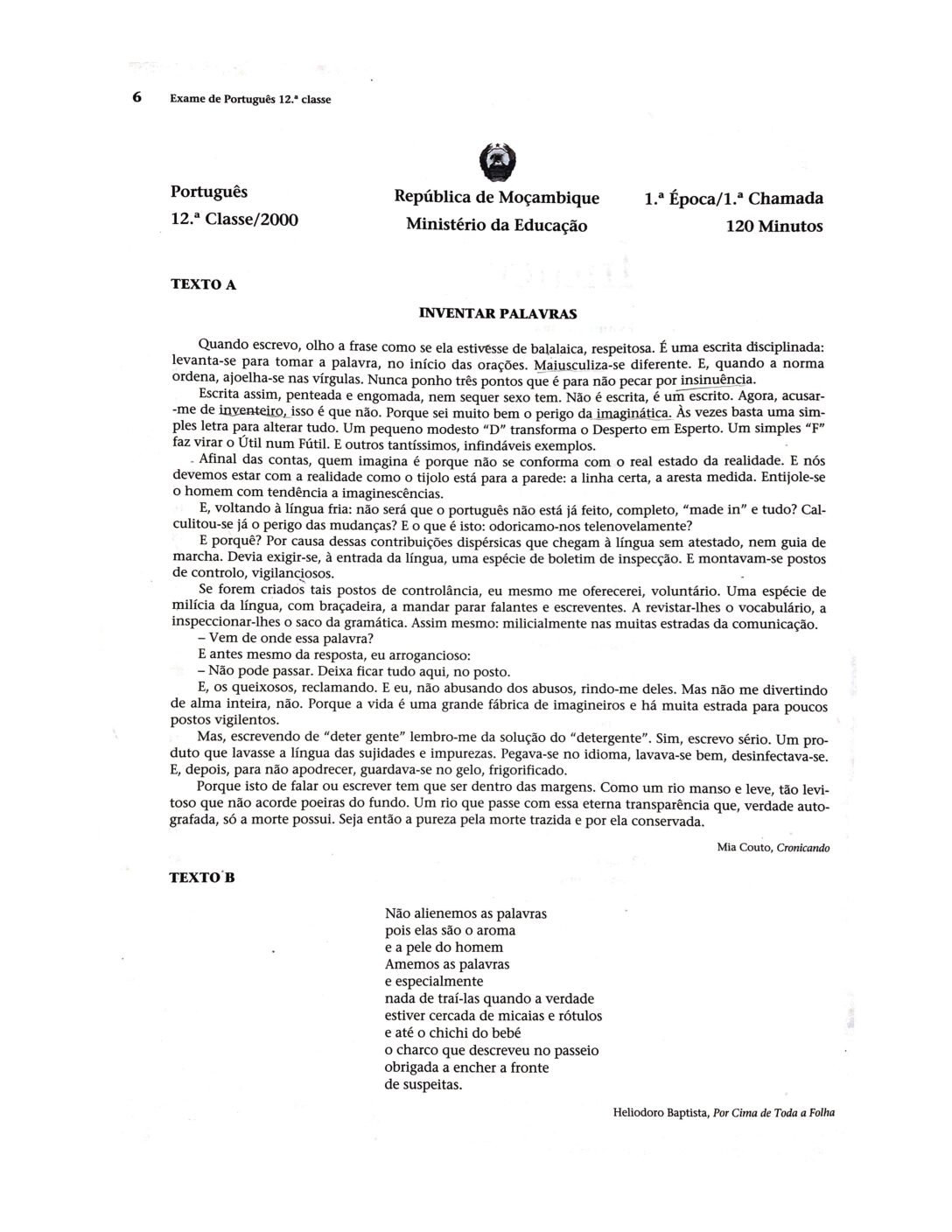 Português 2018 – 1ª Chamada da 12ª Classe (Enunciado do Exame ) (Livro em PDF)