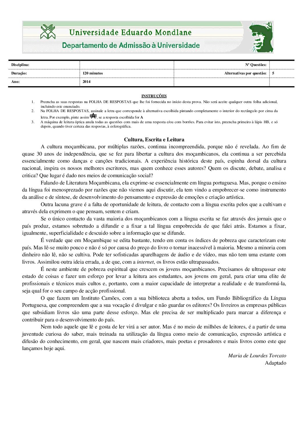 Português III – 2024 da UEM (Enunciado do Exame em PDF) - Baixar este documento em PDF para uso no seu ambiente académico...