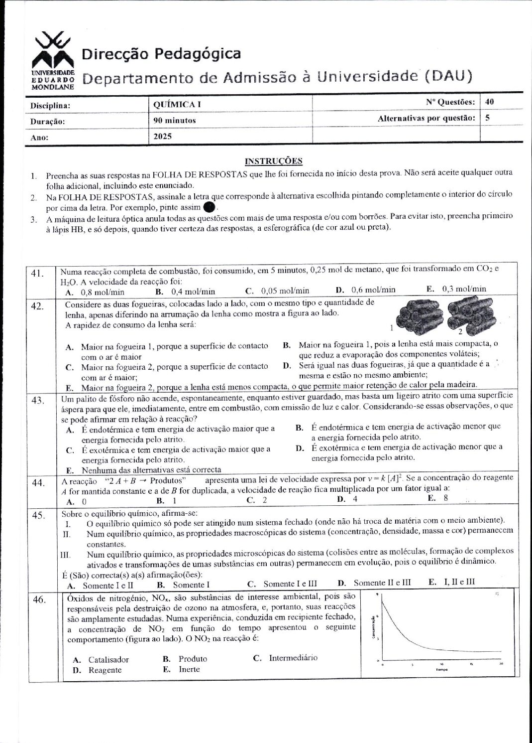 Química 2 – 2025 da UEM (Enunciado do Exame em PDF)