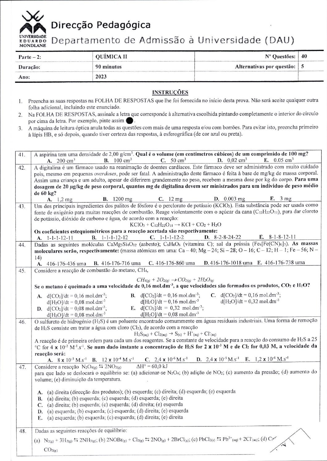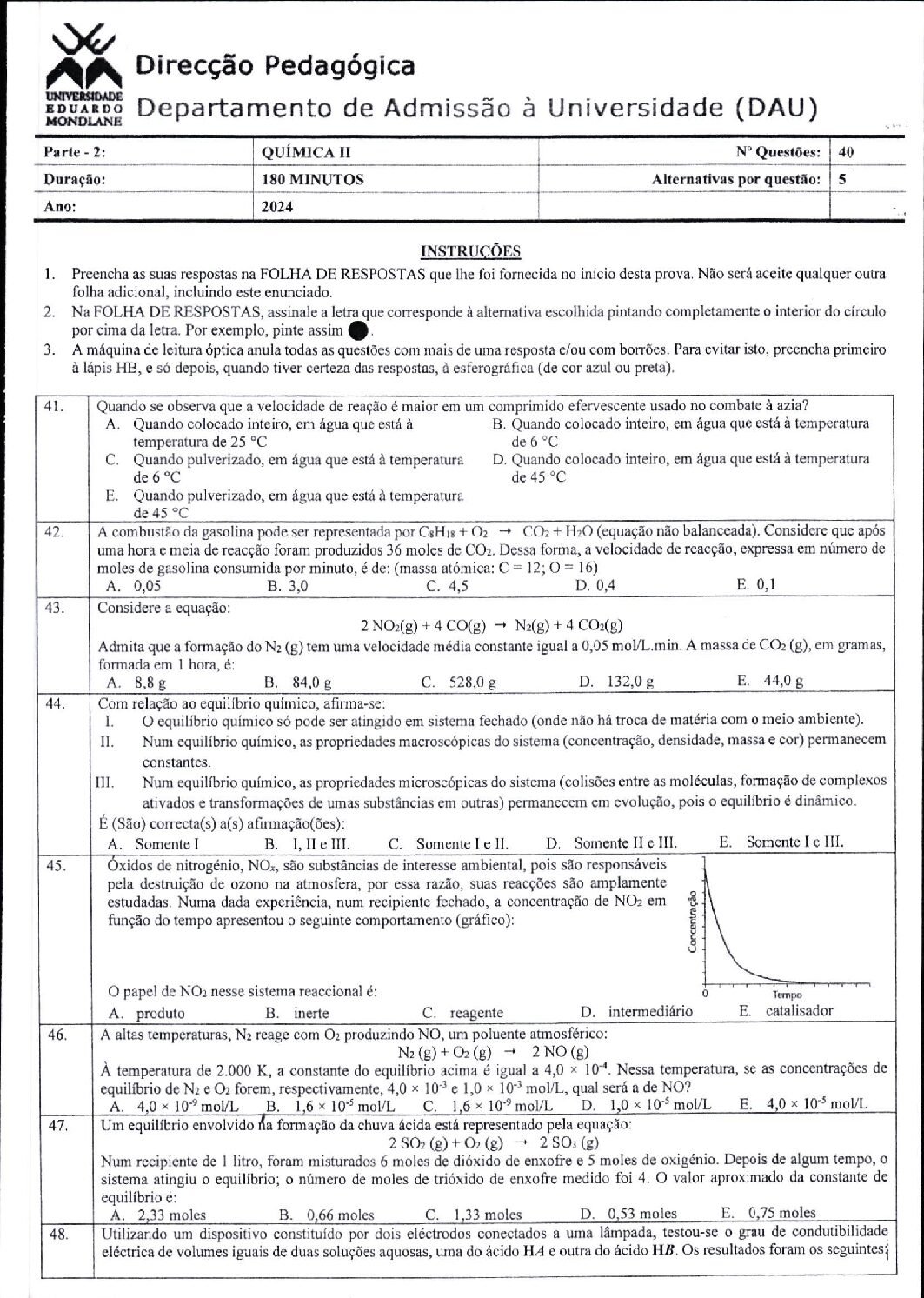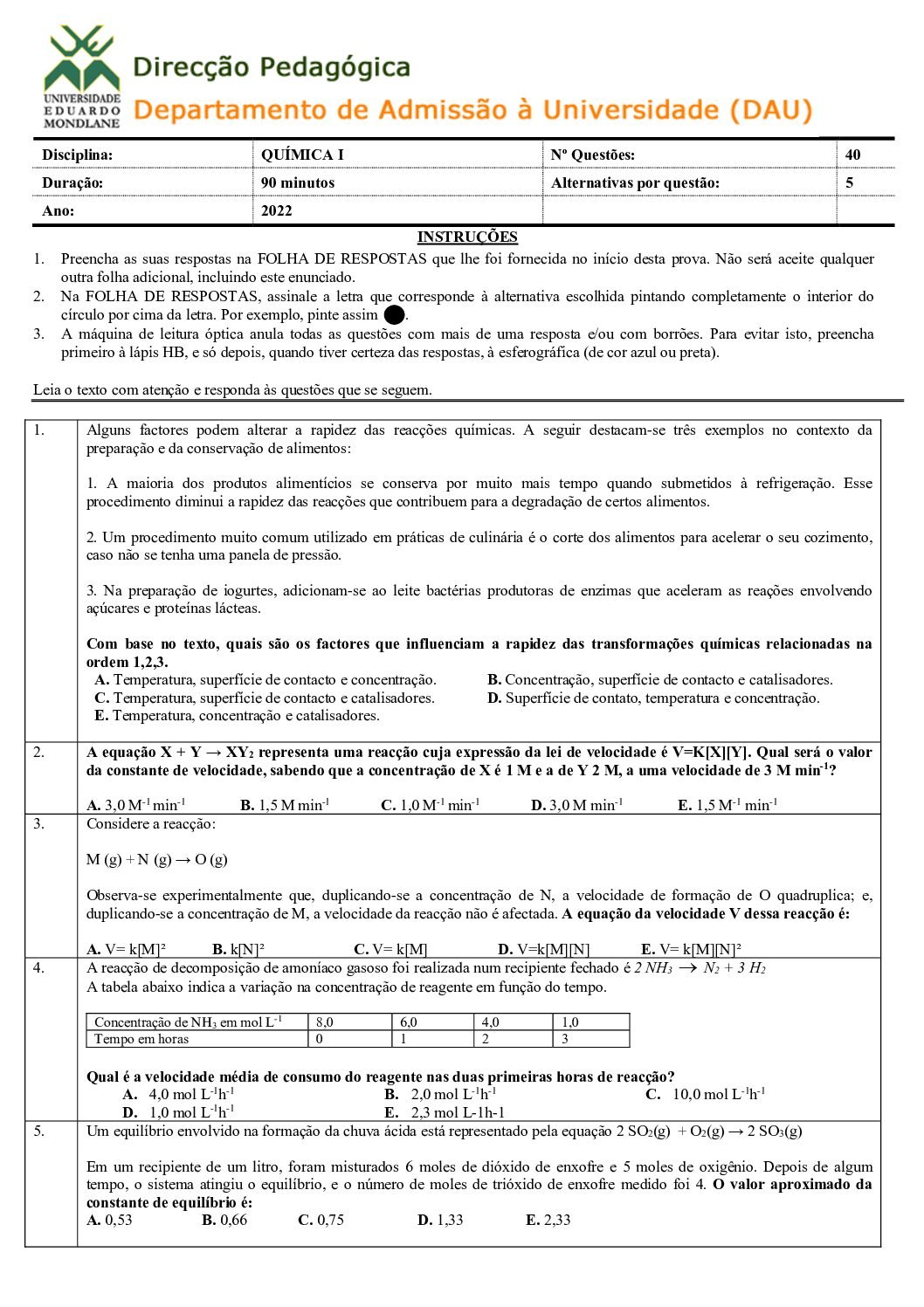 Química – 2016 da UEM (Enunciado do Exame em PDF) - Baixar este documento em PDF para uso no seu ambiente académico...