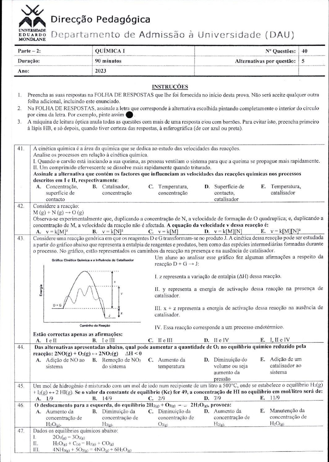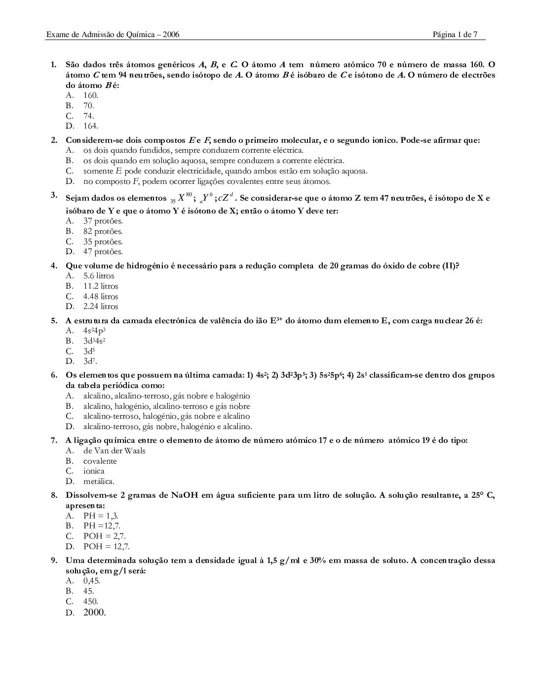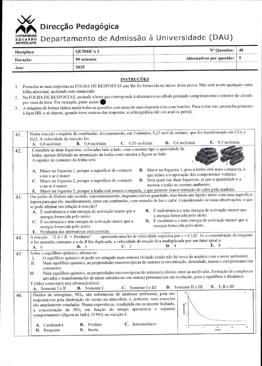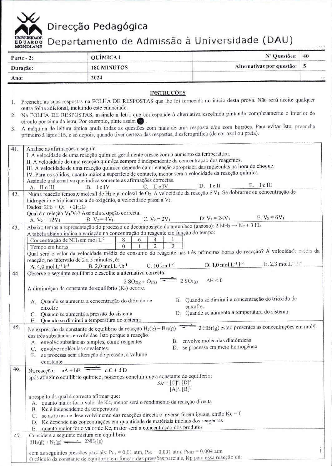 Química – 2016 da UEM (Enunciado do Exame em PDF) - Baixar este documento em PDF para uso no seu ambiente académico...